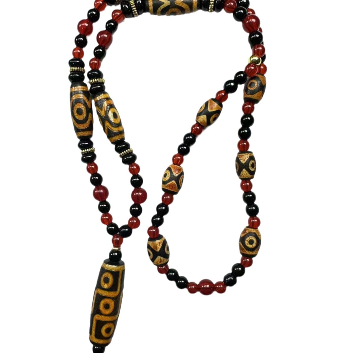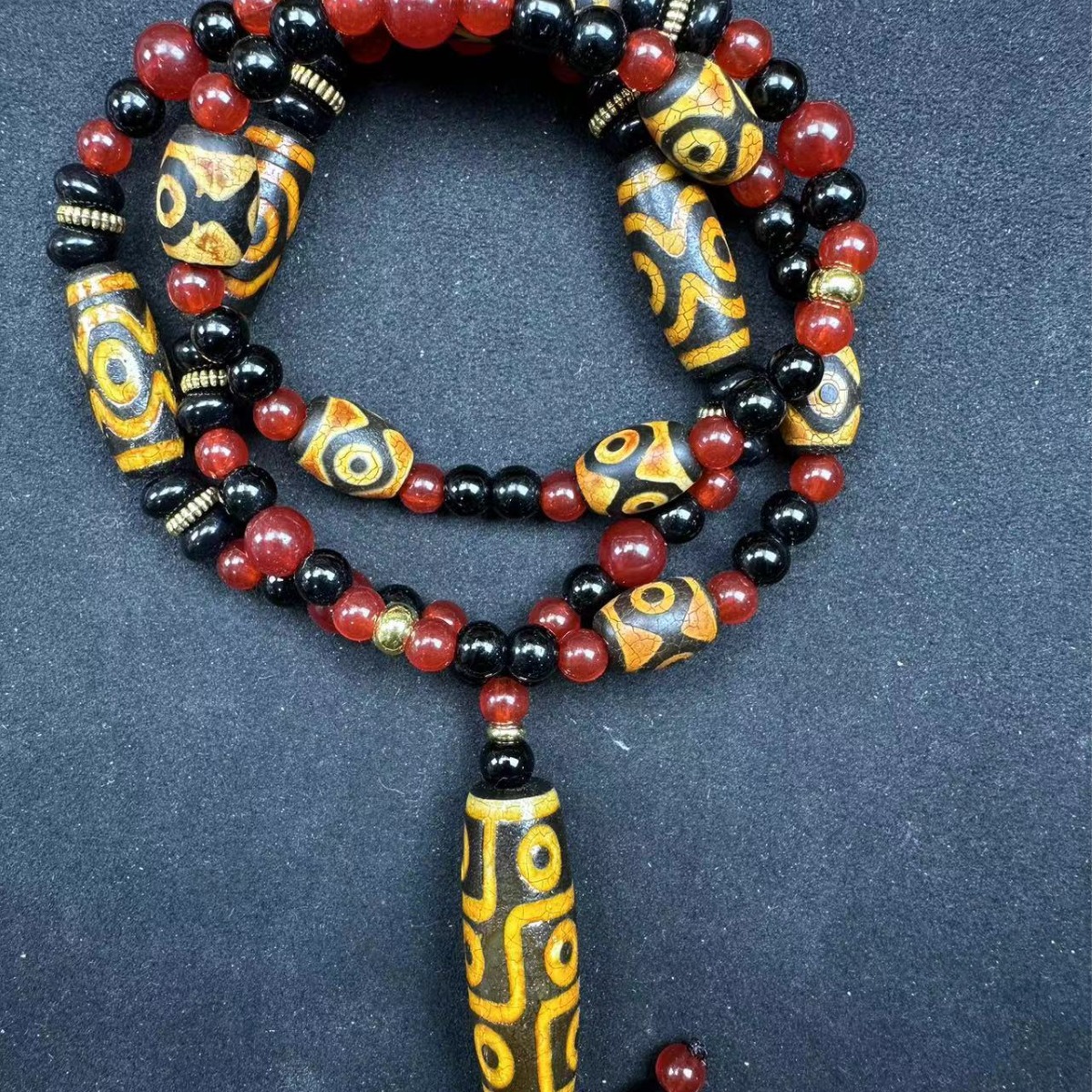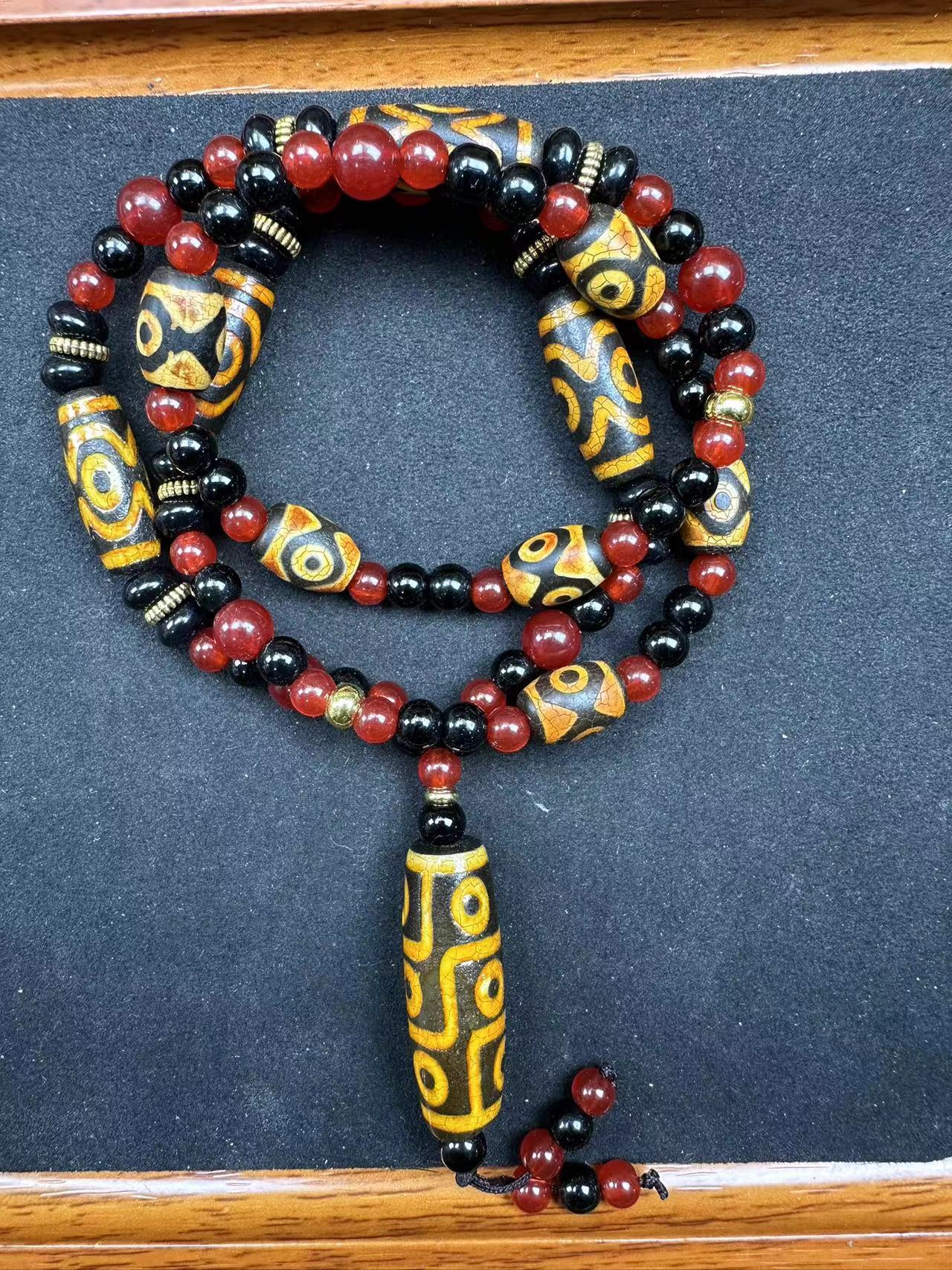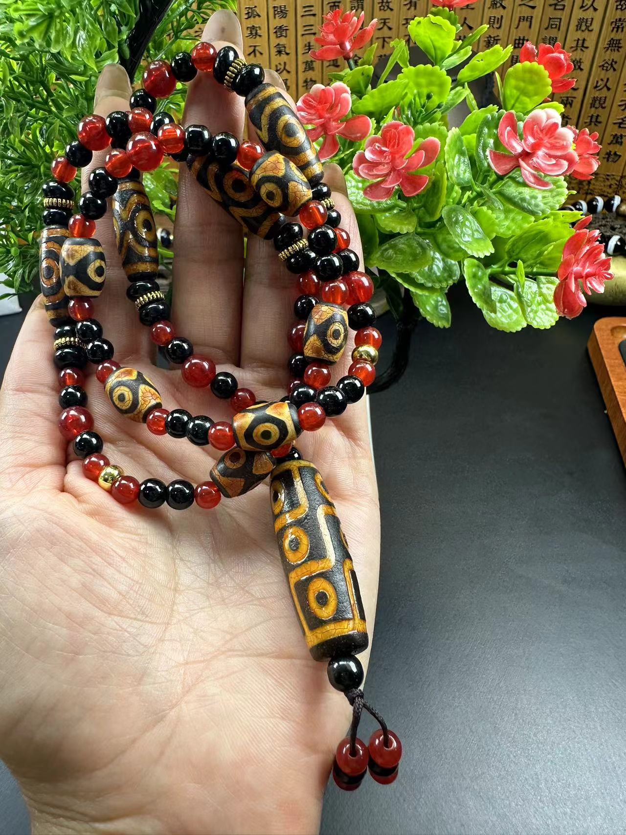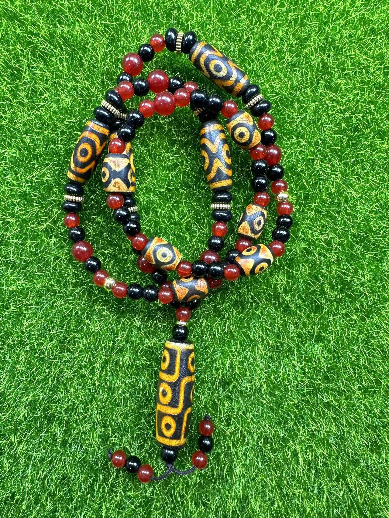 Оптовая продажа: натуральный агат, тибетский стиль, желтый, с тремя и девятью отверстиями, подвеска-кулон, ожерелье с бусинами, бусины дзи, свободные бусины