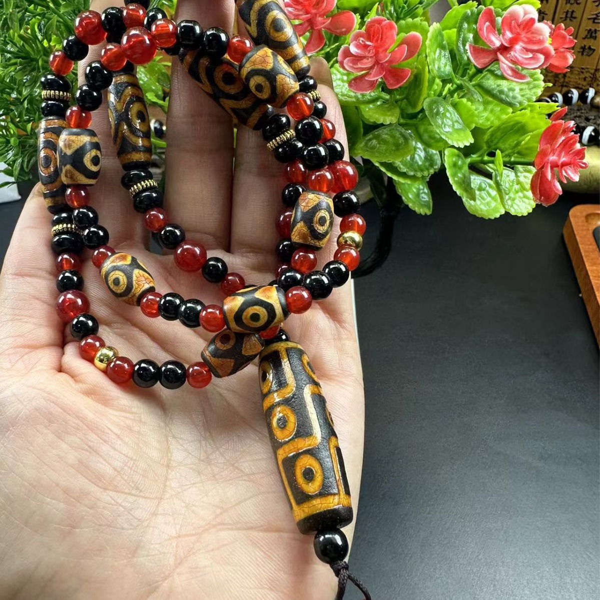 底珠玛瑙材质。。彩色和银色配饰为藏银材质