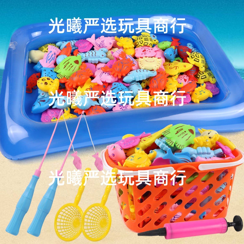 Трехмерная рыба (1 шт.); Магнитная индукционная рыба (1 шт.); Мелкая сетка для ловли (1 шт.); Ручная рокерная удочка (1 панда/дельфин); Ручная рокерная удочка (1 большая креветка/морский коник); Телескопическая удочка (1 кокас/лобстер); Складная удочка (1 шт.); Маленький квадратный бассейн + насос; Большой квадратный бассейн + насос; Круглый бассейн + насос (синий/зеленый, цвет может отличаться в зависимости от партии продукции); Корзина для хранения (разные производственные партии, разные цвета); Ведро для хранения рыбы; Большая золотая рыба дракона