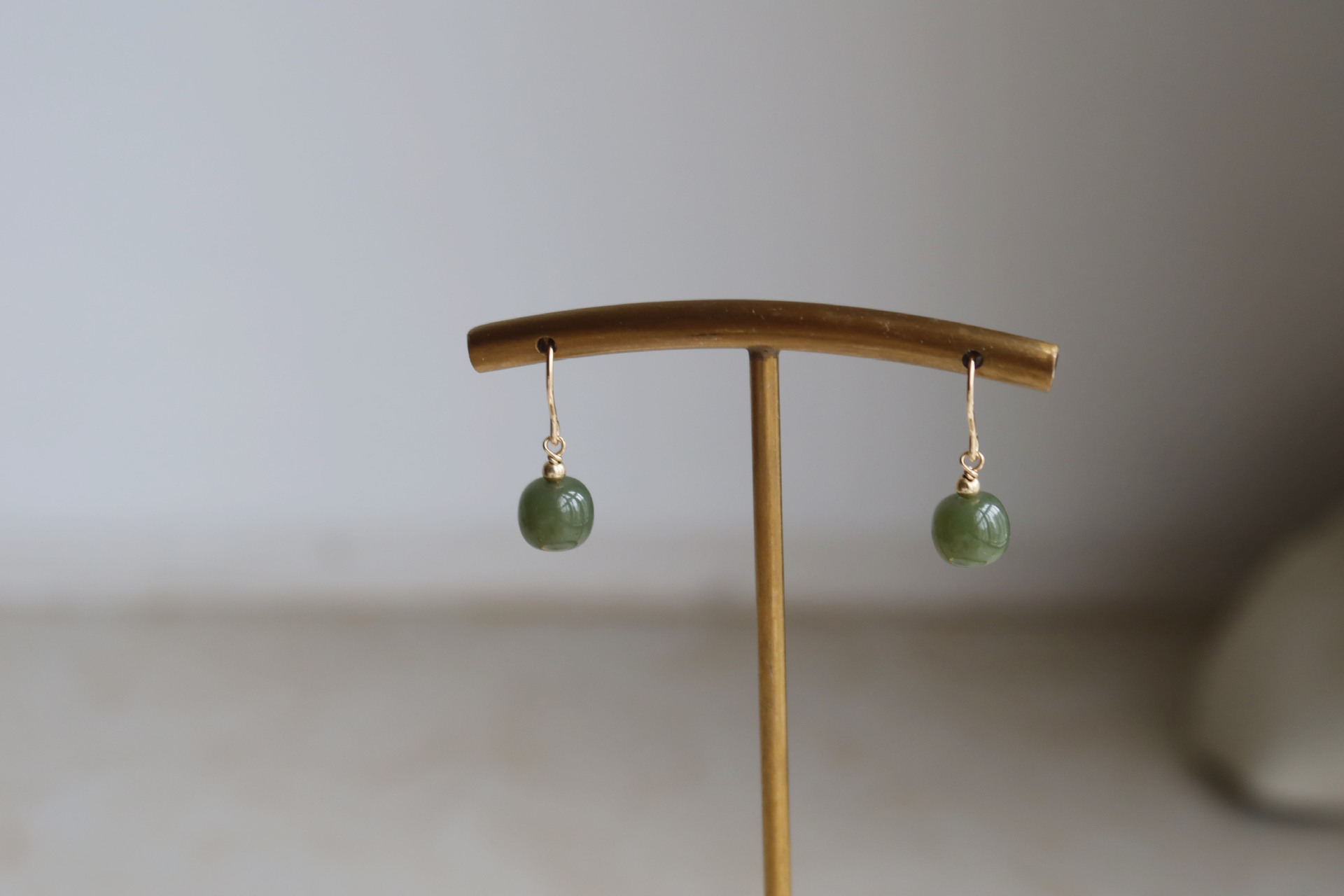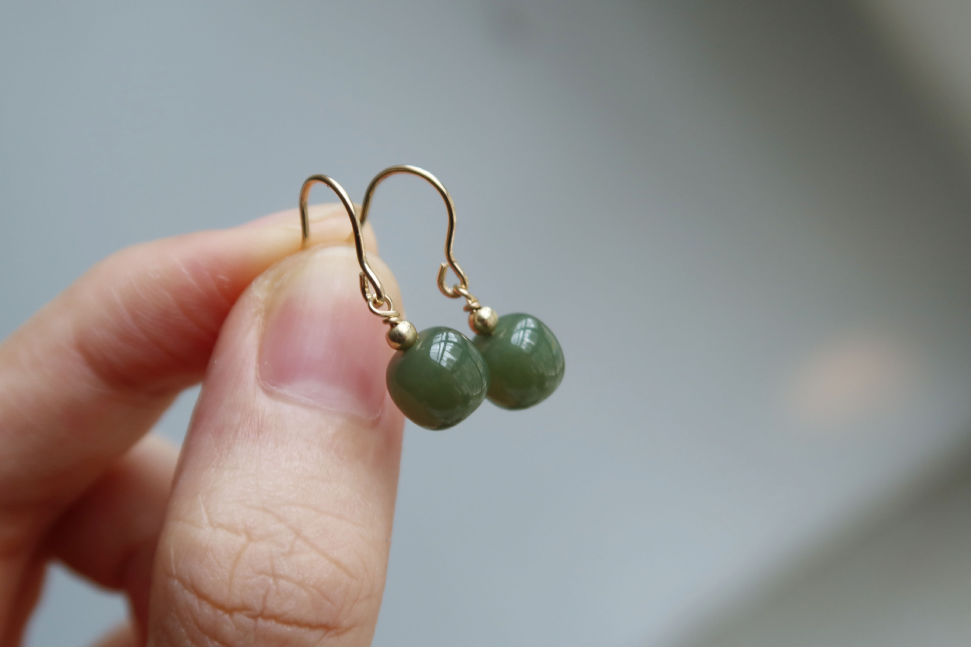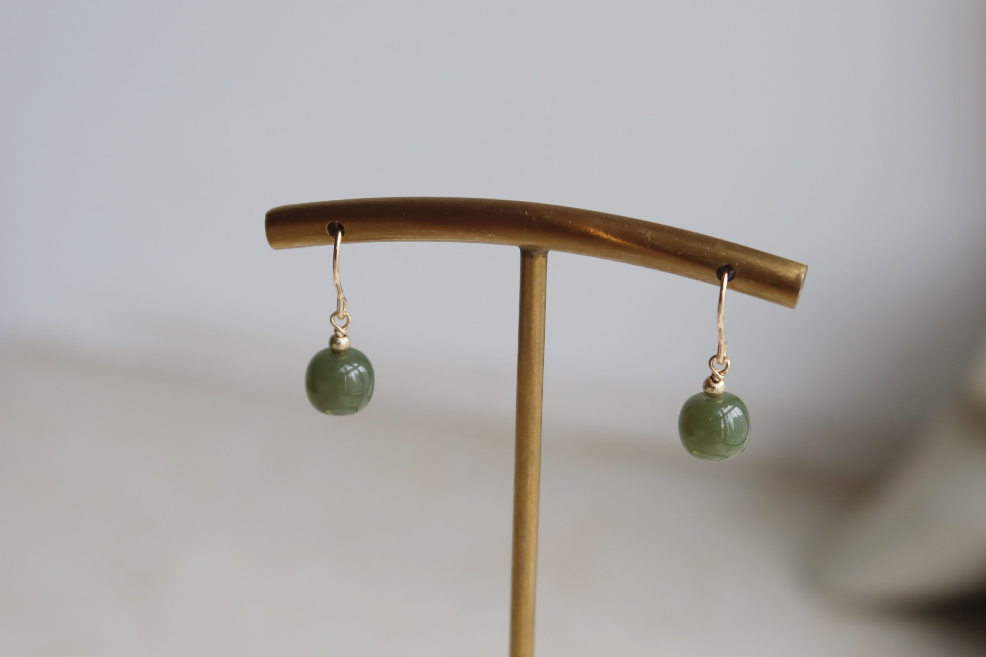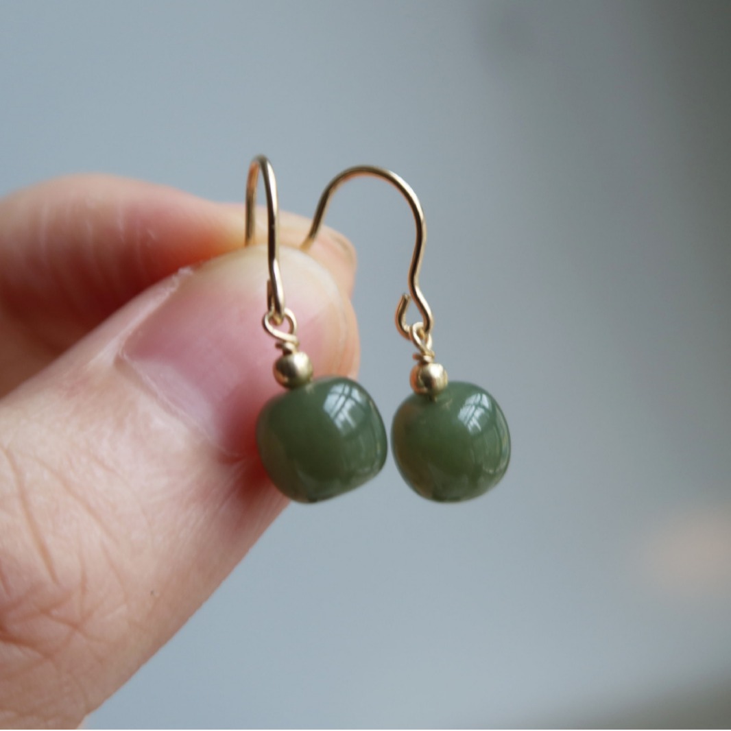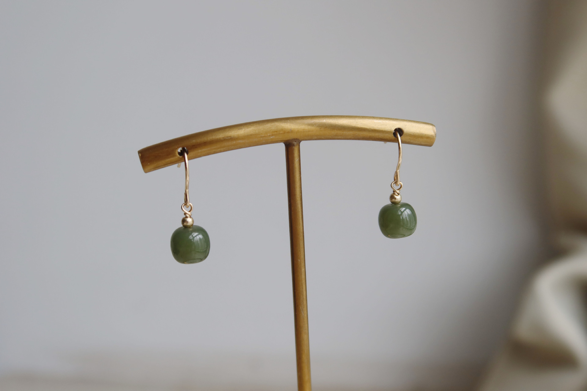 США импортировали 14 кит золота натуральные нефритовые серьги 7-8 мм Новые китайские серьги нишевые дизайн легкий и экстравагантный