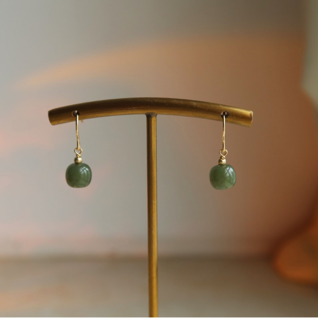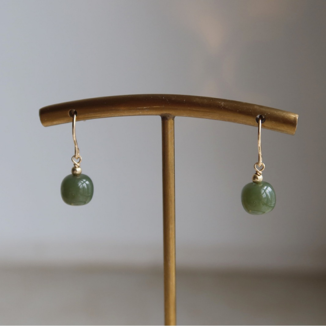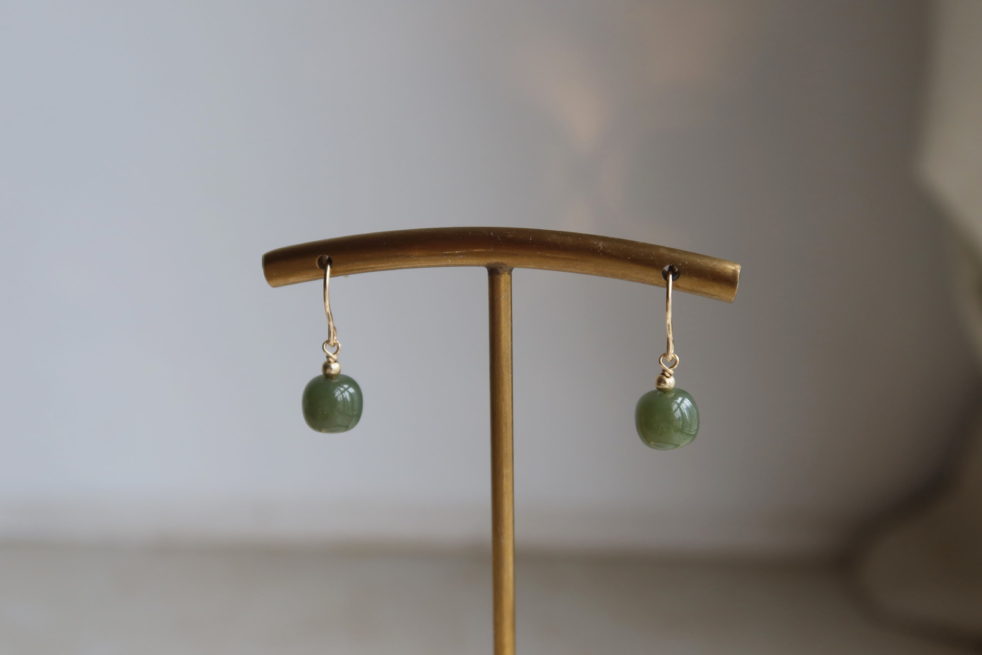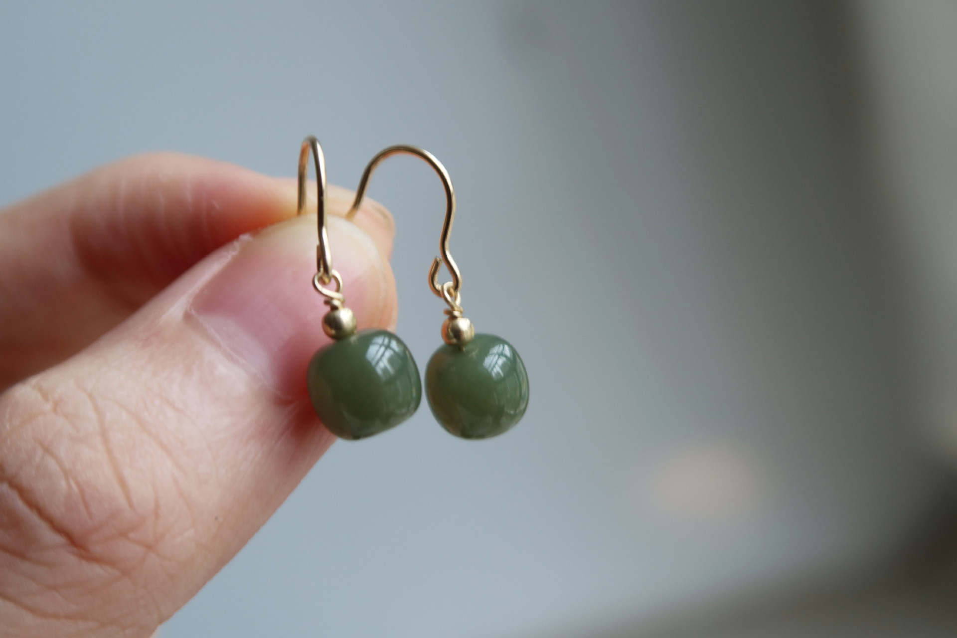 США импортировали 14 кит золота натуральные нефритовые серьги 7-8 мм Новые китайские серьги нишевые дизайн легкий и экстравагантный