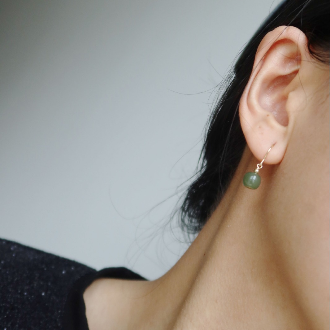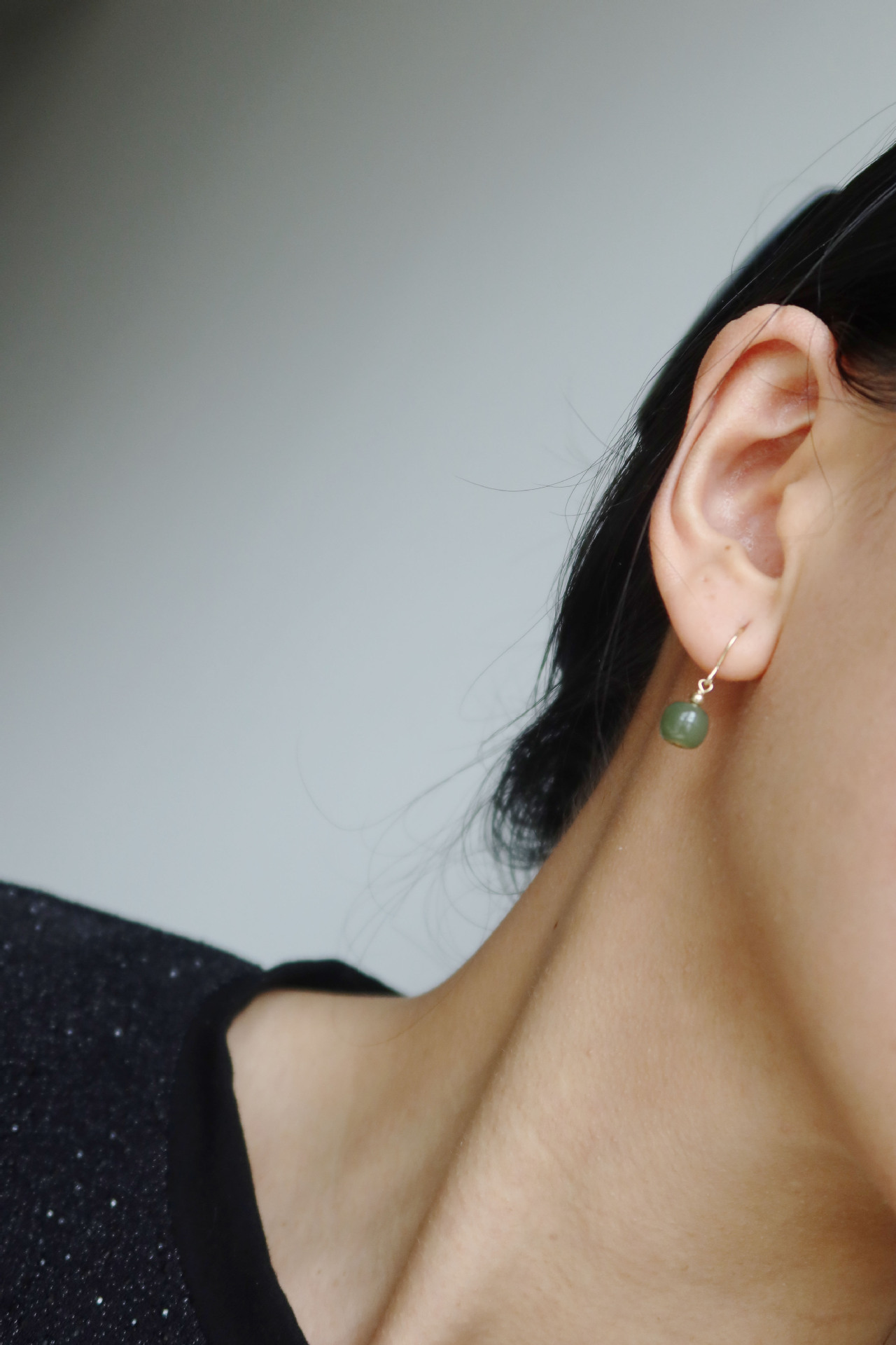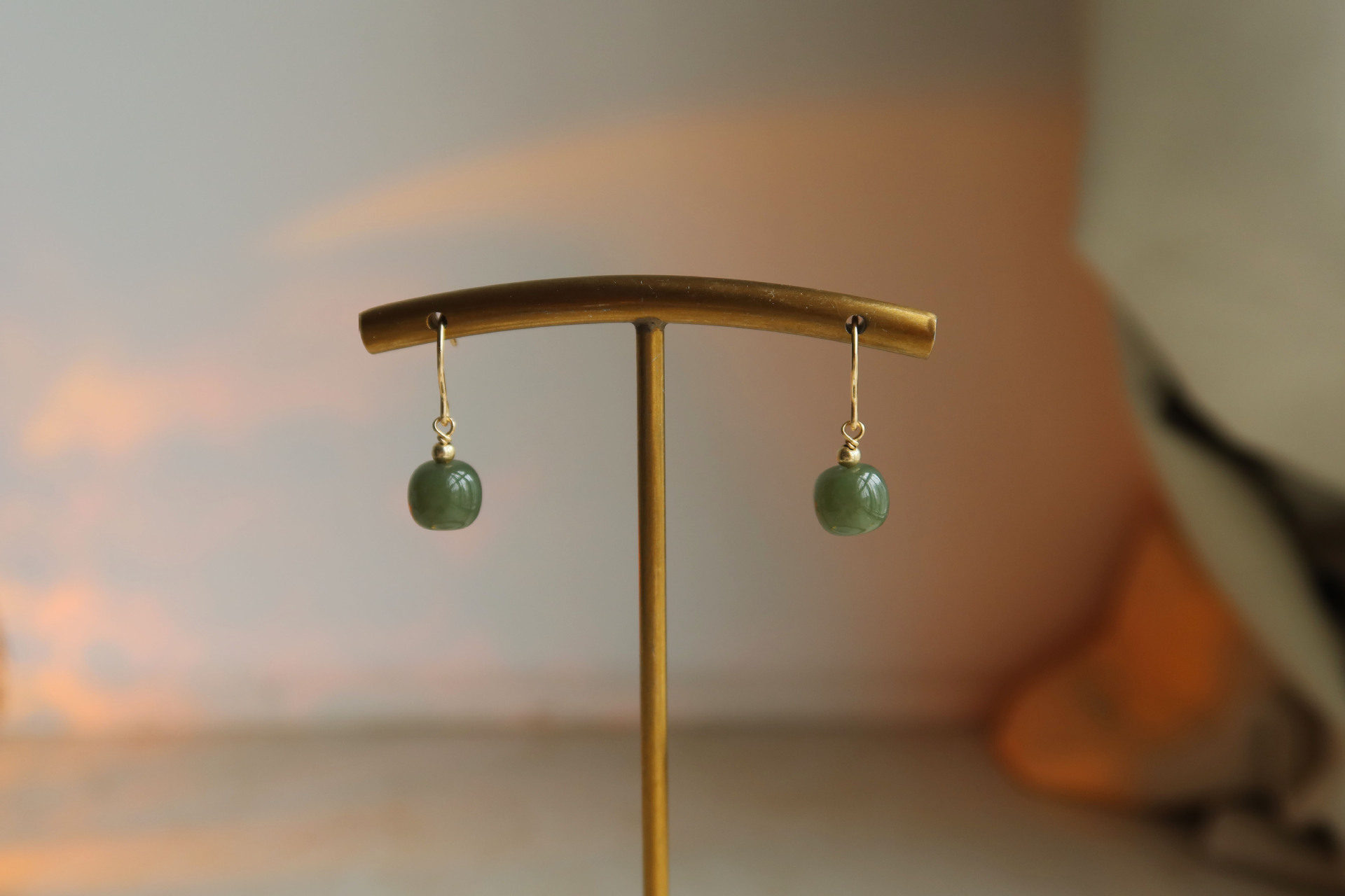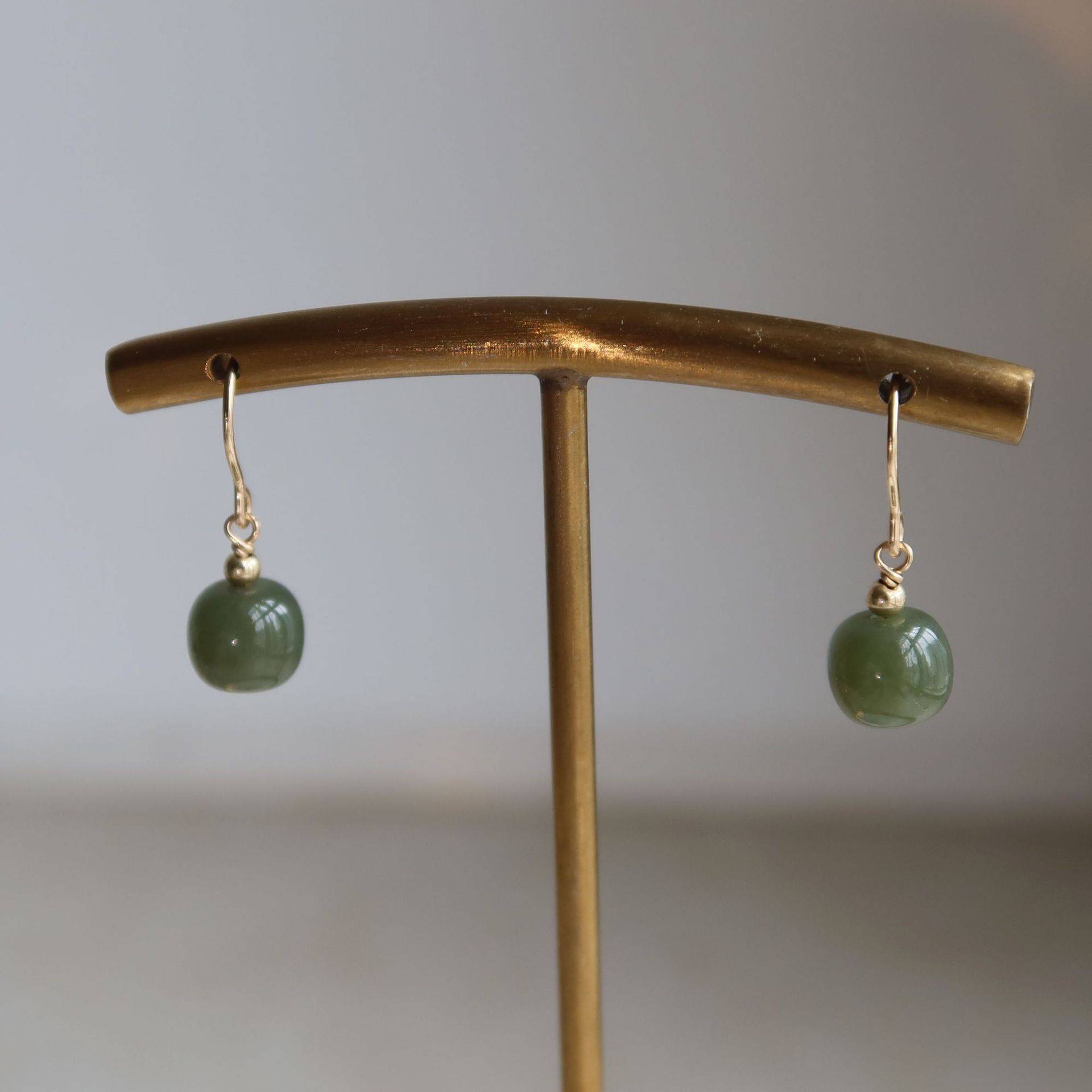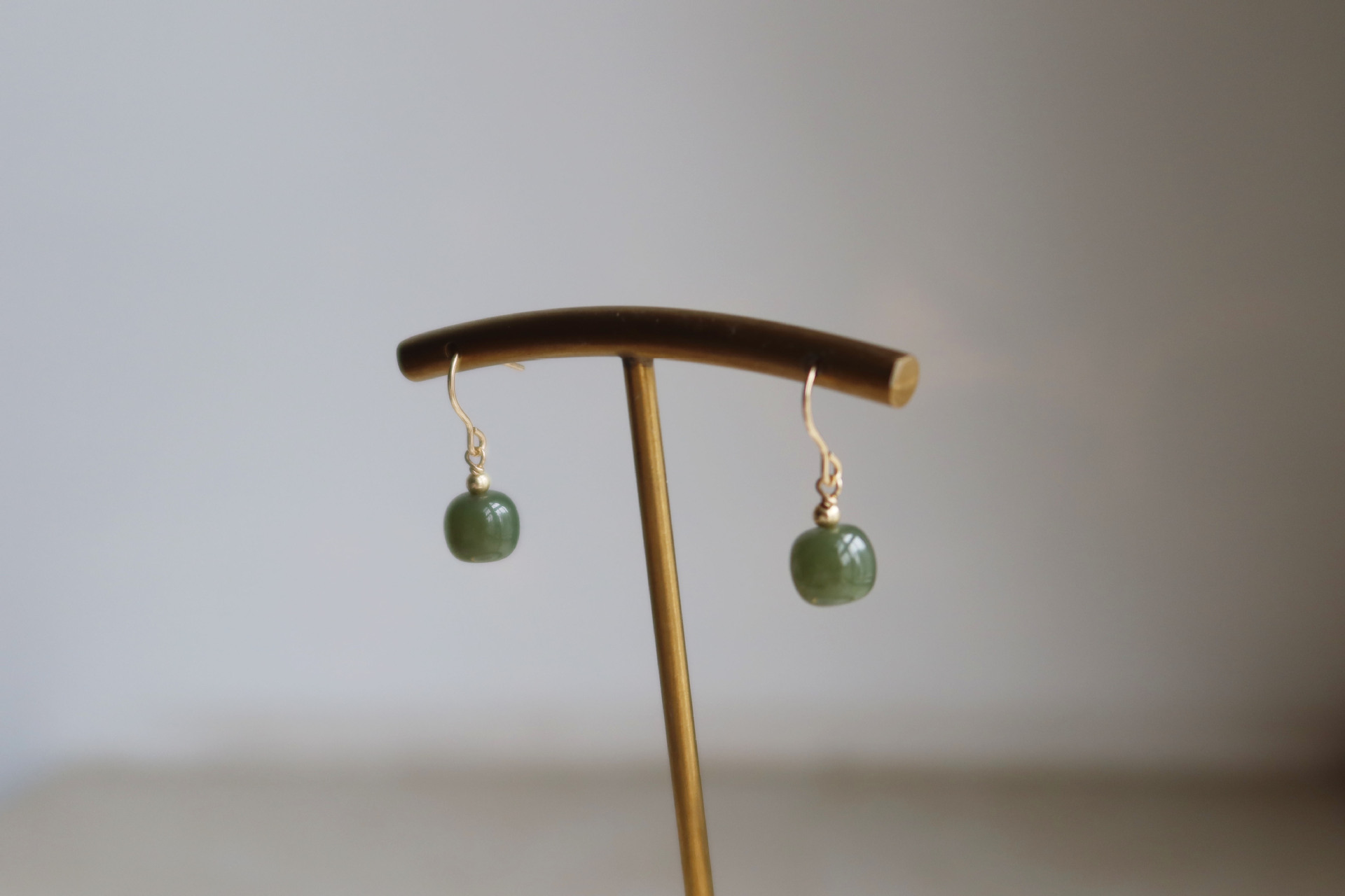 США импортировали 14 кит золота натуральные нефритовые серьги 7-8 мм Новые китайские серьги нишевые дизайн легкий и экстравагантный