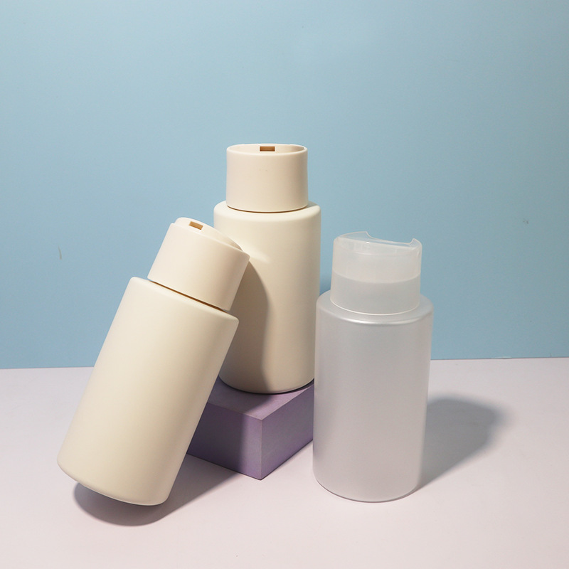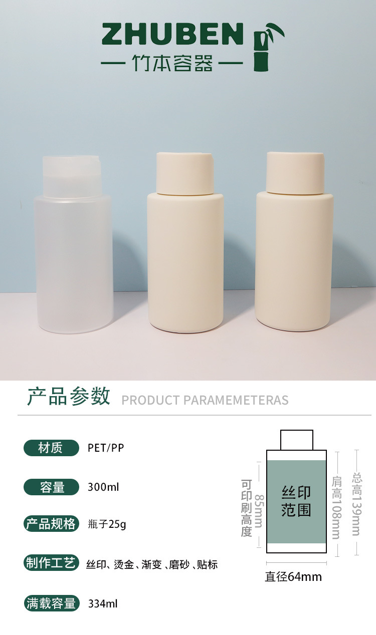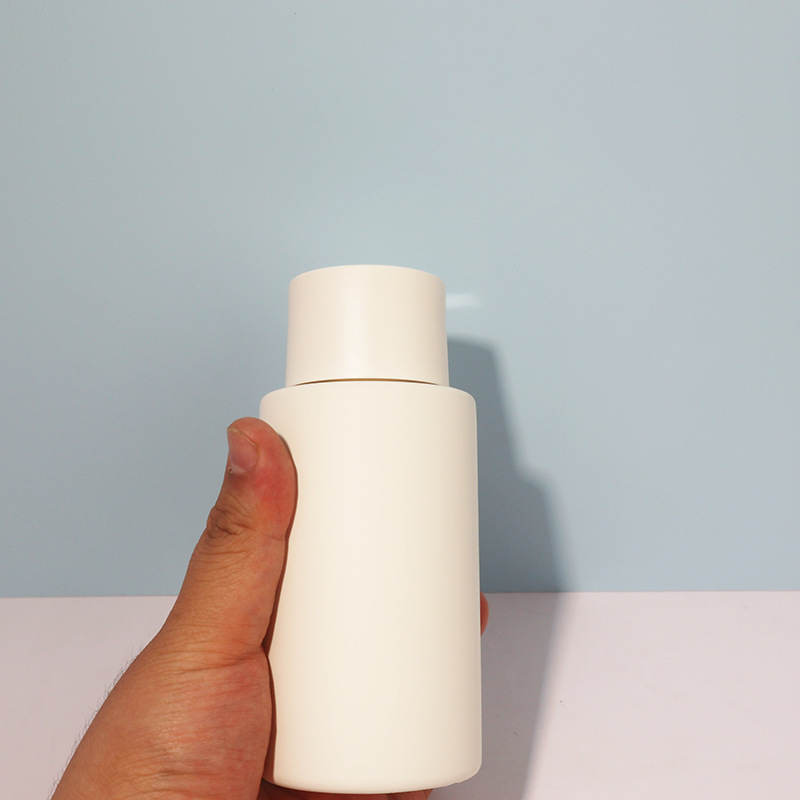 Флакон для шампуня Takeuchi 300 мл, плоское плечо, круглая форма, с крышкой Qianqiu, с дозатором, плюшевая матовая текстура.