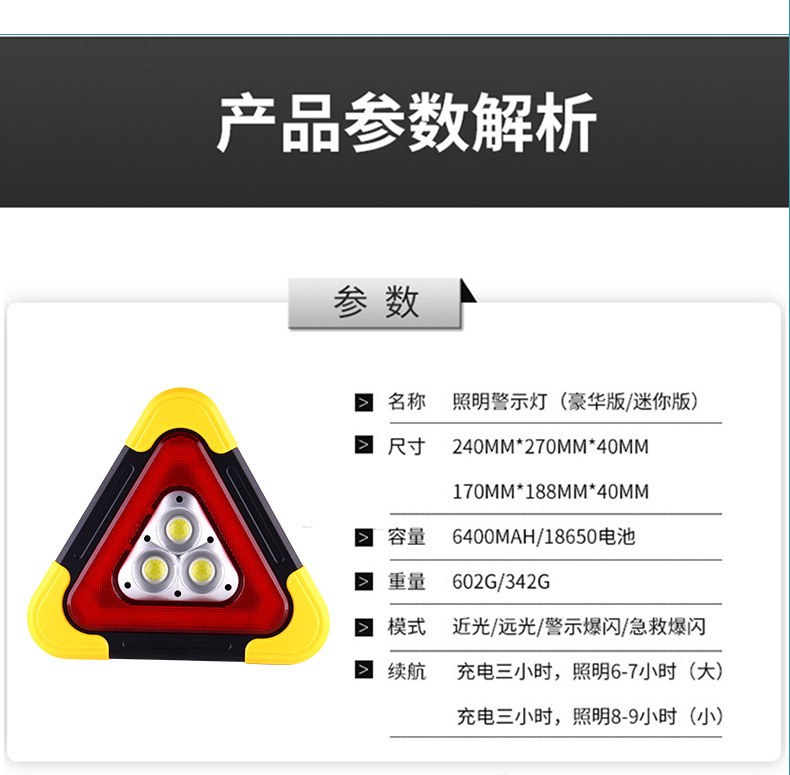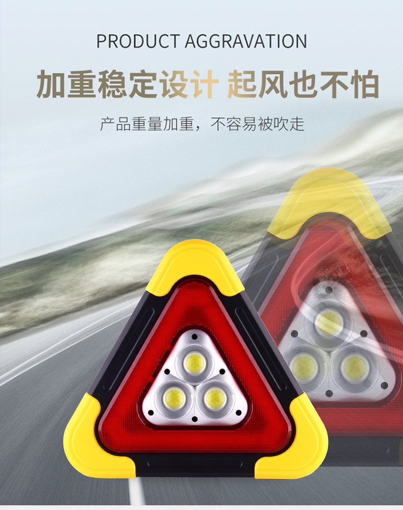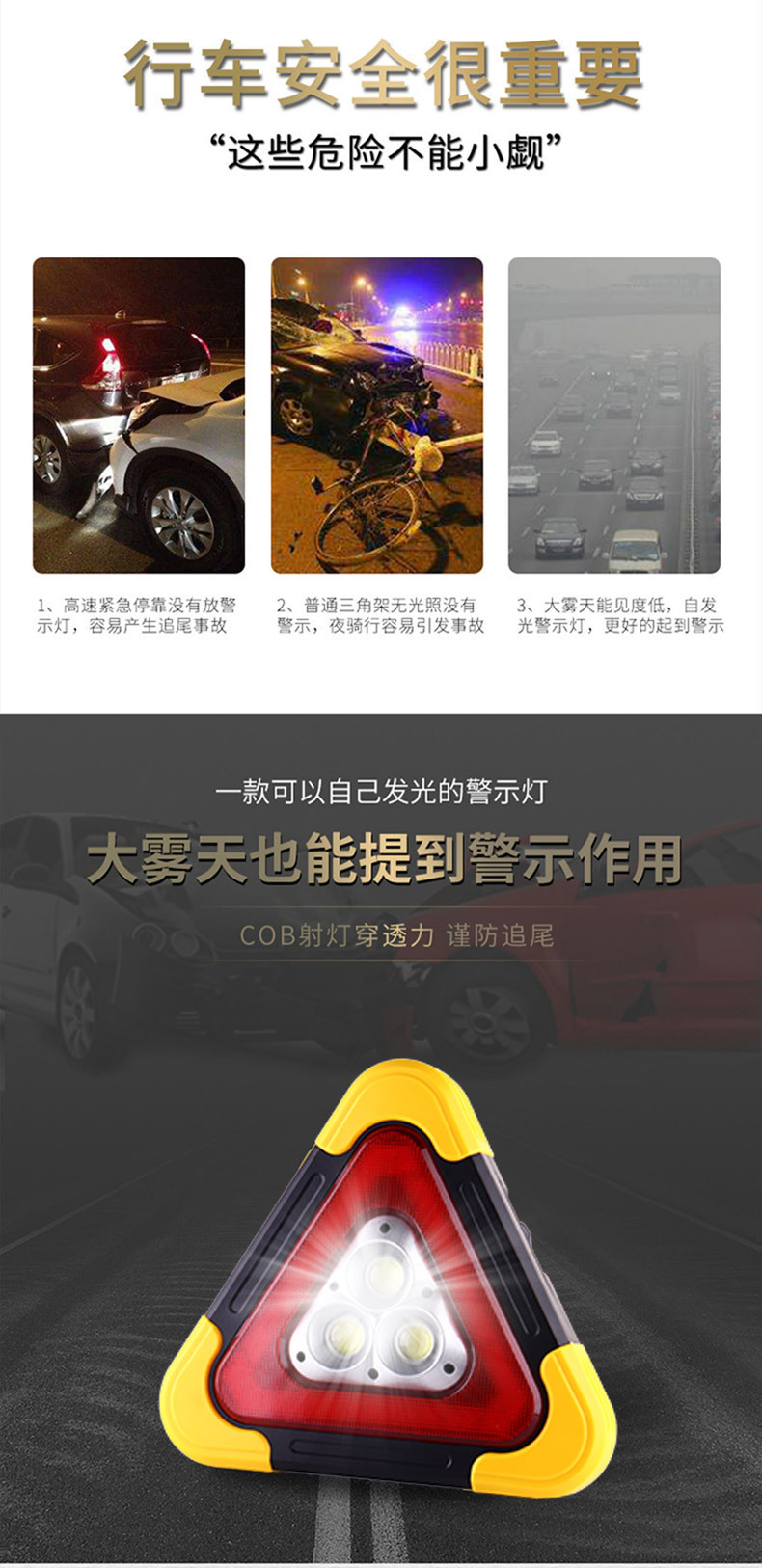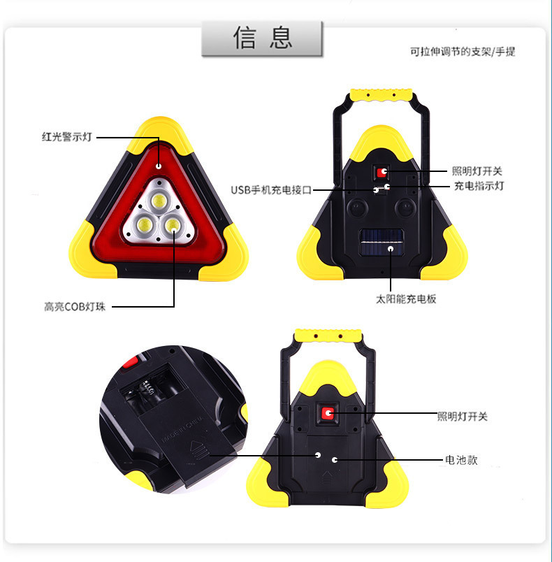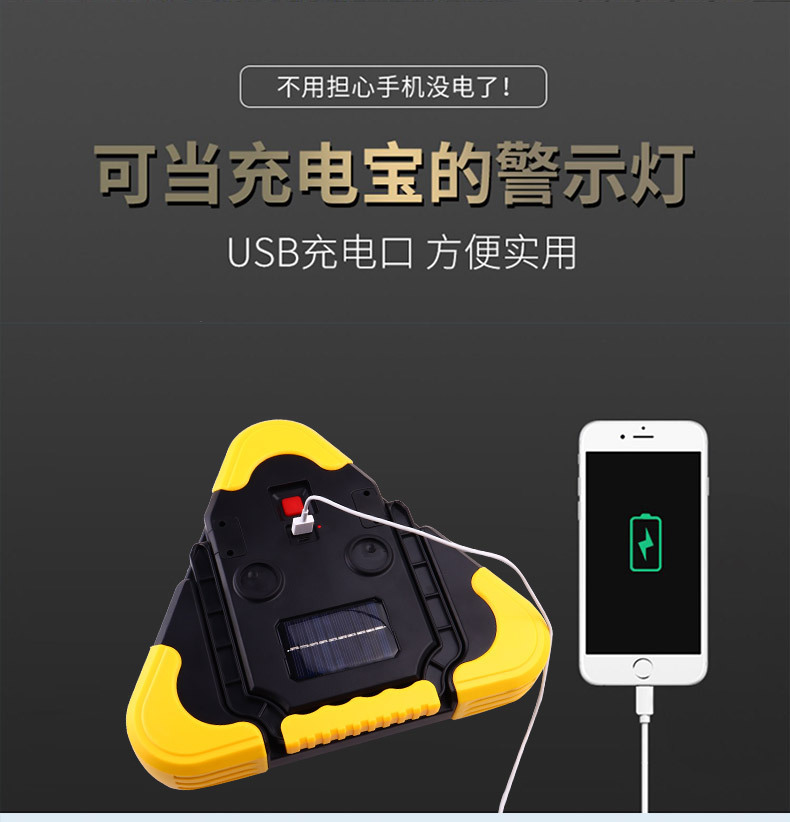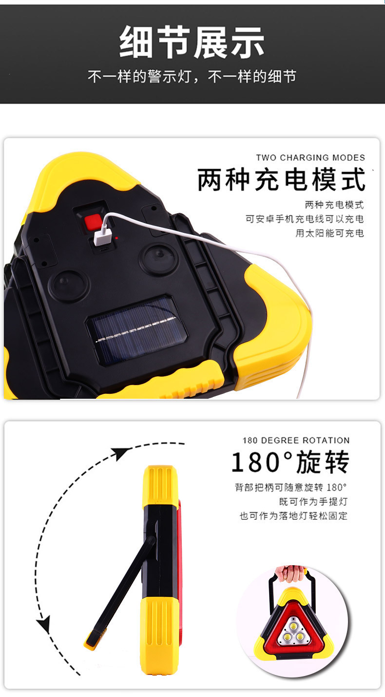 Автомобильный треугольный сигнальный знак с автоматическим светящимся штативом, отражающий свет для парковки, работающий на солнечной энергии, аварийный свет.