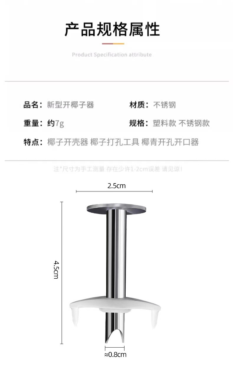 Открыто кокосовое божество Новый нержавеющая сталь Открыто кокосовое скорлупа пластиковый перфоратор Бытовые инструменты
