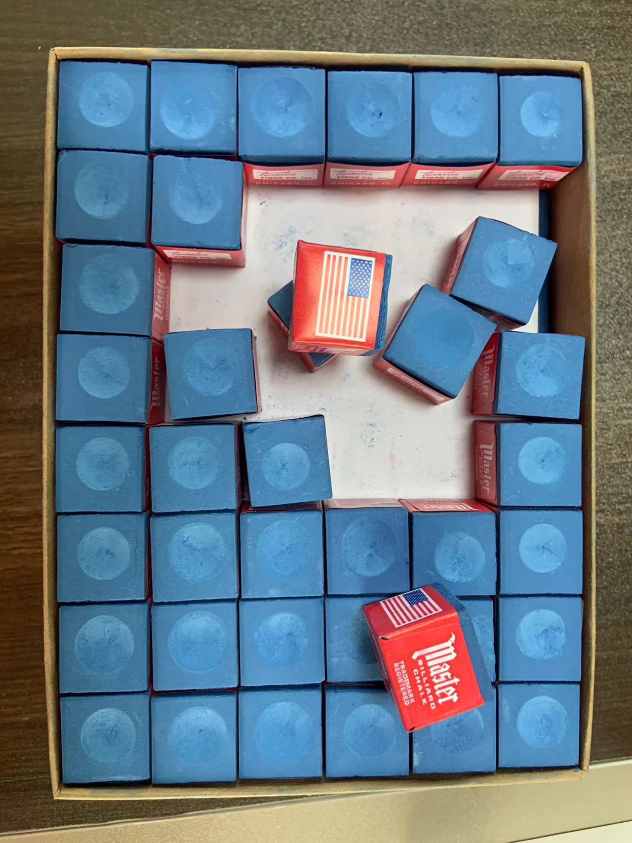 Оптовые поставки товаров для бильярда, производитель мелка для бильярда, мел для кия Lu класса А, полировочный порошок.