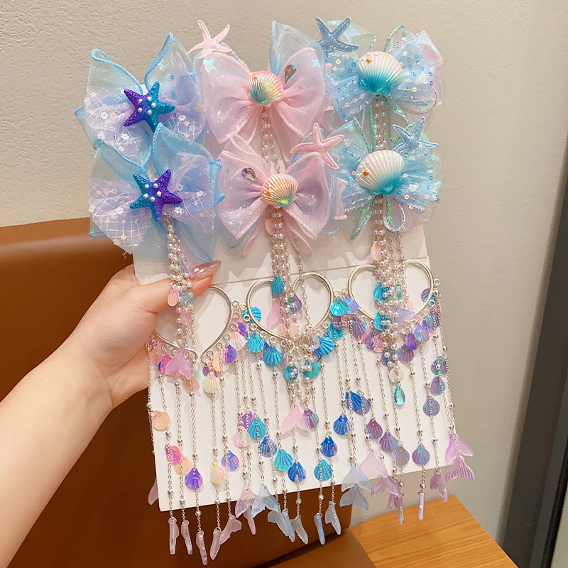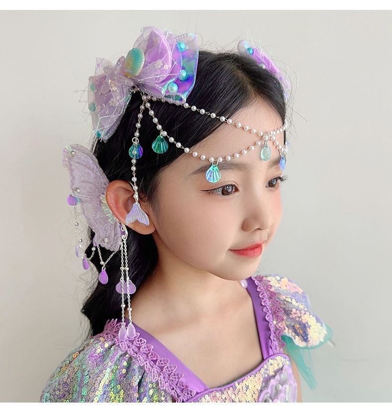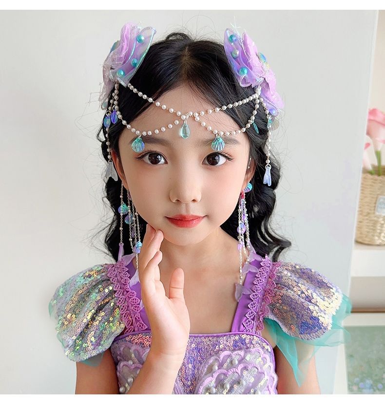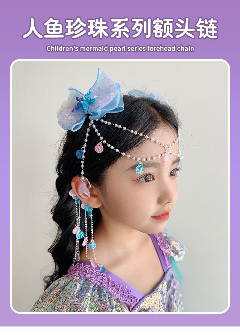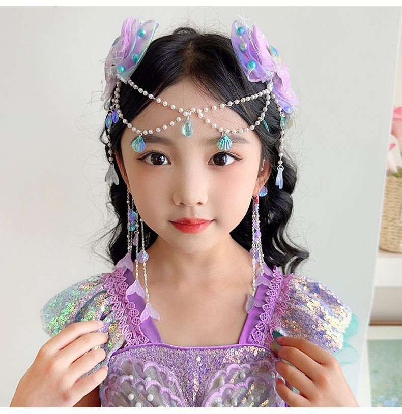 Детская Русалка Лоб Цепь Принцесса Кеточки Фа Карточка Головные уборы Девочка Раковина Серьги Пиранья Джи Фа Украшения