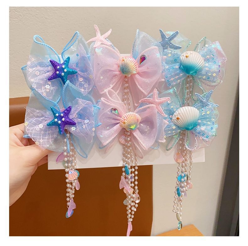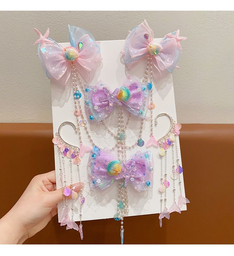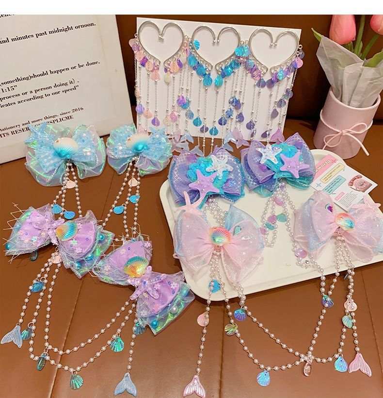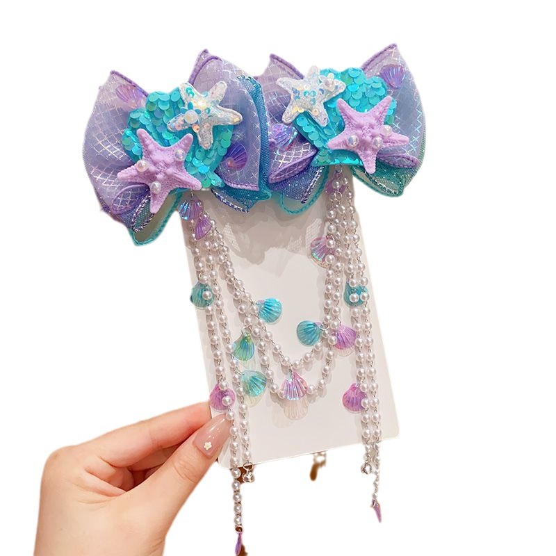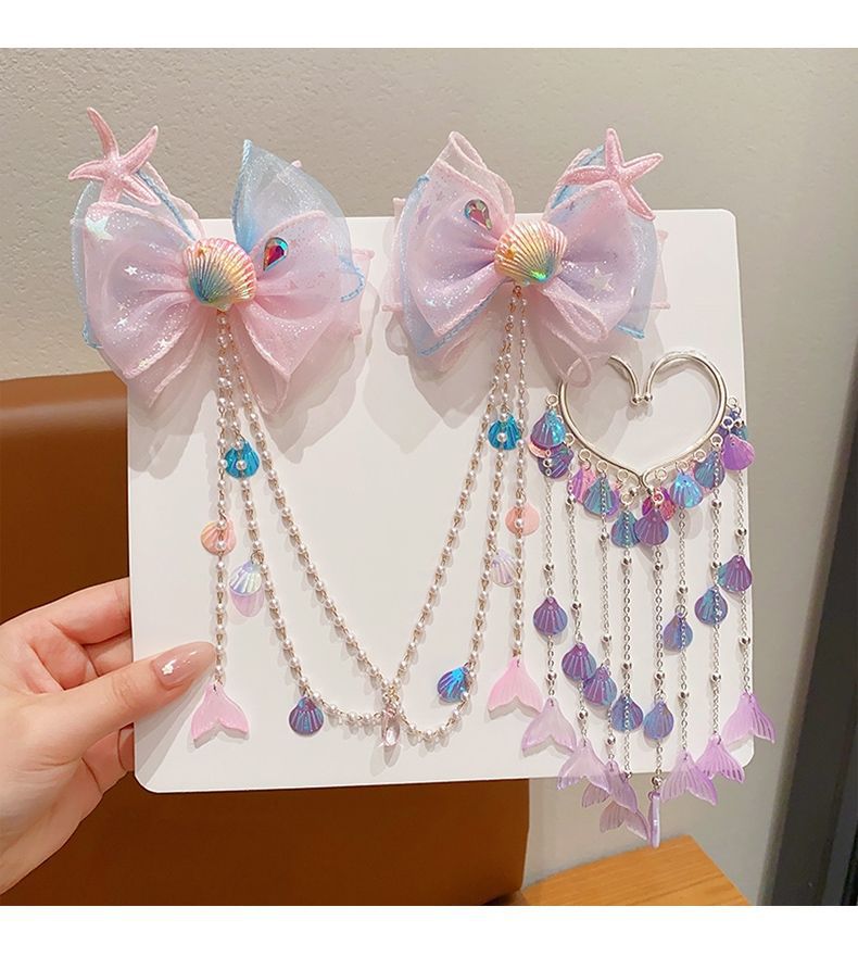 Детская Русалка Лоб Цепь Принцесса Кеточки Фа Карточка Головные уборы Девочка Раковина Серьги Пиранья Джи Фа Украшения