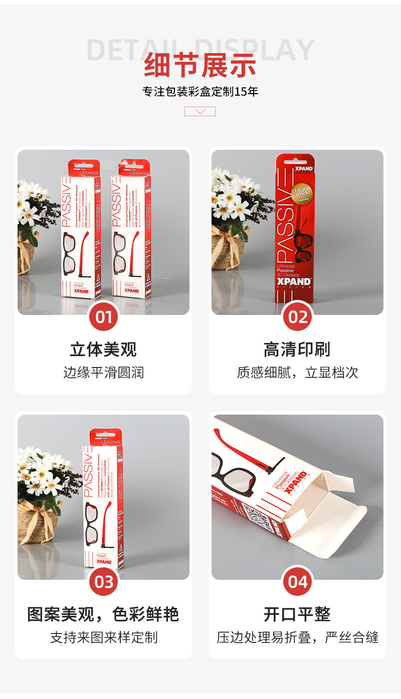 Очковая коробка для очков белая карточка упаковочная коробка для печати цветной печати производитель гофрированного повседневного спроса косметическая коробка оптом