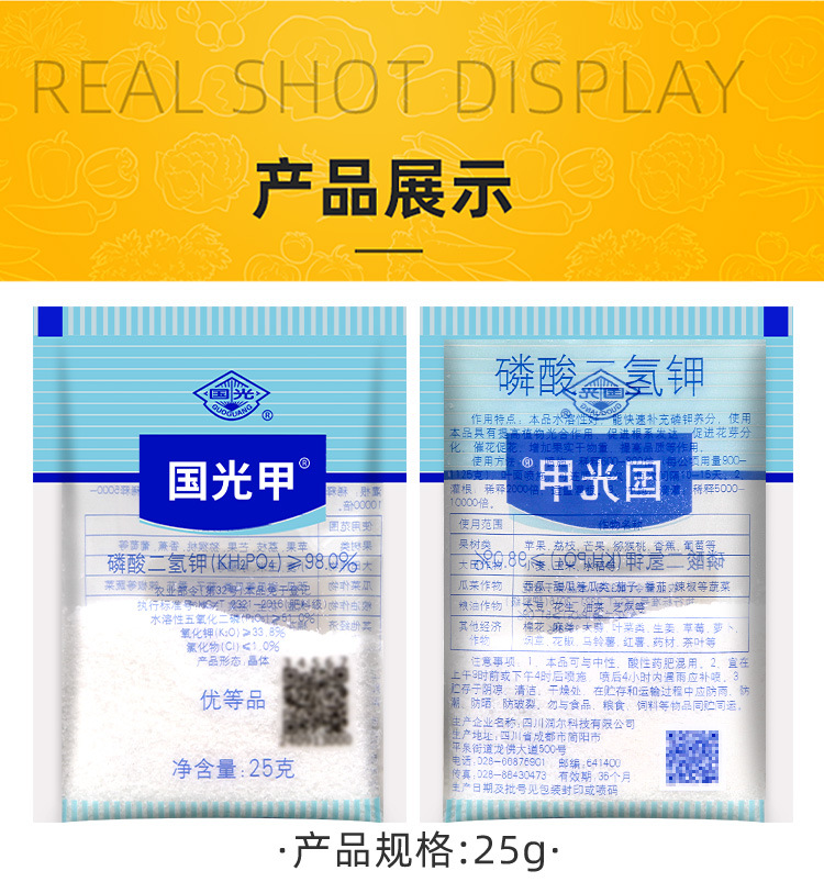 Калий Гуогуань Калий Гуогуань Дигидрогенфосфатное удобрение для овощей и цветов Бытовое удобрение Общее удобрение Калийное удобрение Фосфатное удобрение Листовое удобрение 25 г