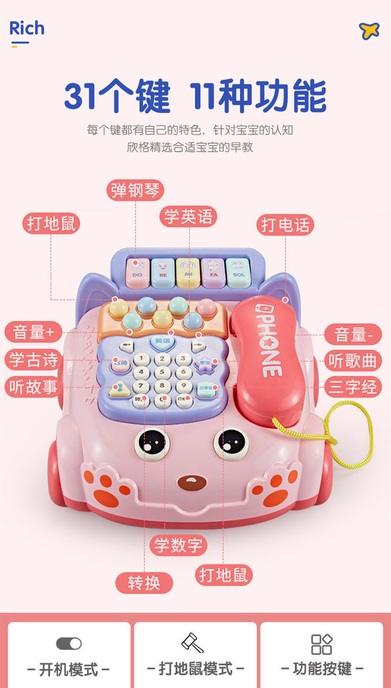 Детская игрушка Симулятор телефона стационарный малыш мальчик девочка музыка головоломка дошкольное образование 1 год 2 года 3