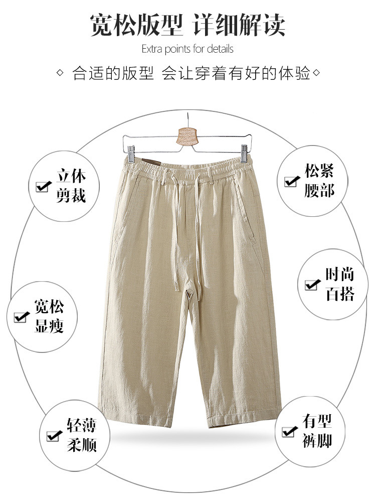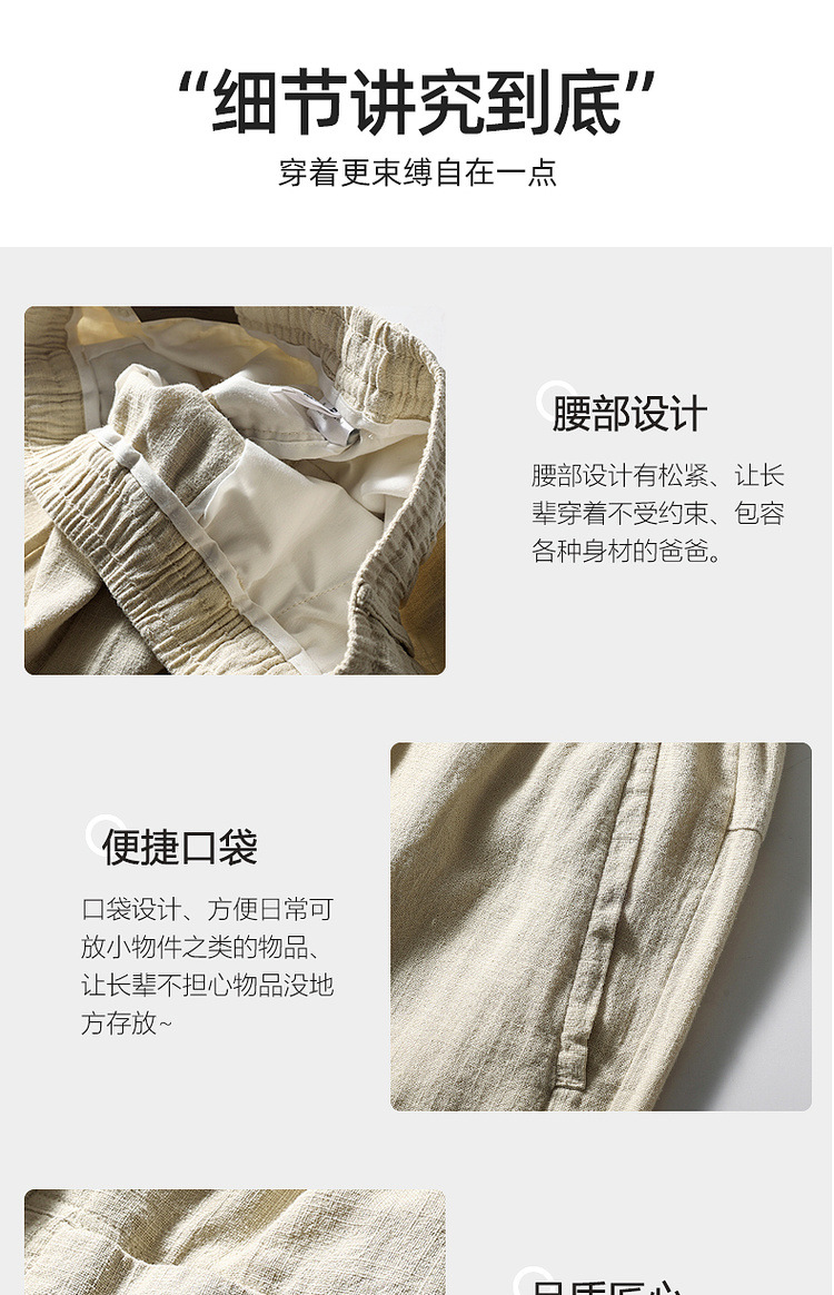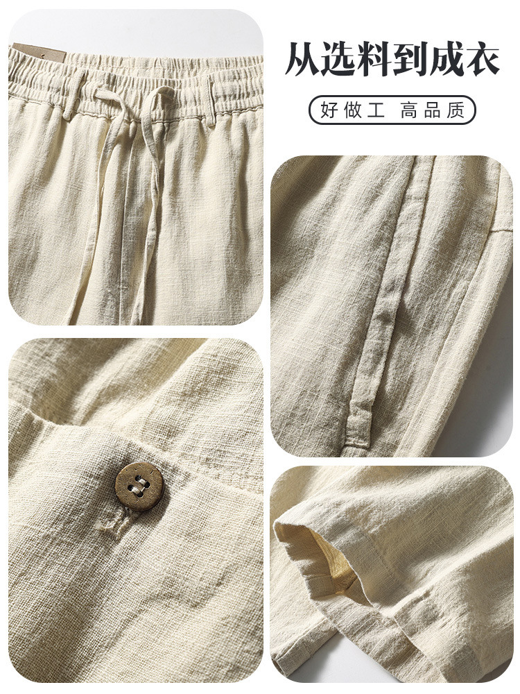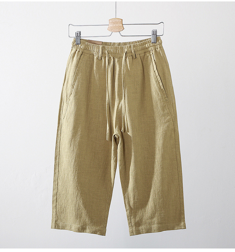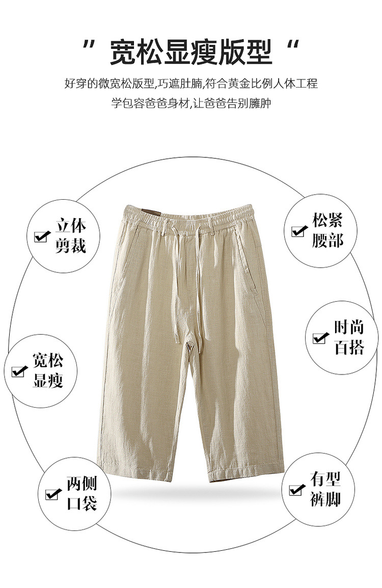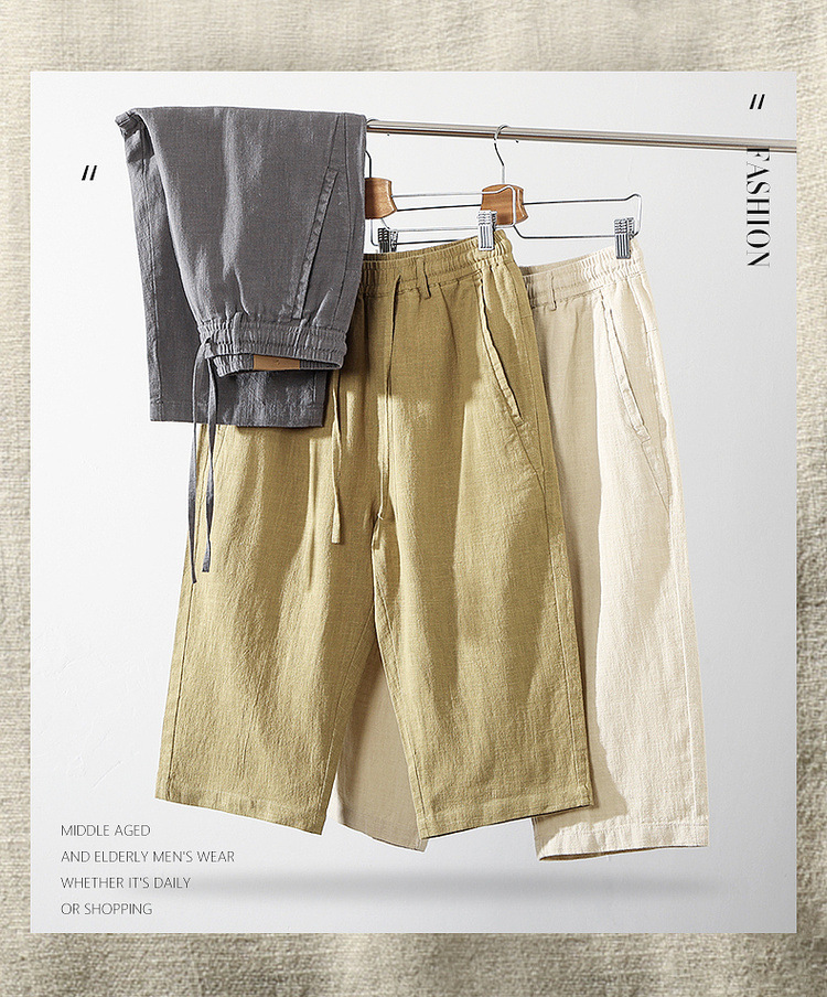 Летние мужские ретро сосновые хлопчатобумажные льняные повседневные брюки папа дикие свободные укороченные брюки среднего и пожилого возраста свободные брюки