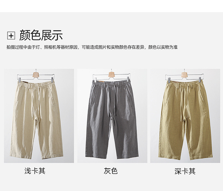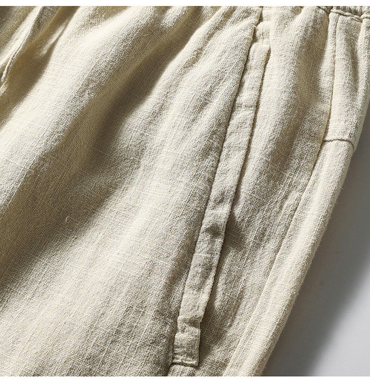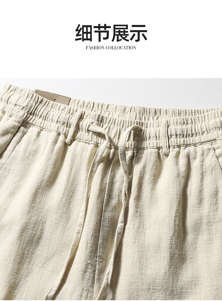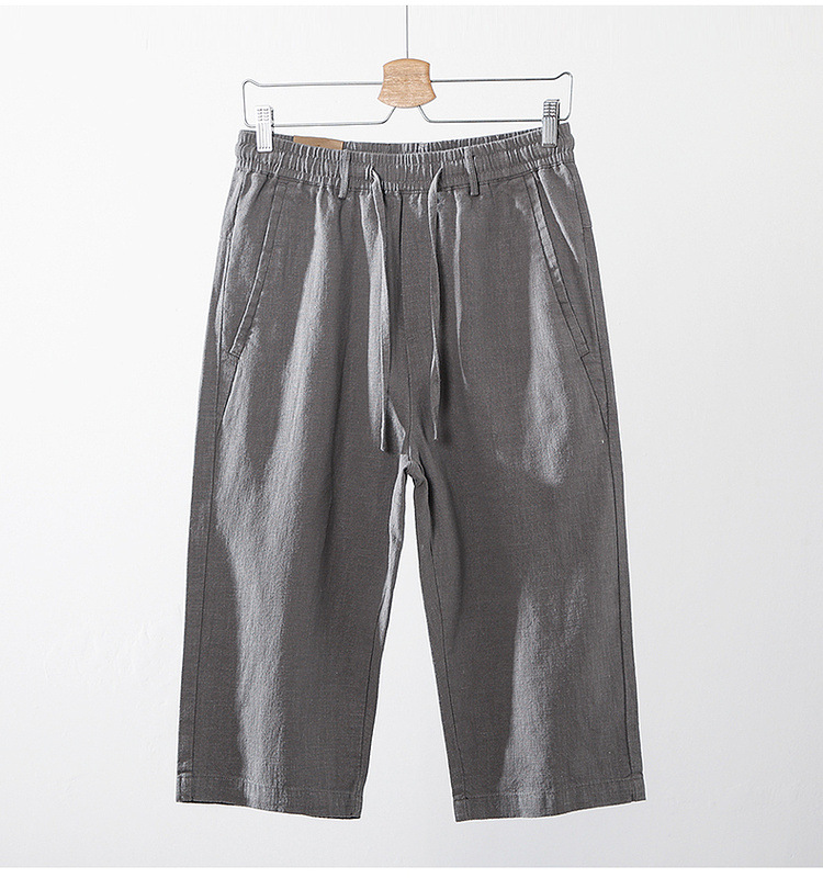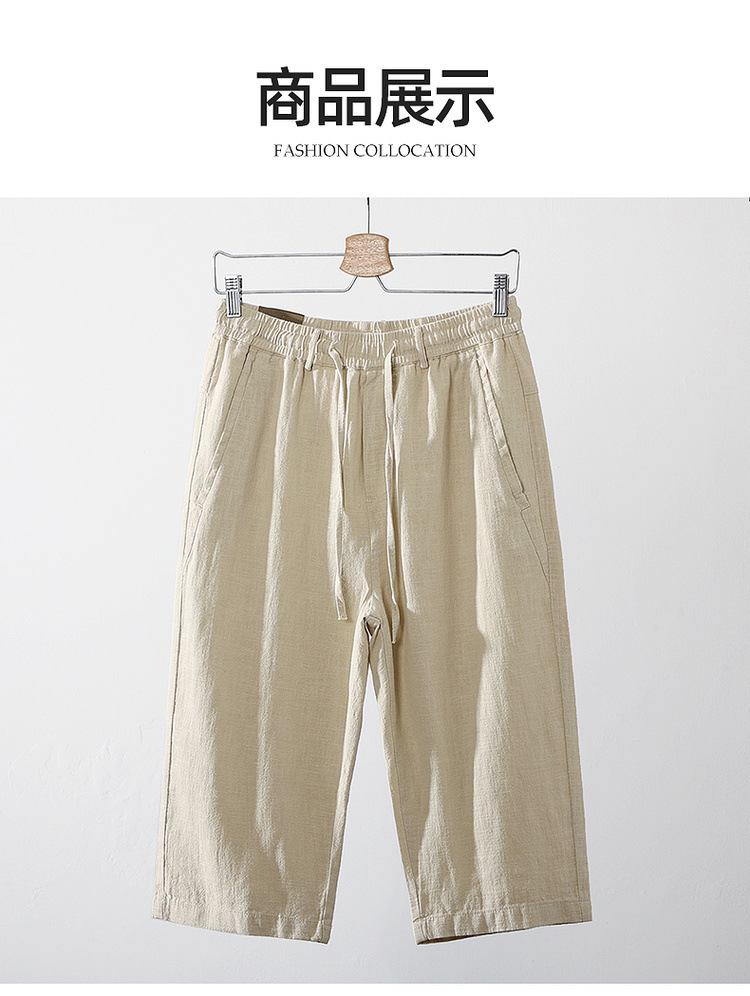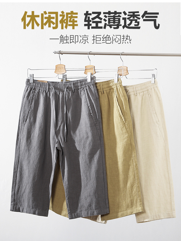 Летние мужские ретро сосновые хлопчатобумажные льняные повседневные брюки папа дикие свободные укороченные брюки среднего и пожилого возраста свободные брюки