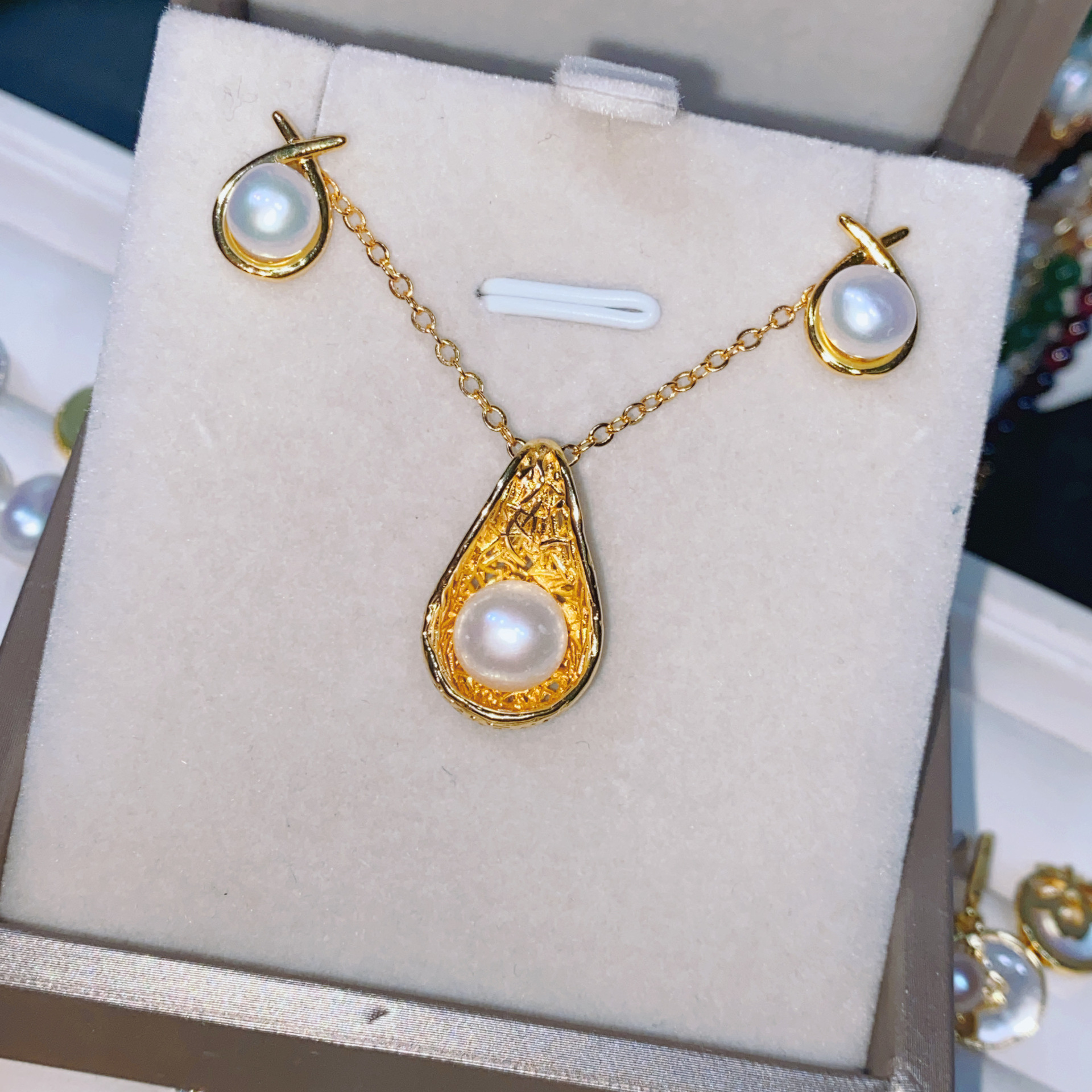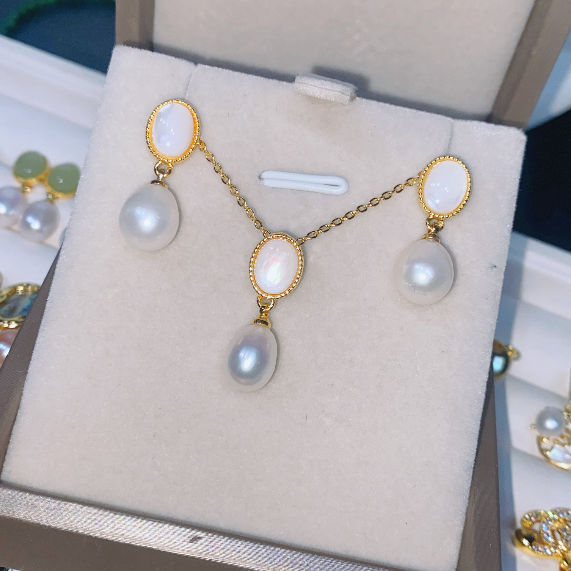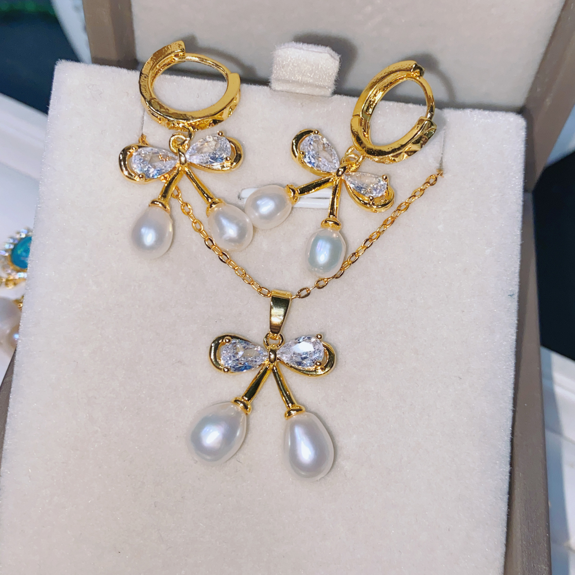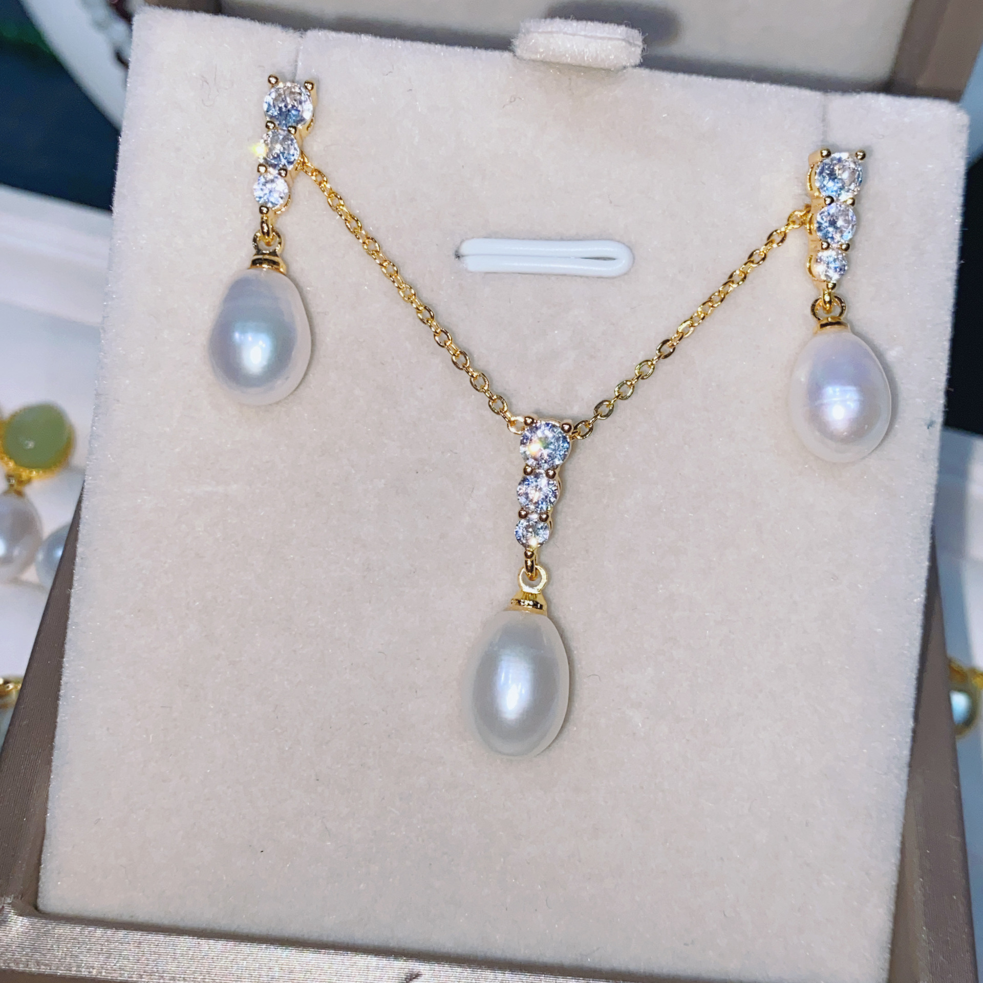 S925 серебряная игла позолоченный новый летний жемчуг набор натуральный пресноводный жемчуг милый зверек серьги ожерелье