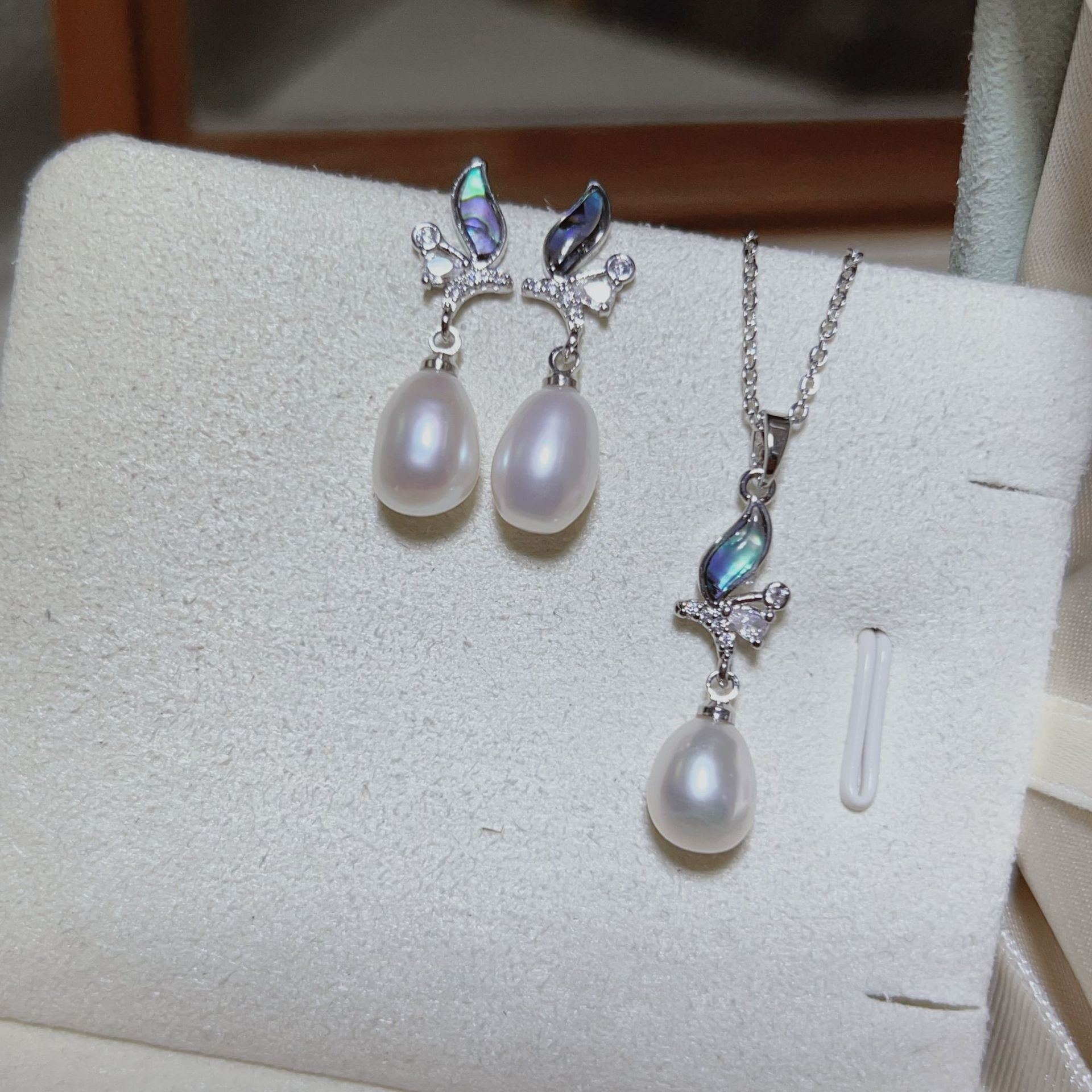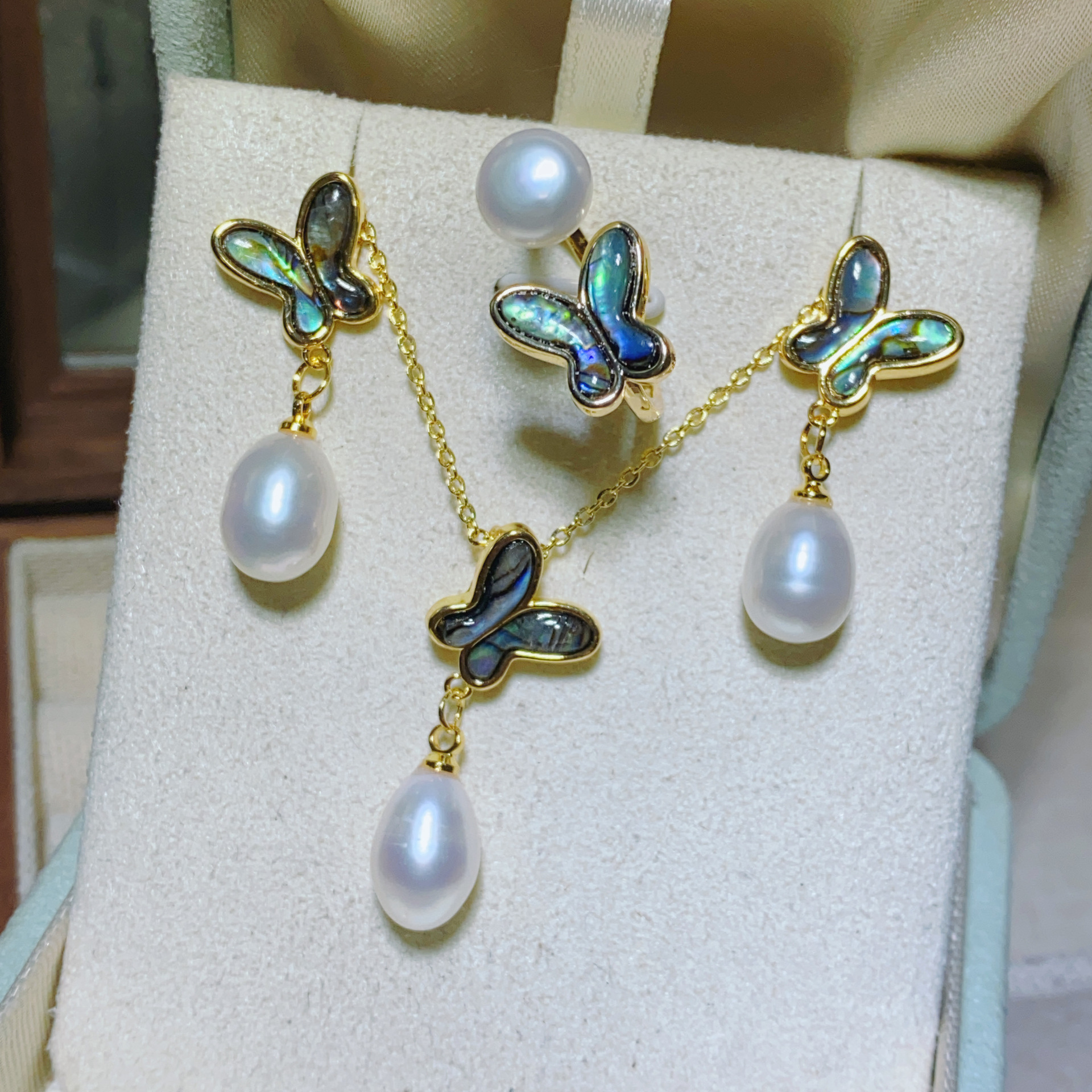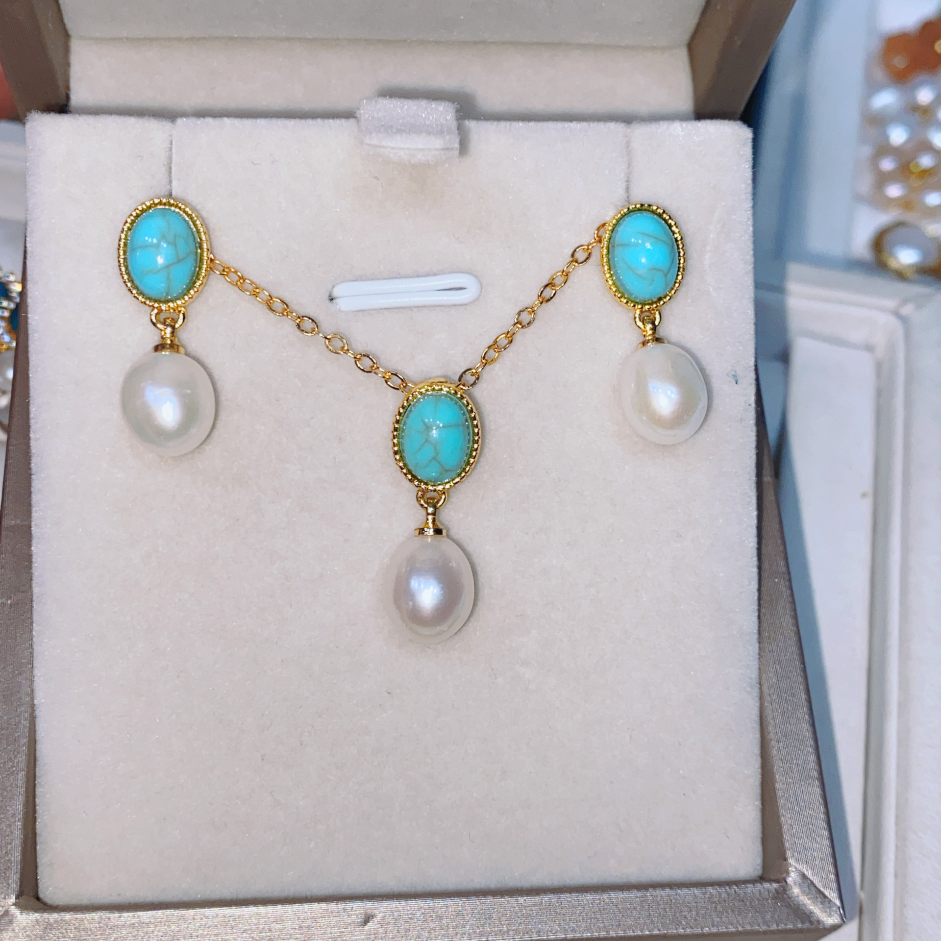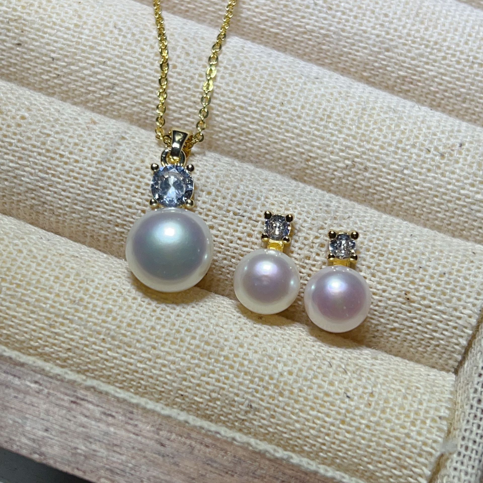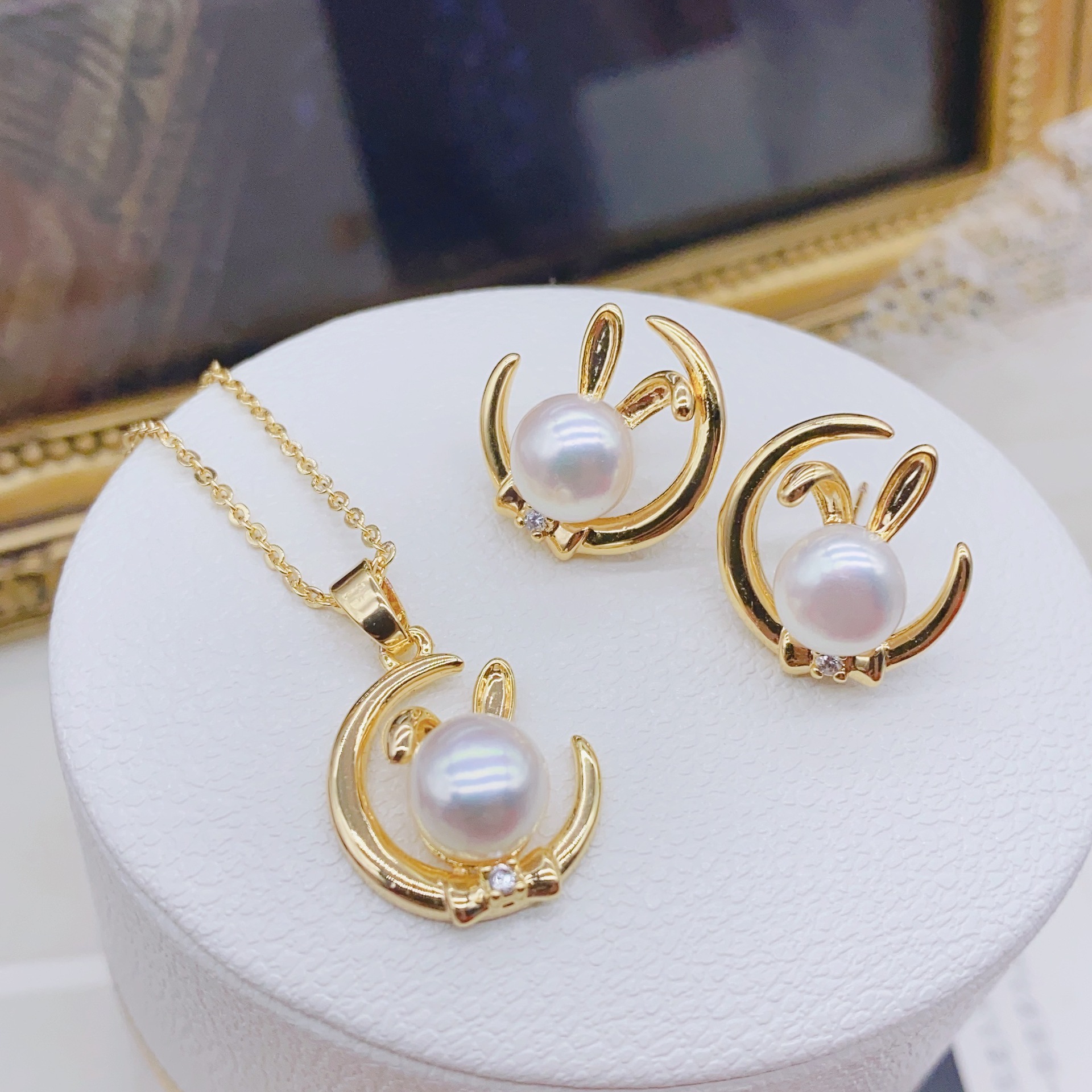 S925 серебряная игла позолоченный новый летний жемчуг набор натуральный пресноводный жемчуг милый зверек серьги ожерелье