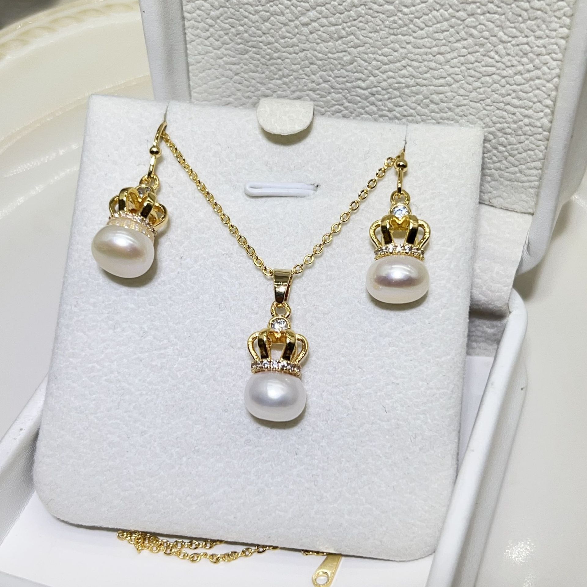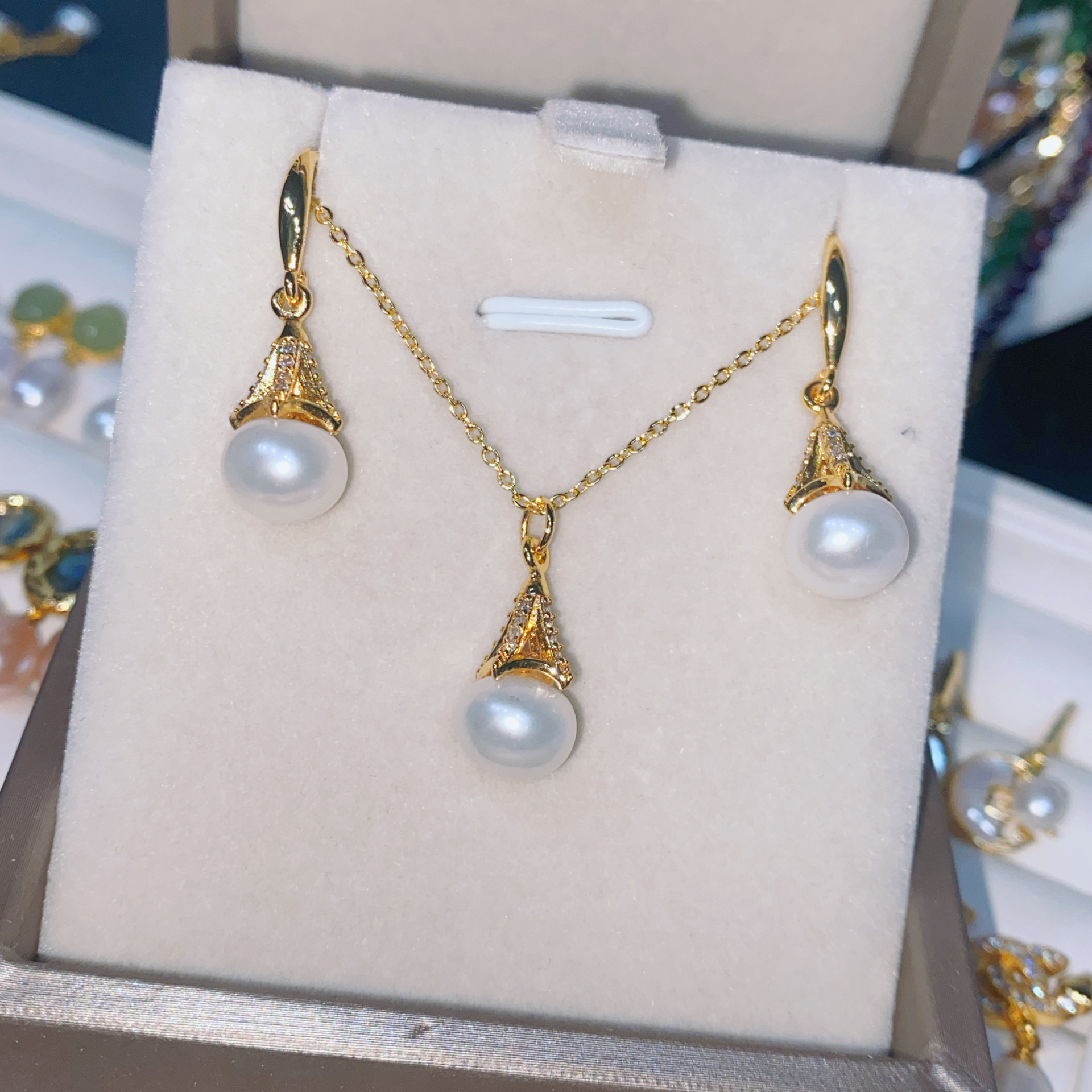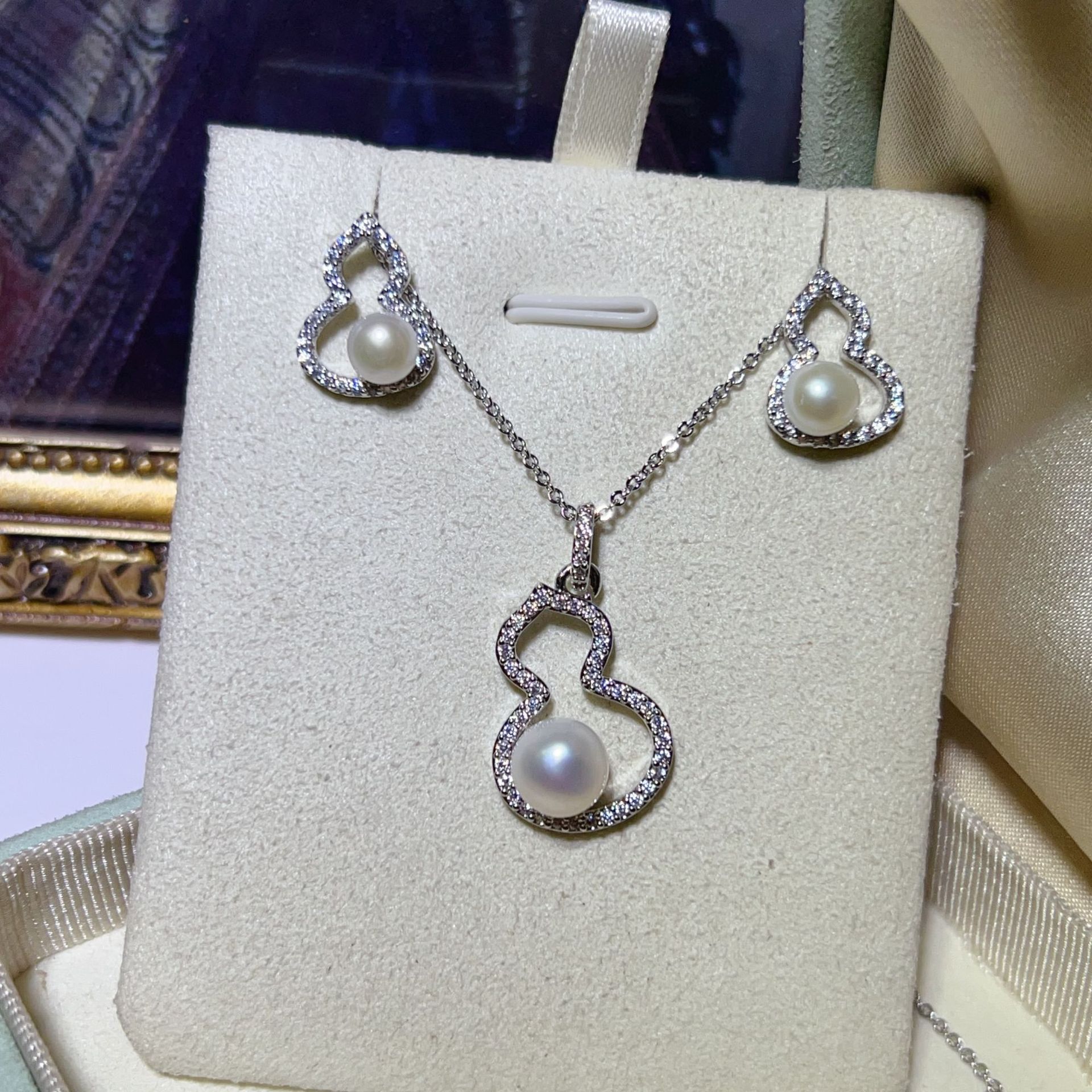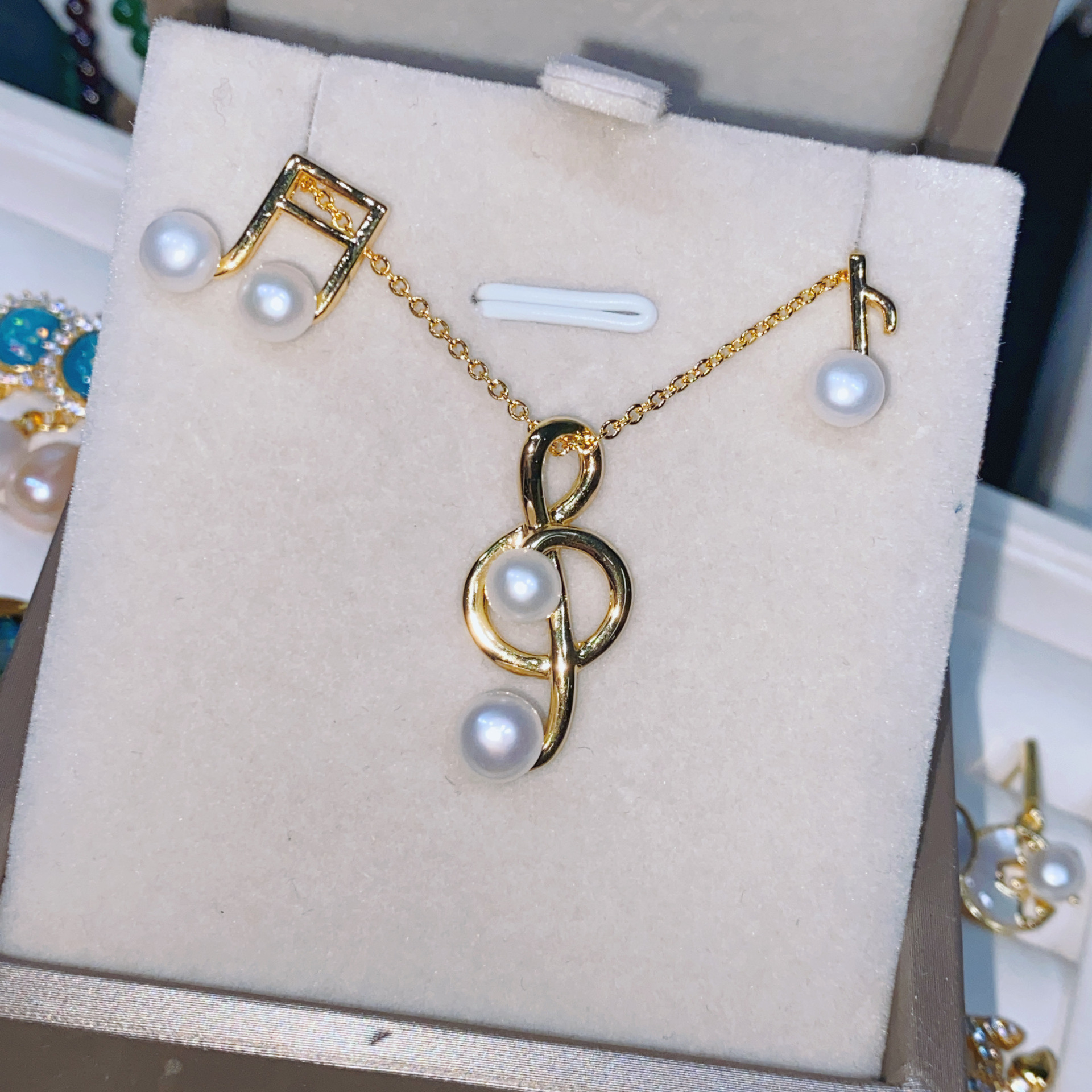 S925 серебряная игла позолоченный новый летний жемчуг набор натуральный пресноводный жемчуг милый зверек серьги ожерелье