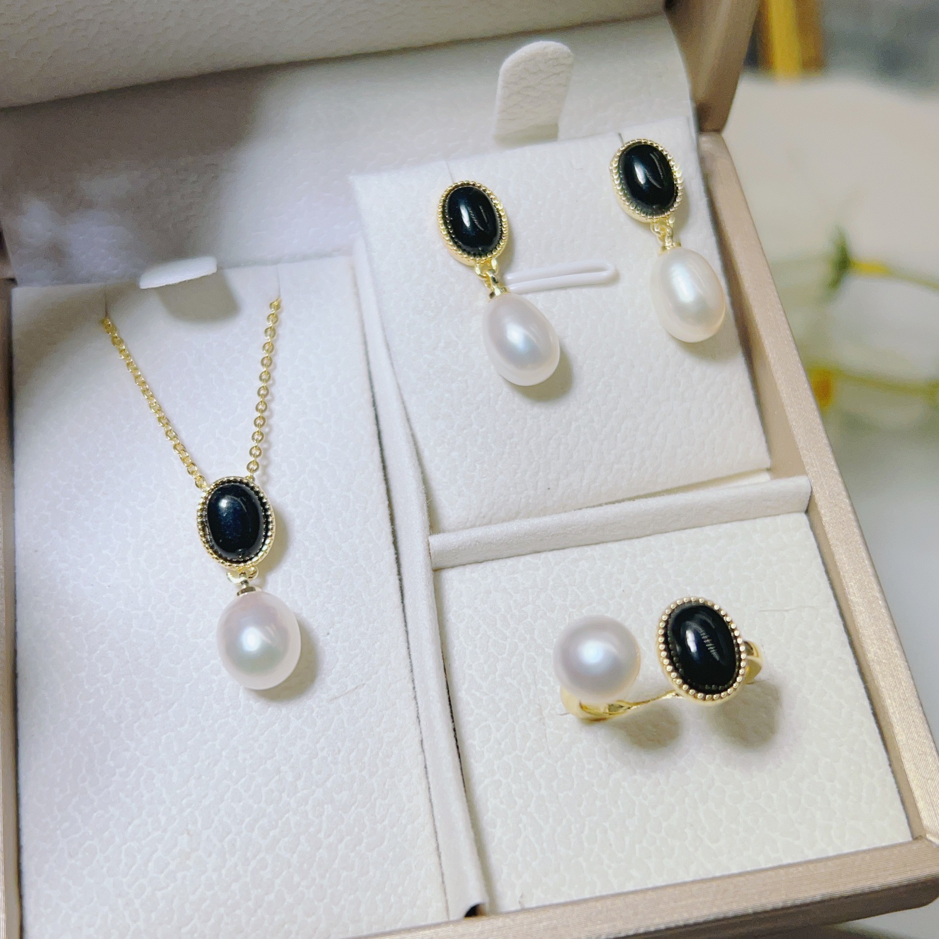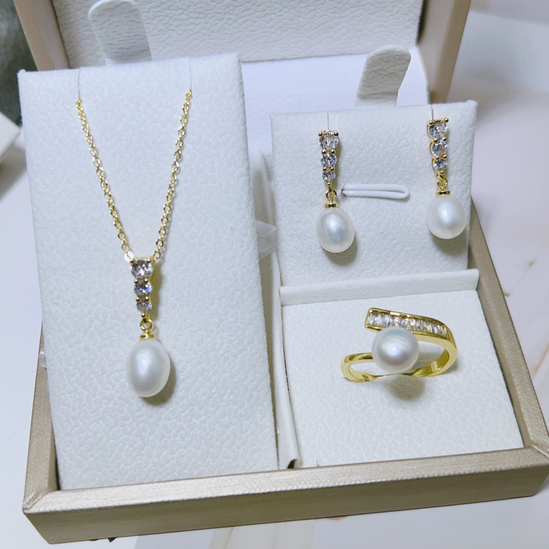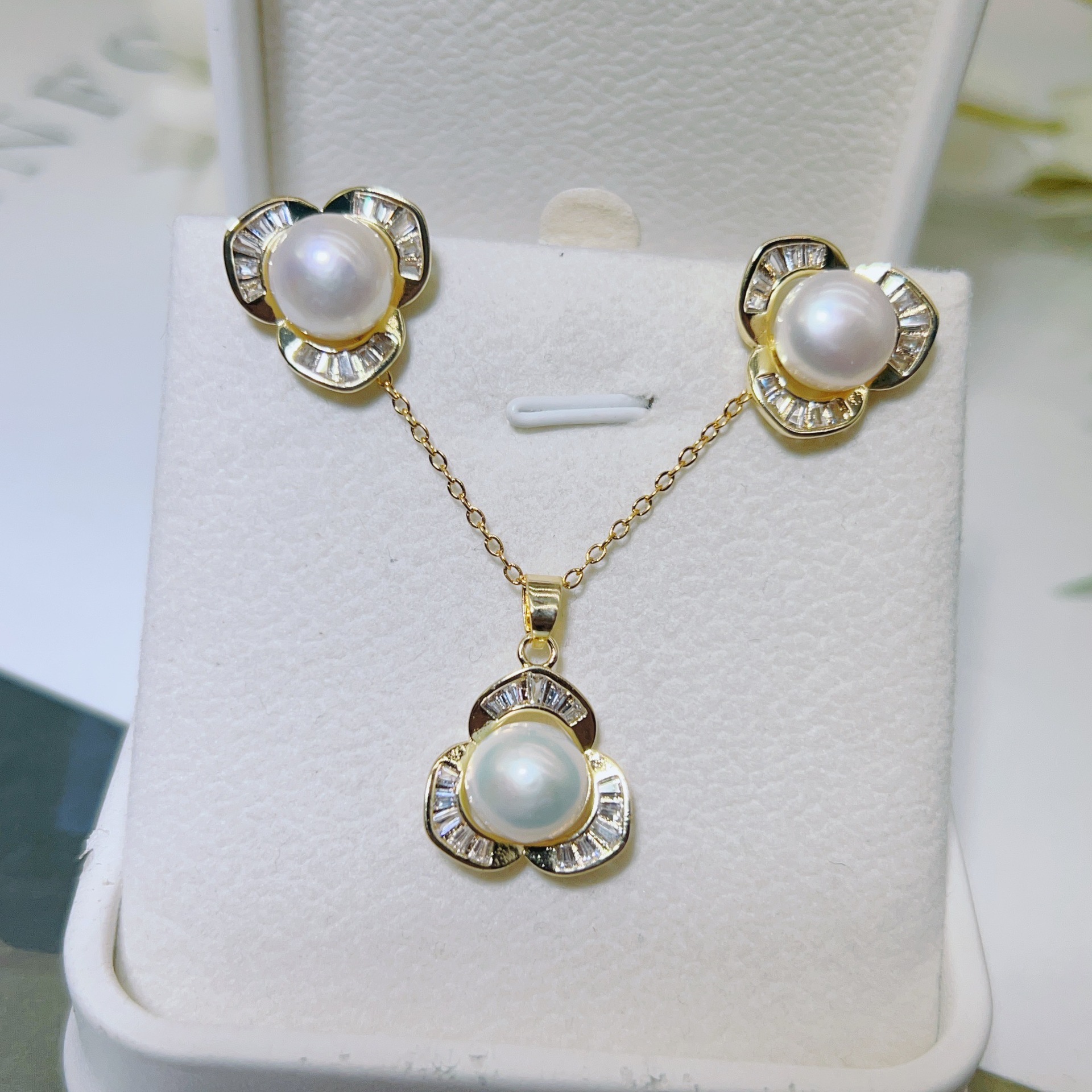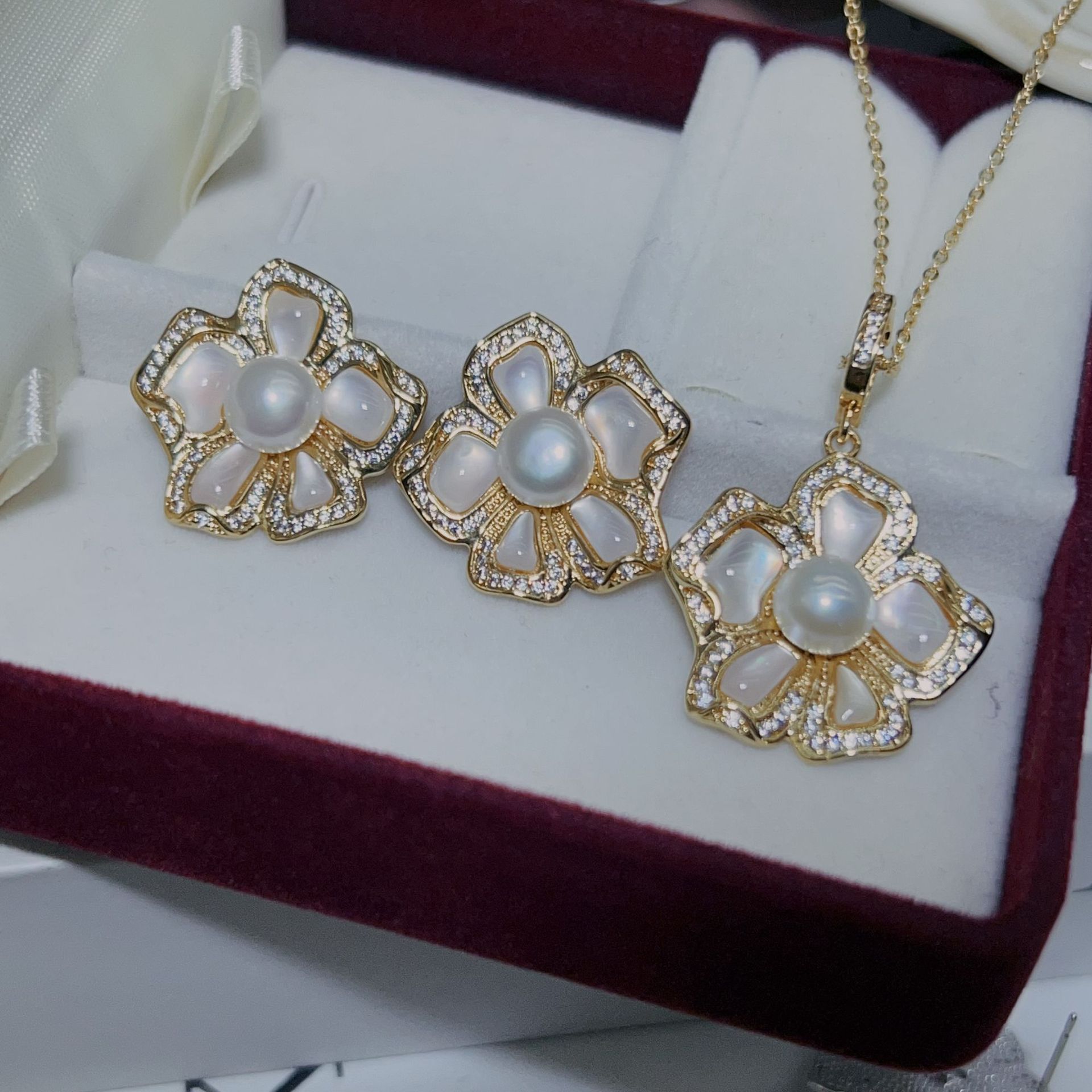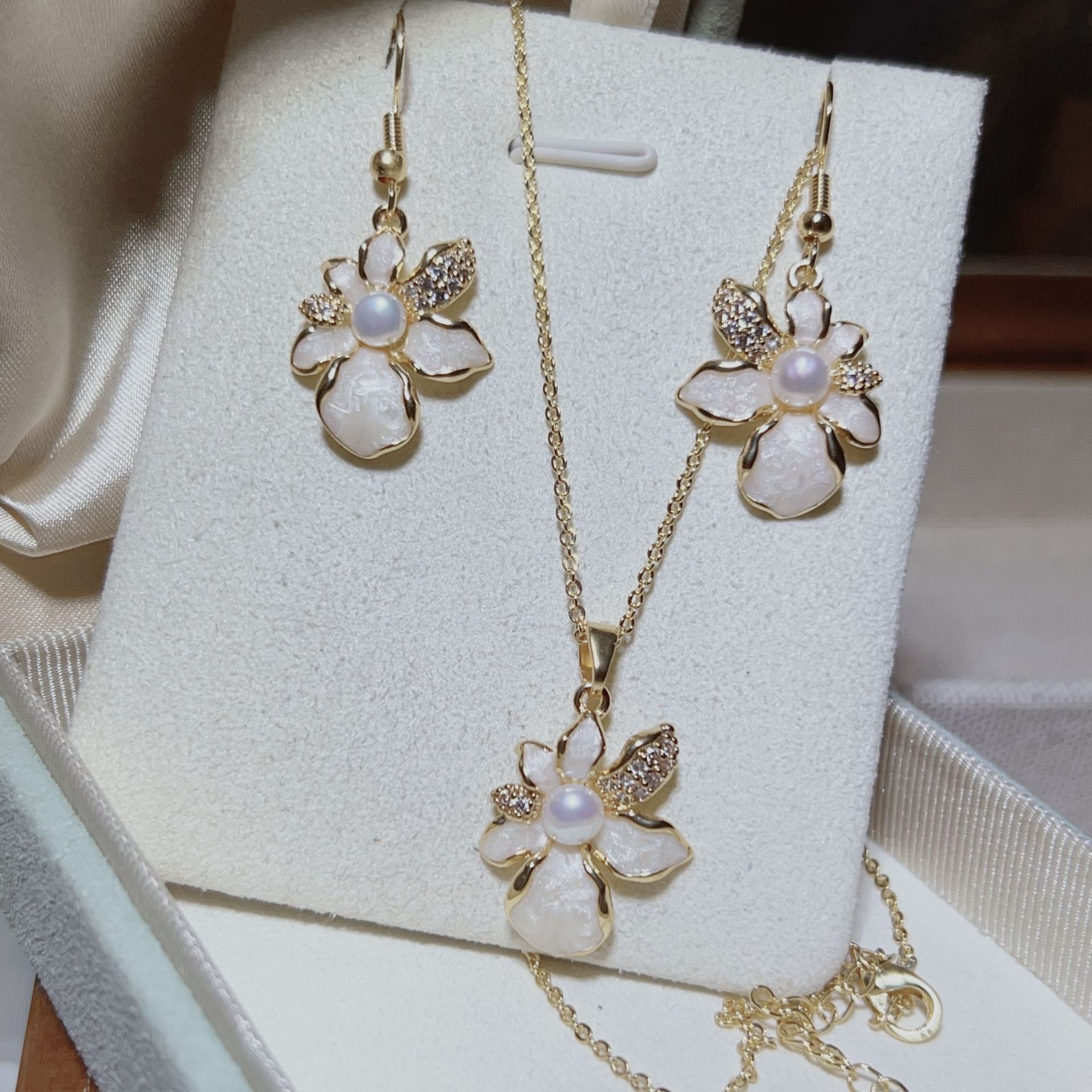 S925 серебряная игла позолоченный новый летний жемчуг набор натуральный пресноводный жемчуг милый зверек серьги ожерелье