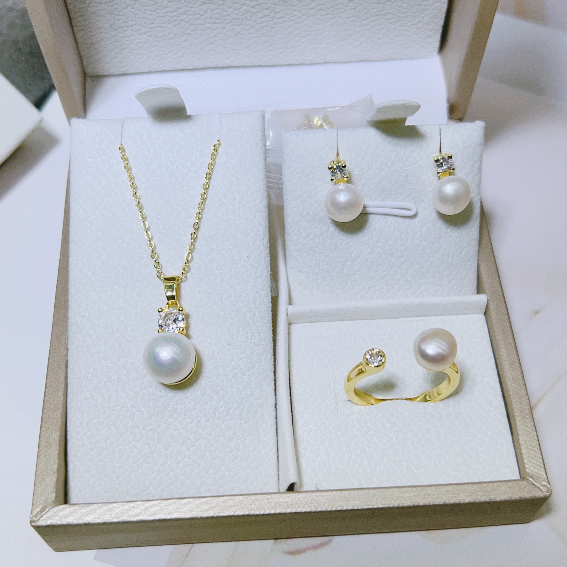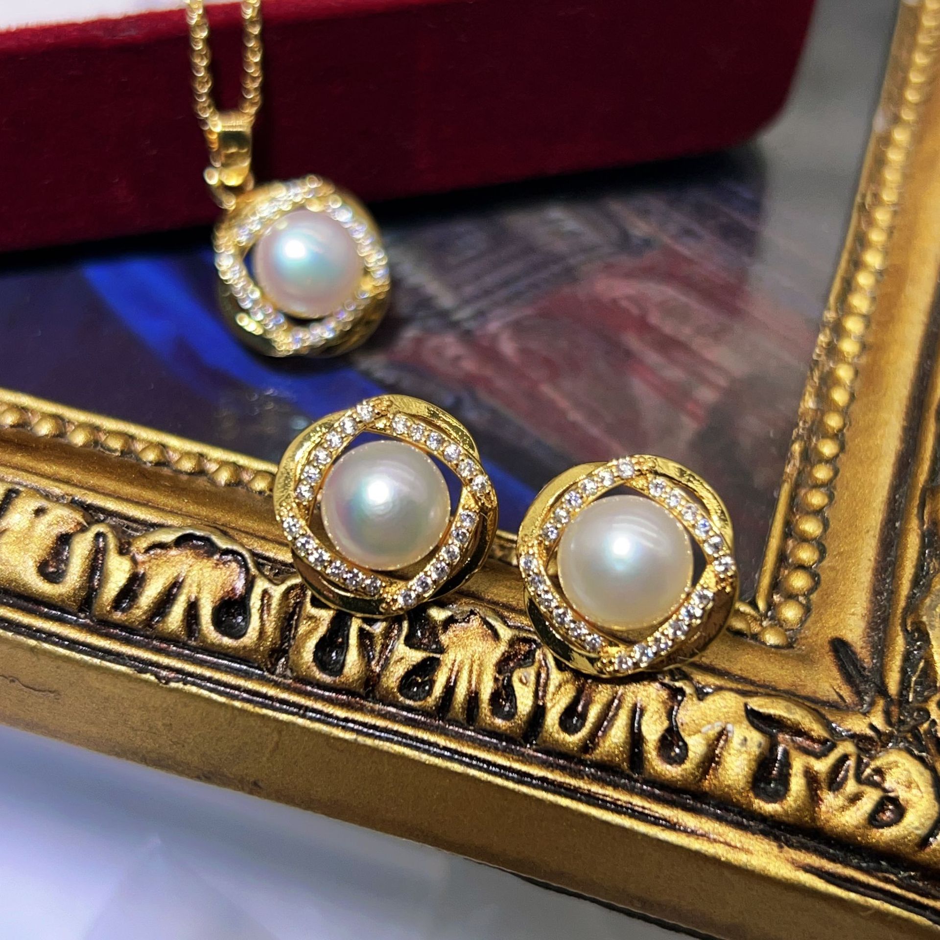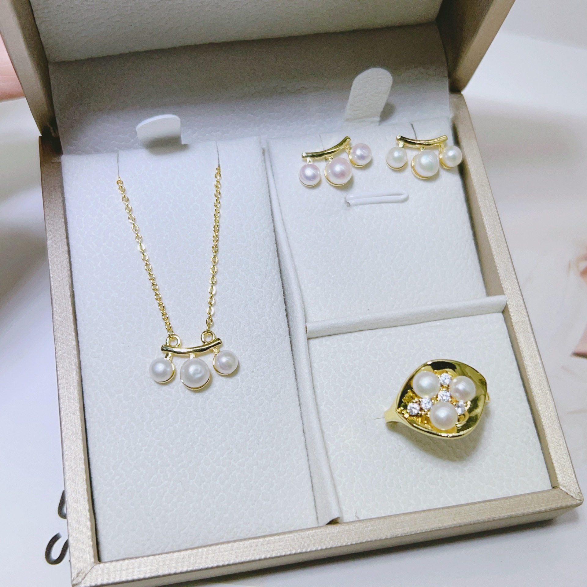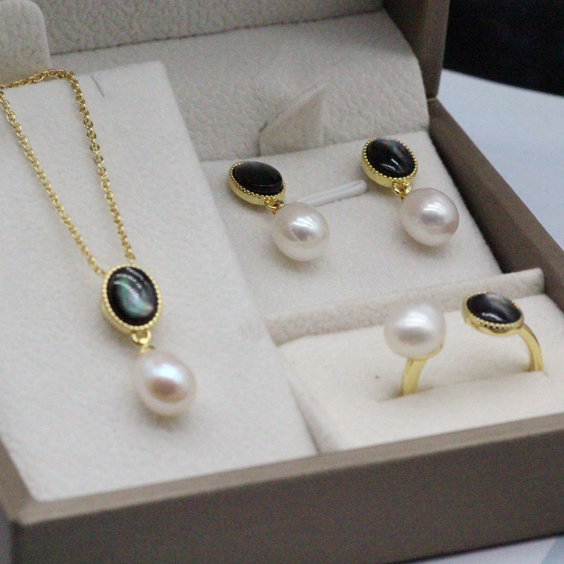 S925 серебряная игла позолоченный новый летний жемчуг набор натуральный пресноводный жемчуг милый зверек серьги ожерелье