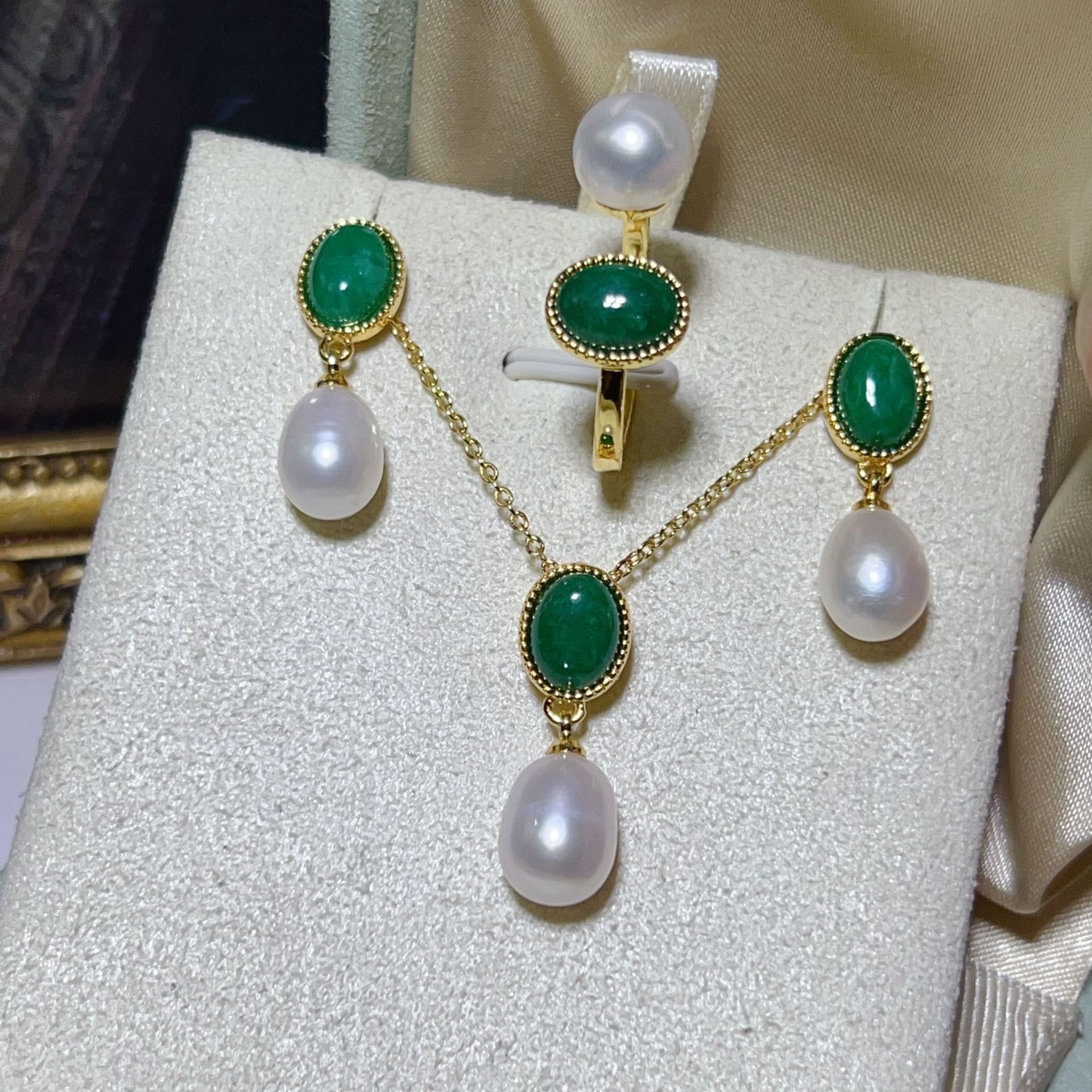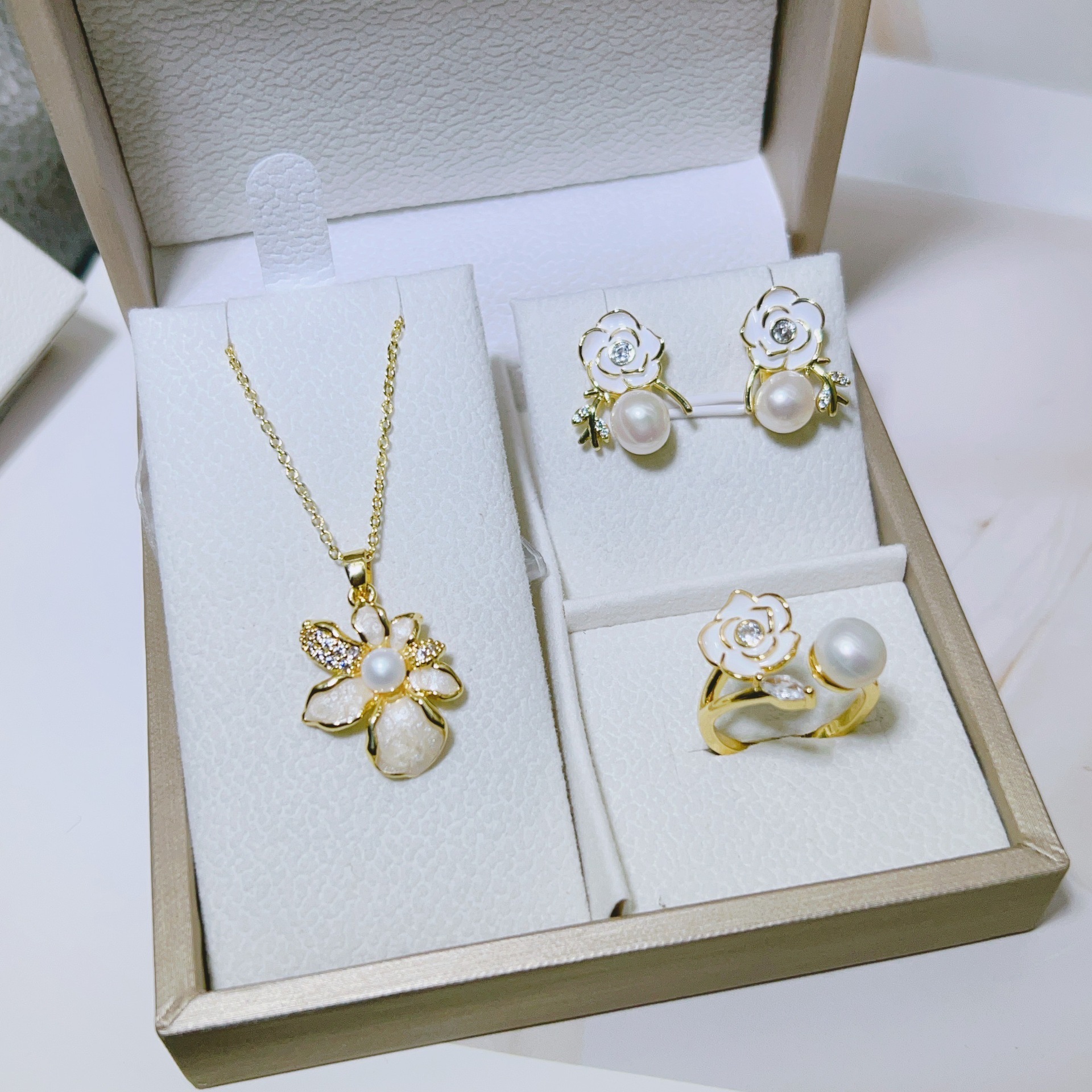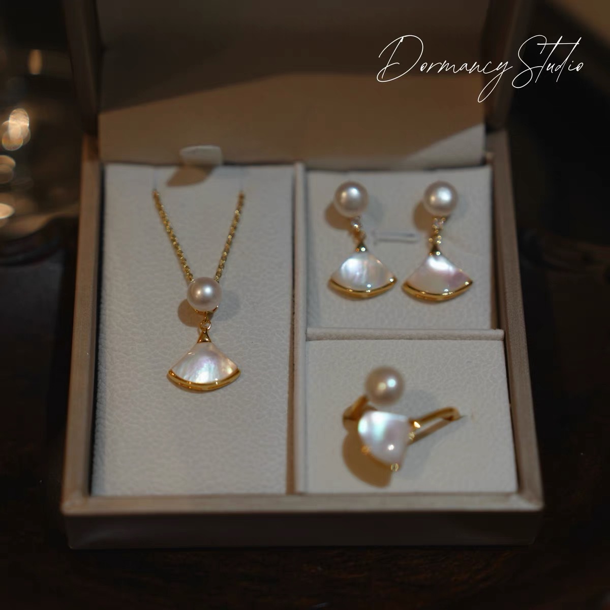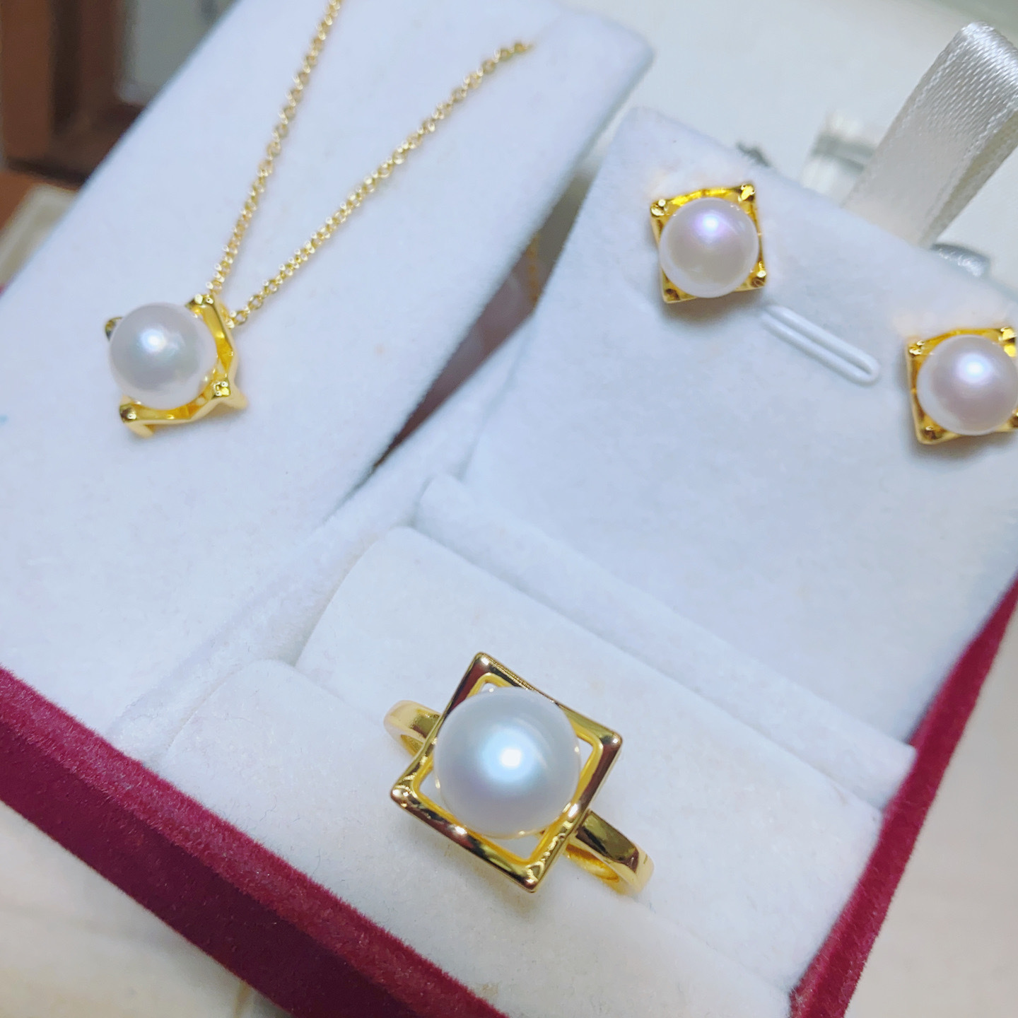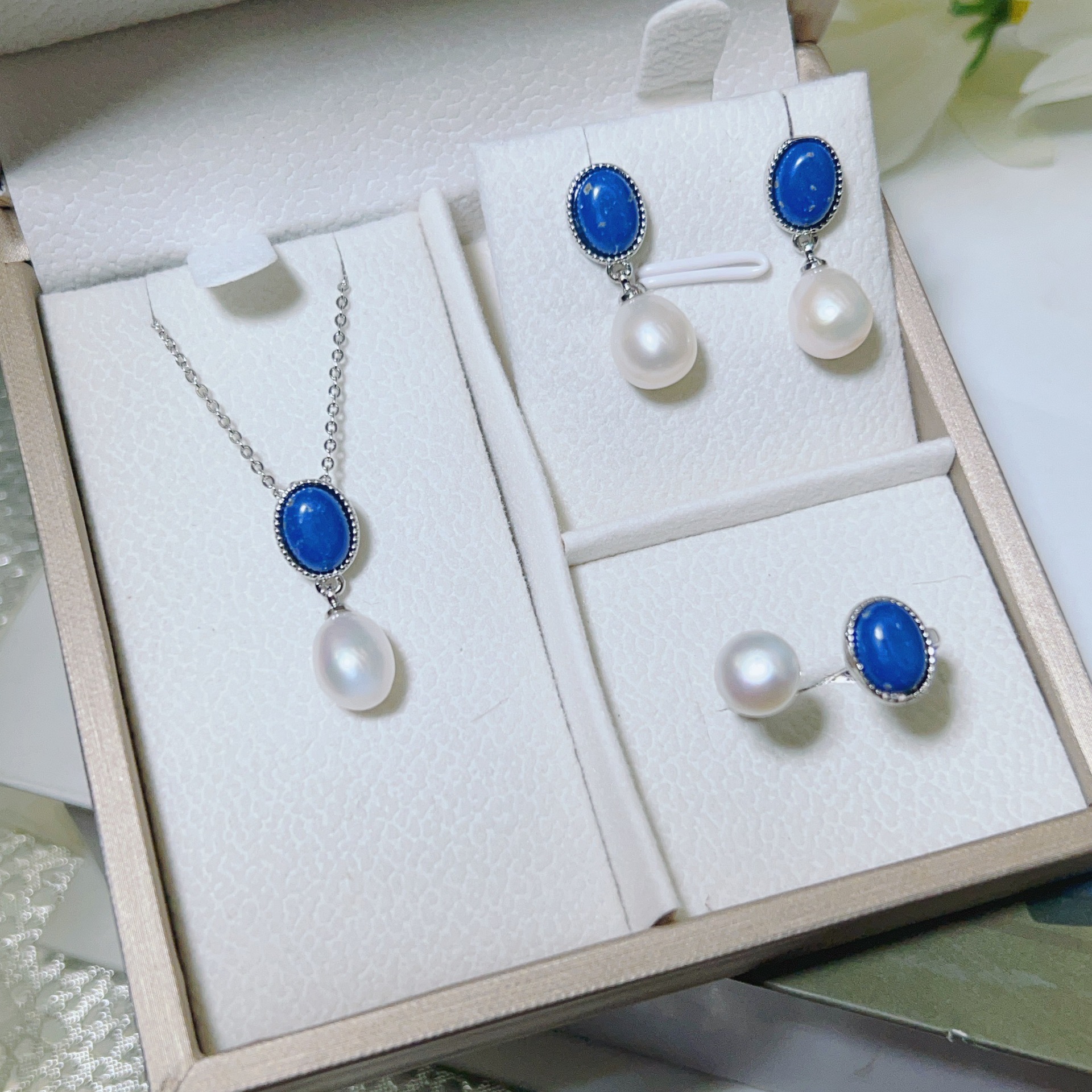 S925 серебряная игла позолоченный новый летний жемчуг набор натуральный пресноводный жемчуг милый зверек серьги ожерелье