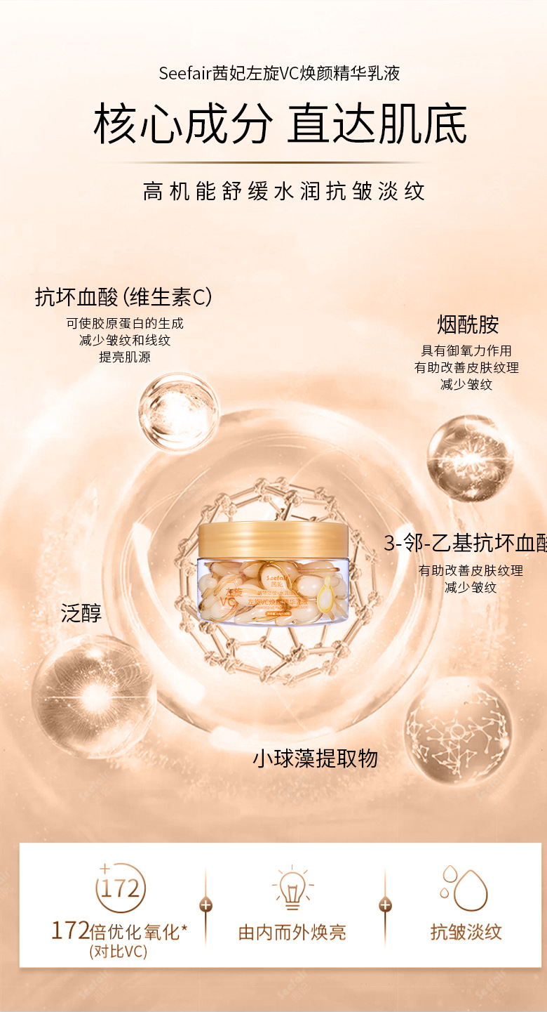 Взрыв Si Fei L-VC-омолаживающая эссенция лосьон осветляет цвет лица и выбрасывает капсулы с витамином С 50 гранул