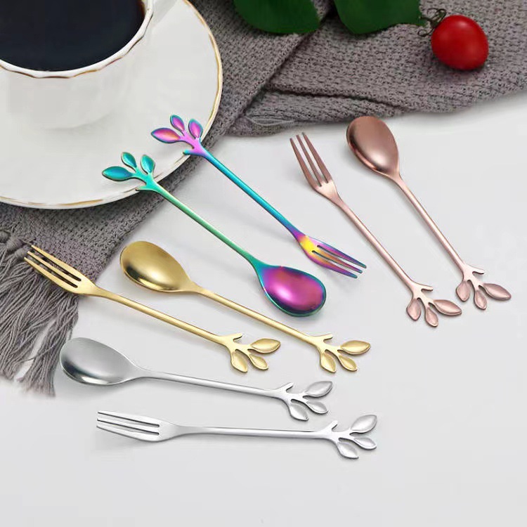 Ложка из нержавеющей стали с вишневым цветом, креативная ложка в виде листа, вилка, ложка для перемешивания кофе, ложка для цветов, десертная ложка для птичьего гнезда, вилка, подарочная ложка