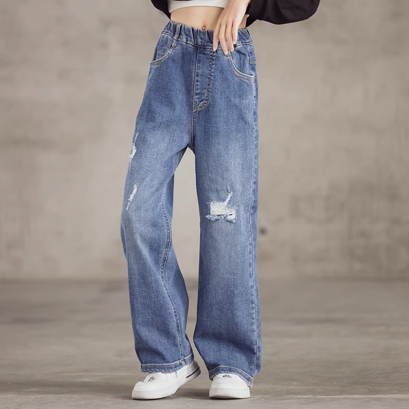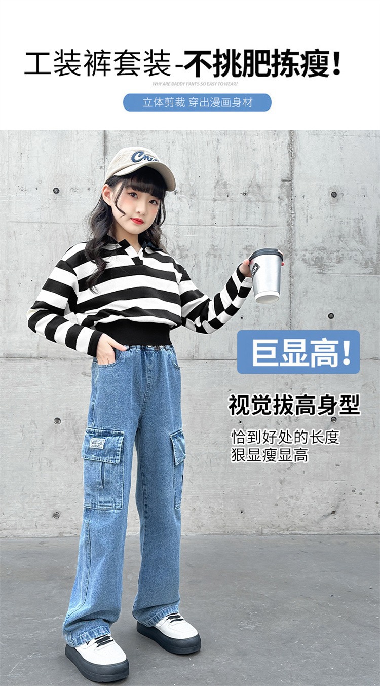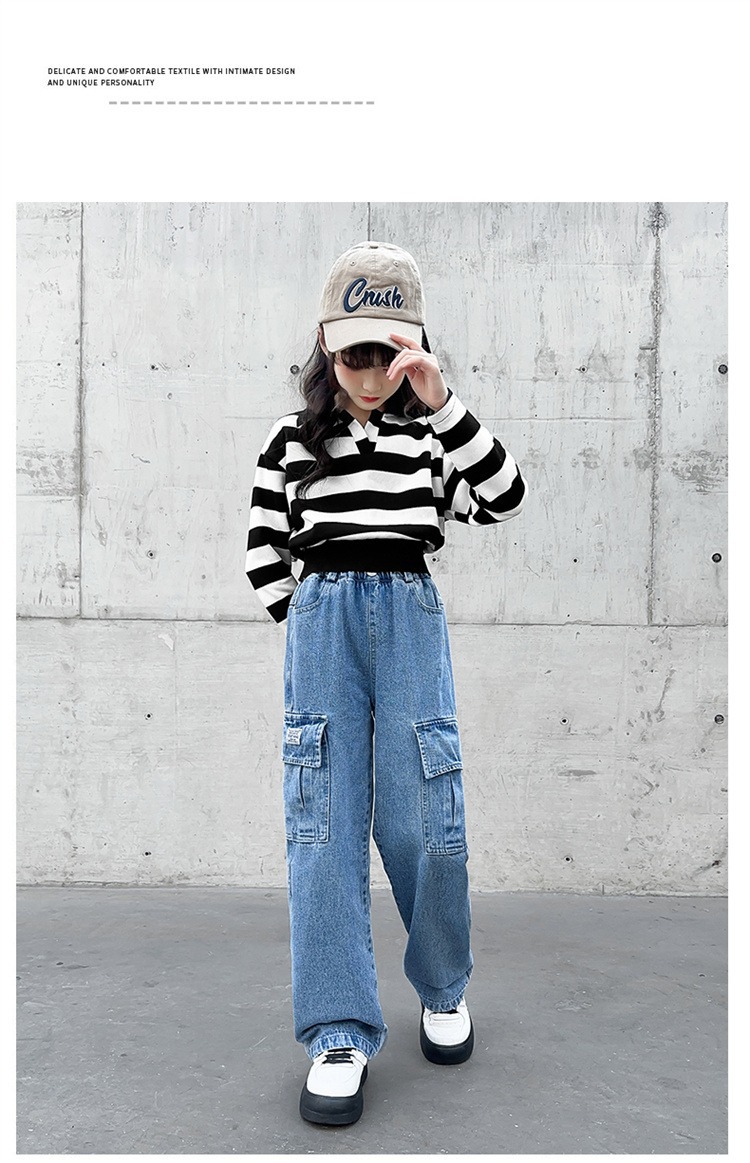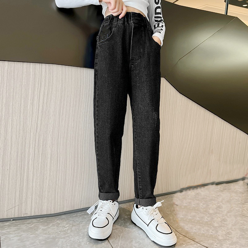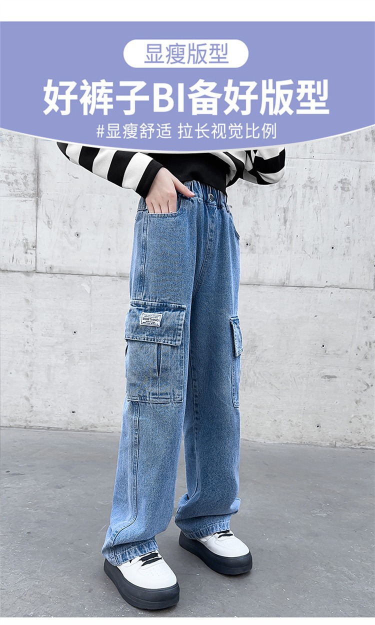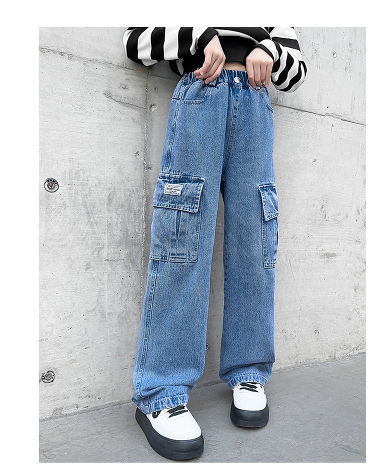 Маленькая девочка джинсовая одежда широкие брюки на источнике фабрики оптом среднего и старшего ребенка детей свободные брюки для девочек прямые брюки