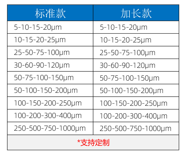 [Стандартная модель] SZQ-5/10/15/20 мкм; [Стандартная модель] SZQ-10/15/20/25 мкм; [Стандартная модель] SZQ-25/50/75/100 мкм; [Стандартная модель] SZQ-30/60/90/120 мкм; [Стандартная модель] SZQ-50/75/100/150 мкм; [Стандартная модель] SZQ-50/100/150/200 мкм; [Стандартная модель] SZQ-100/150/200/250 мкм; [Стандартная модель] SZQ-100/200/300/400 мкм; [Стандартная модель] SZQ-250/500/750/1000 мкм; [Расширенная версия] SZQ-5/10/15/20 мкм; [Расширенная версия] SZQ-10/15/20/25 мкм; [Расширенная версия] SZQ-25/50/75/100 мкм; [Расширенная версия] SZQ-30/60/90/120 мкм; [Расширенная версия] SZQ-50/75/100/150 мкм; [Расширенная версия] SZQ-50/100/150/200 мкм; [Расширенная версия] SZQ-100/150/200/250 мкм; [Расширенная версия] SZQ-100/200/300/400 мкм; [Расширенная версия] SZQ-250/500/750/1000 мкм
