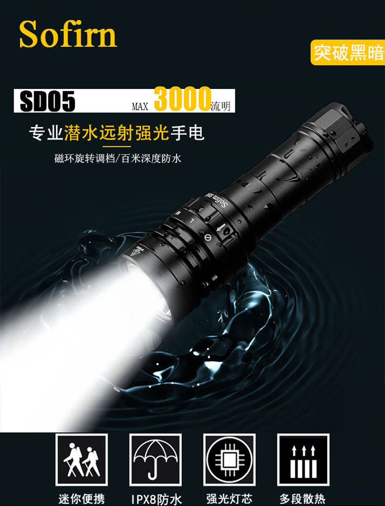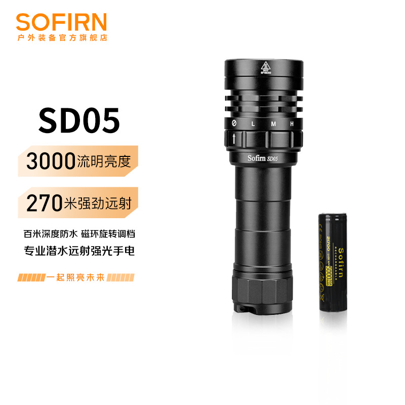 Sophien SD05 Фонарик для дайвинга Sophien, сильный свет, глубокий дайвинг, уличный аварийный амфибийный многофункциональный