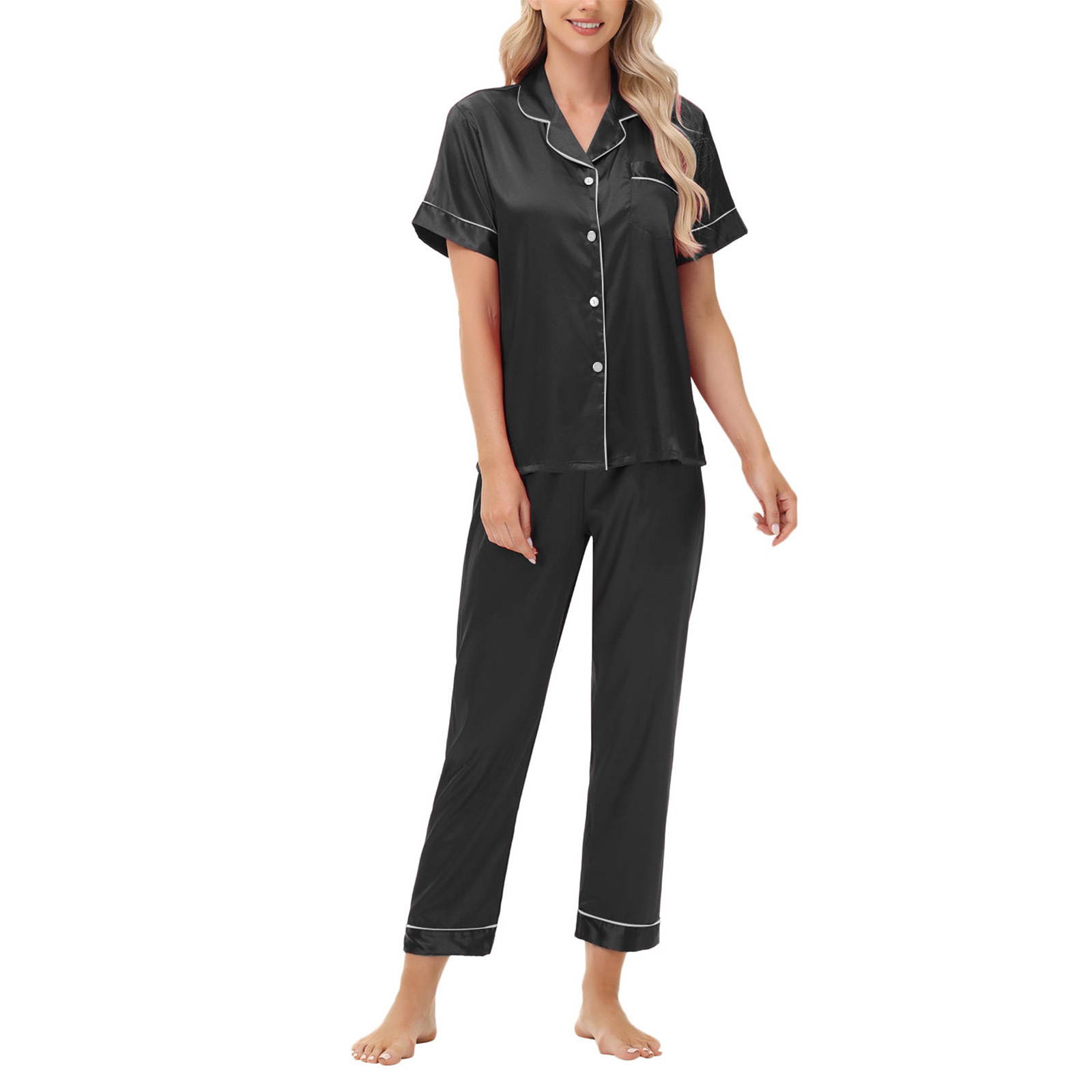 Внешняя торговля Трансграничная амазонка независимая станция ледяной шелк пижамы атласный набор брюки с короткими рукавами плюс размер женская домашняя одежда