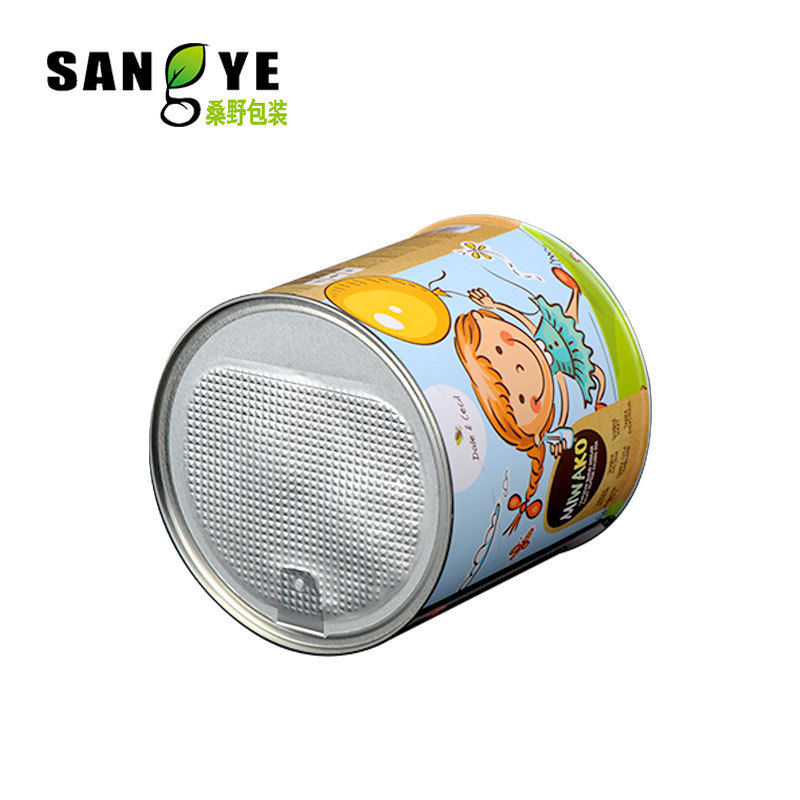 Круглая жестяная банка с печатью, металлическая упаковка для протеинового порошка и сухого молока, размер на заказ, заводская, с легко открывающейся крышкой
