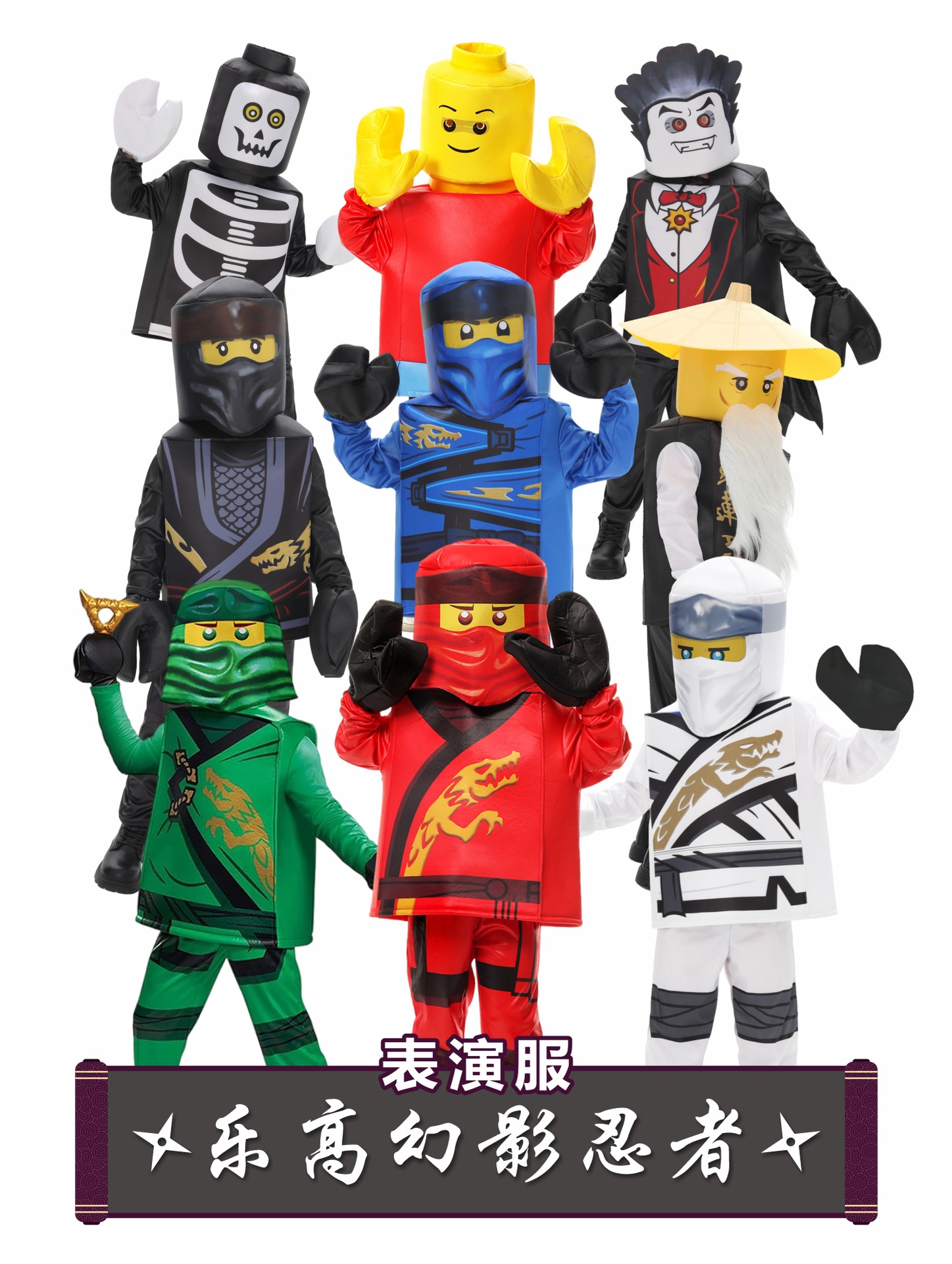 [Новый продукт] Костюм Ninjago для мальчиков и девочек, набор Lego, детские костюмы для косплея на Хэллоуин, костюмы для выступлений