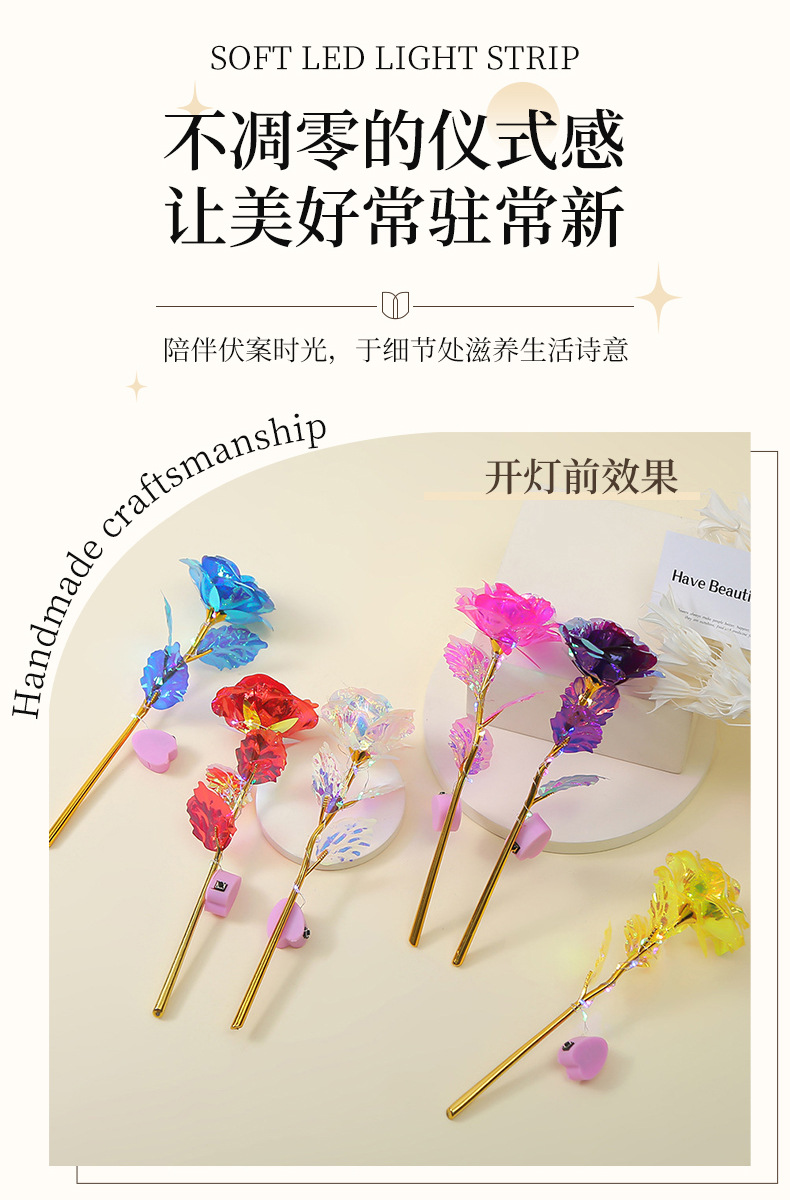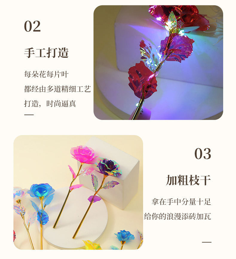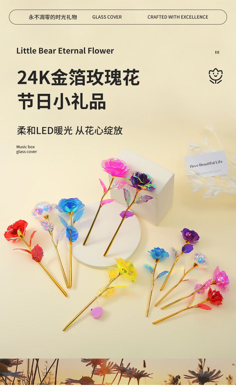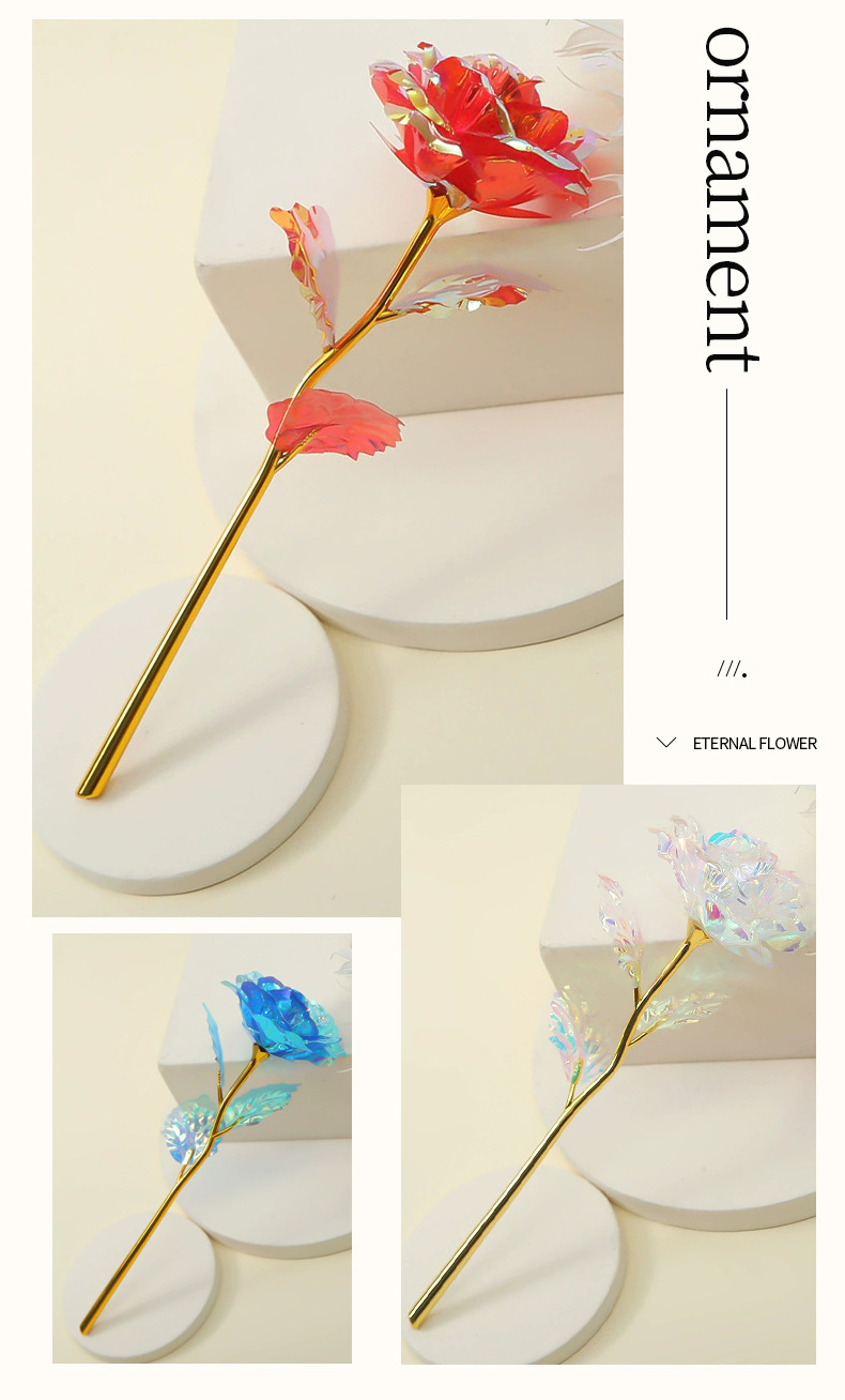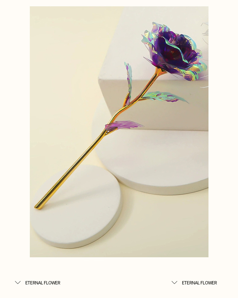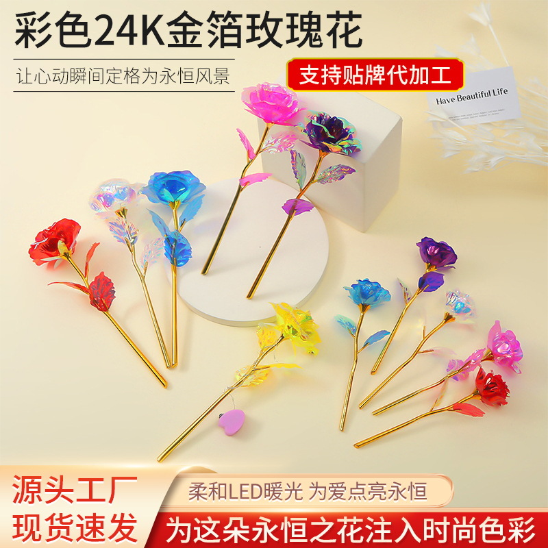 Роза из 24-каратного золота, цветное золото, ослепительный блеск, вечный цветок, романтический букет на День святого Валентина, небольшой подарок на выпускной
