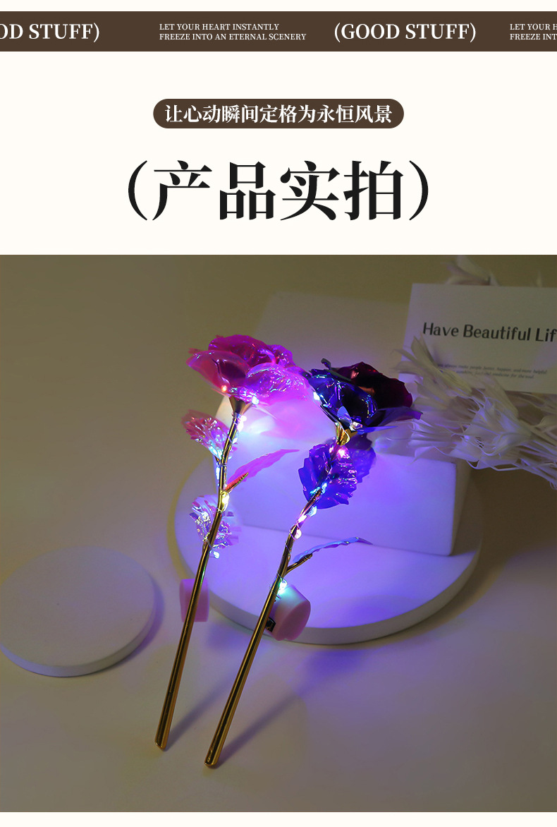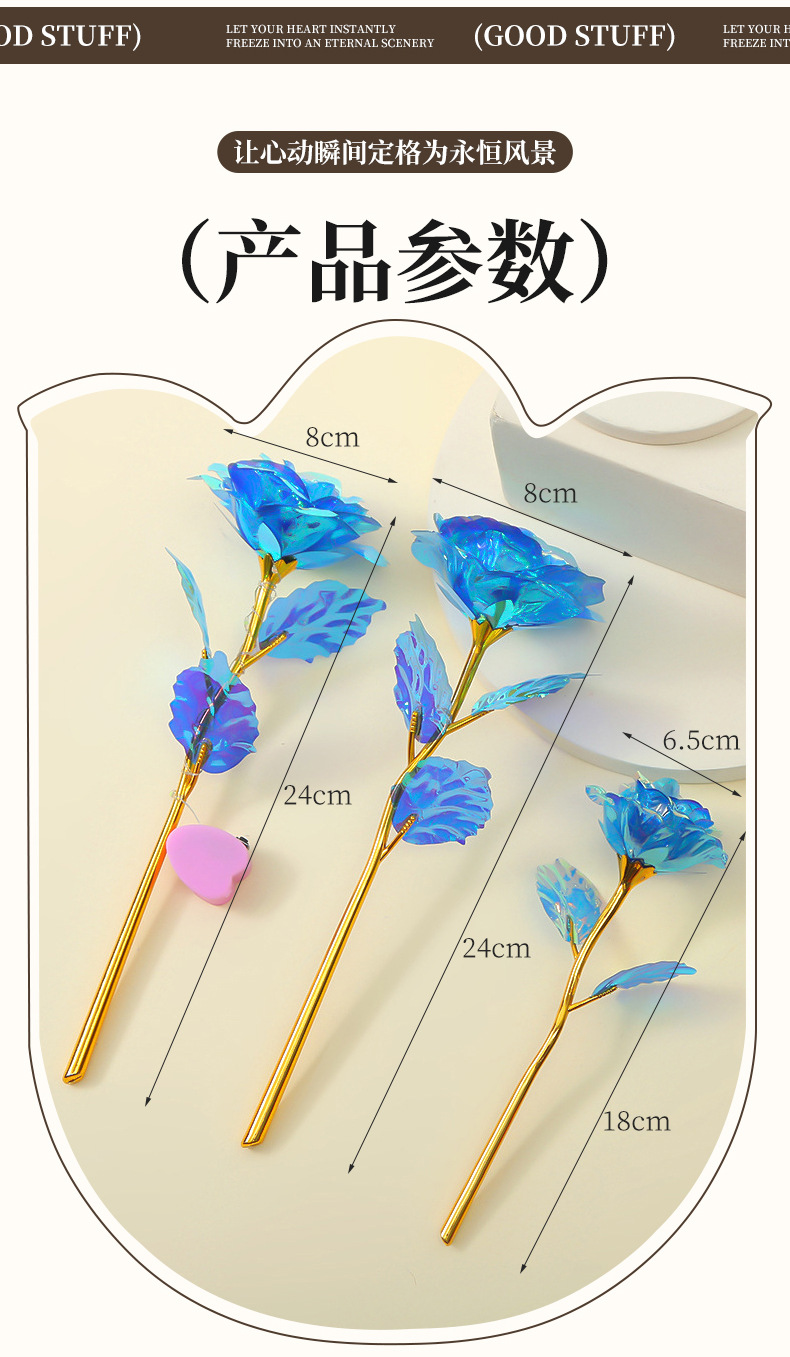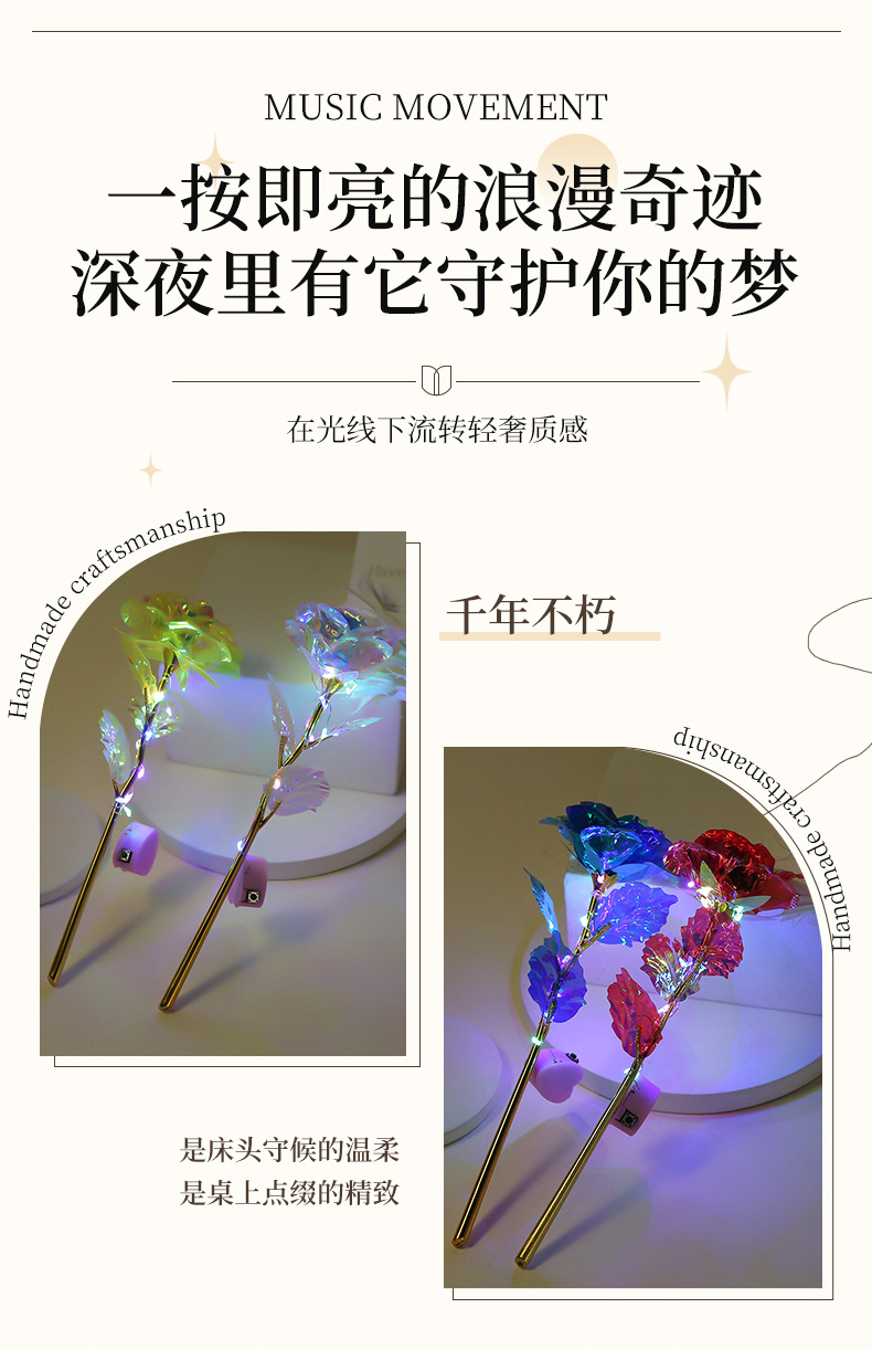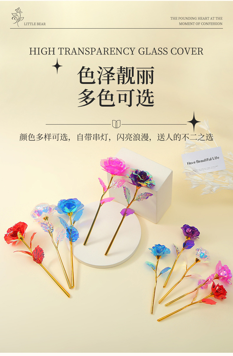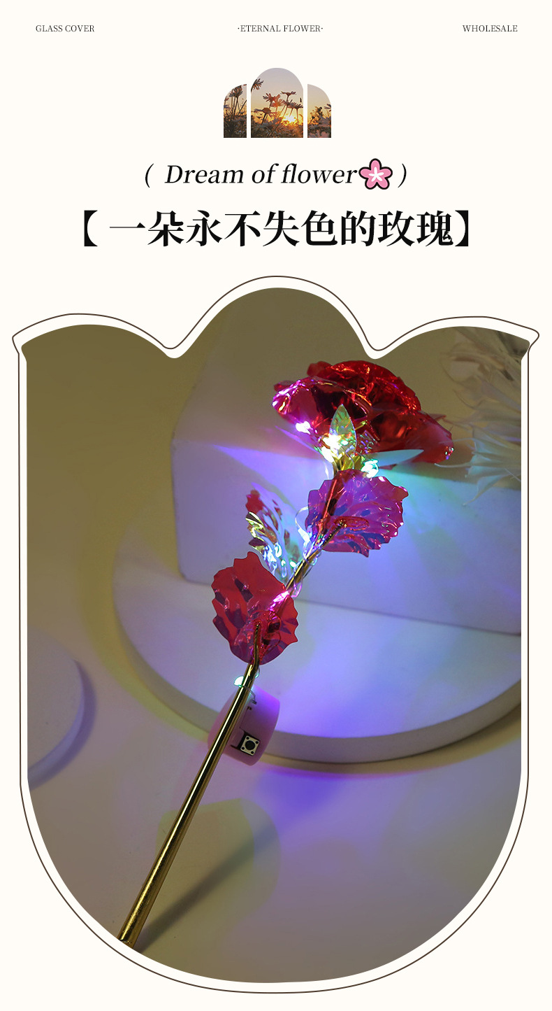 Роза из 24-каратного золота, цветное золото, ослепительный блеск, вечный цветок, романтический букет на День святого Валентина, небольшой подарок на выпускной