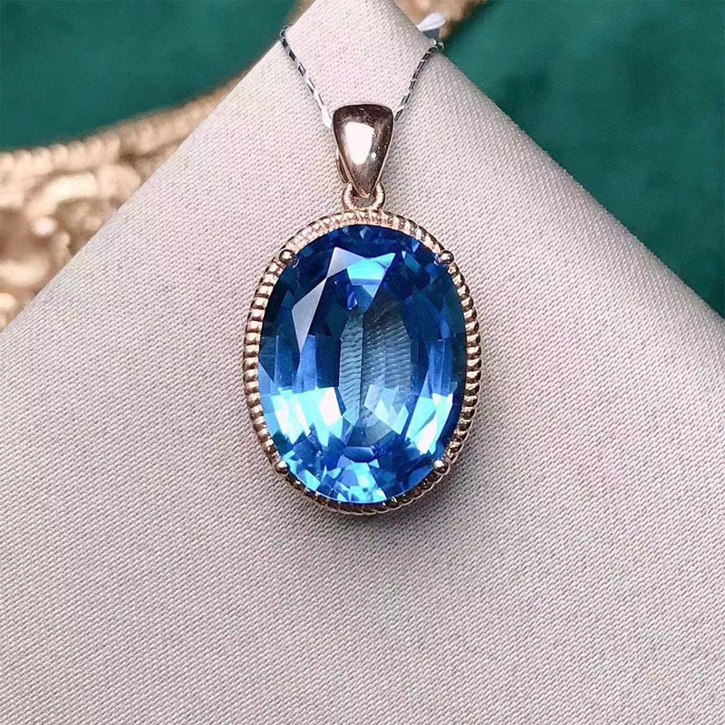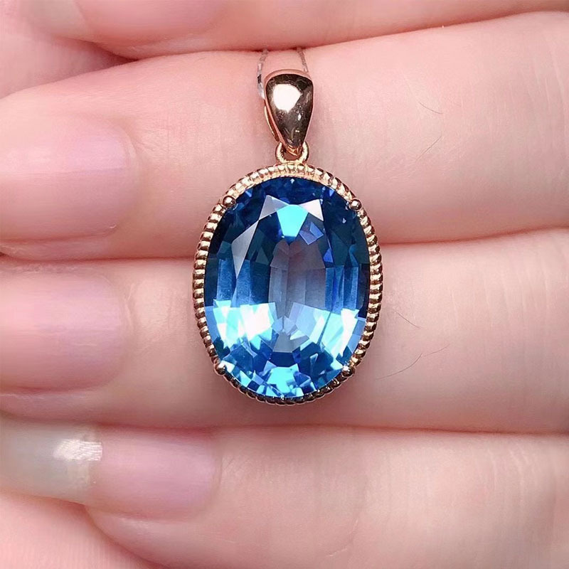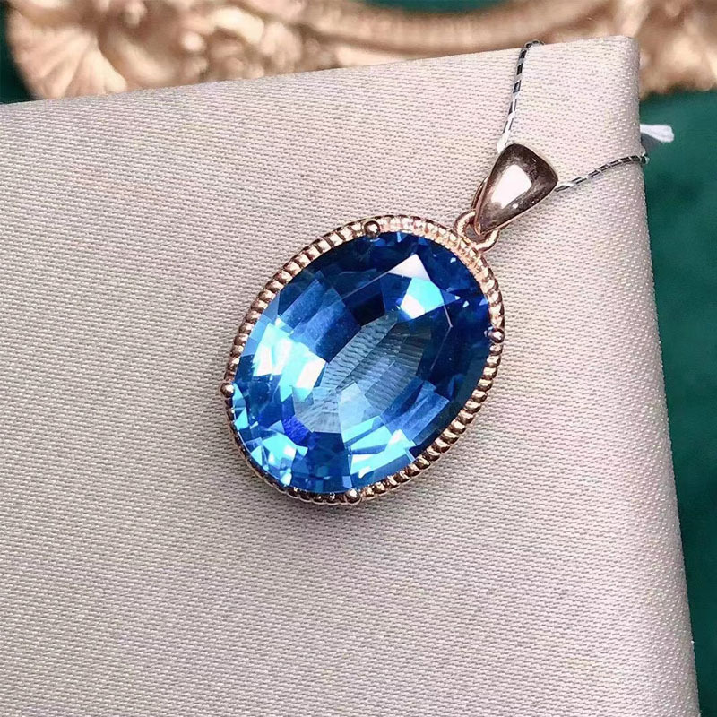 18-каратный золотой инкрустированный бриллиант натуральный темно-синий топазовый кулон 11,9 карат