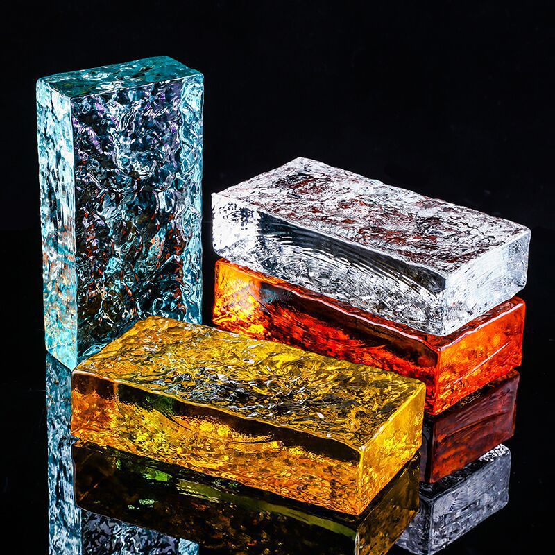 Цветные стеклянные кирпичи, хрустальные кирпичи, квадратные, однотонные, прозрачные, перегородки для ванной комнаты, стены, популярное искусство, ледяной узор, термоплавкие кирпичи