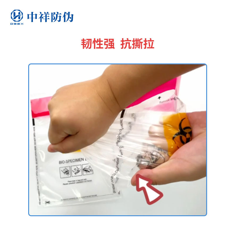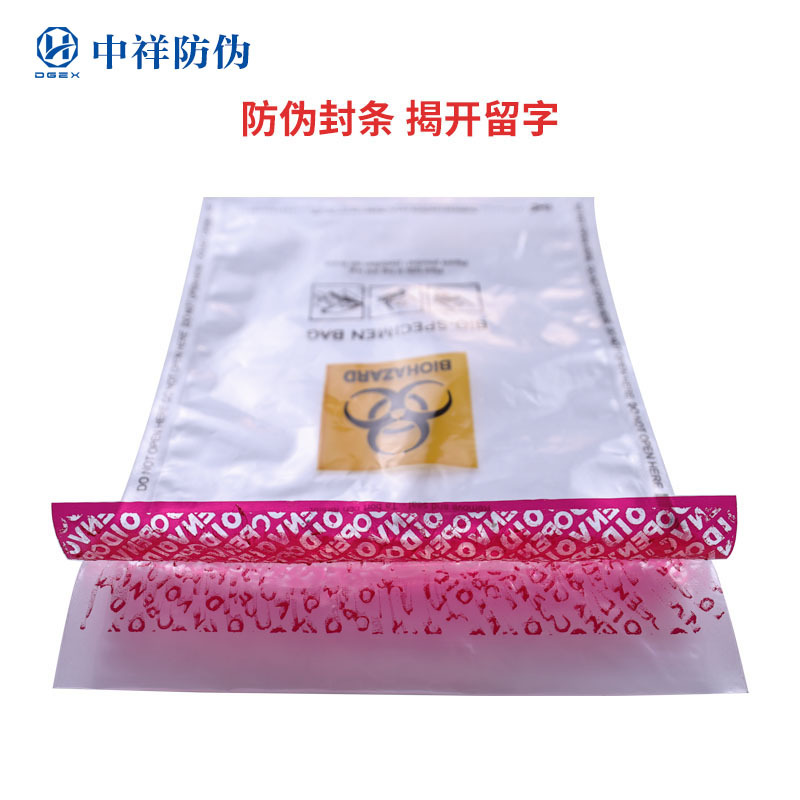 Источник производителя Медицинский биомедицинский образец образец мешок тест мешок разорван, оставьте слово VOID прозрачный анти-контрафактный пакет