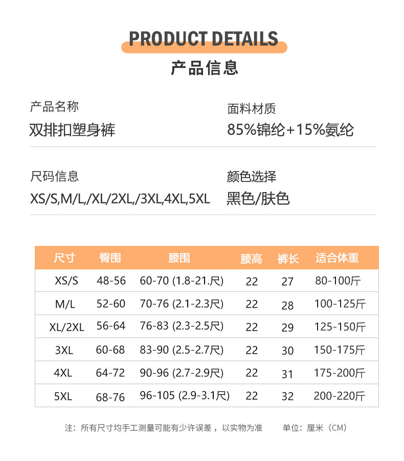 XS/S; M/L; XL/XXL; 3XL; 4XL; 5XL