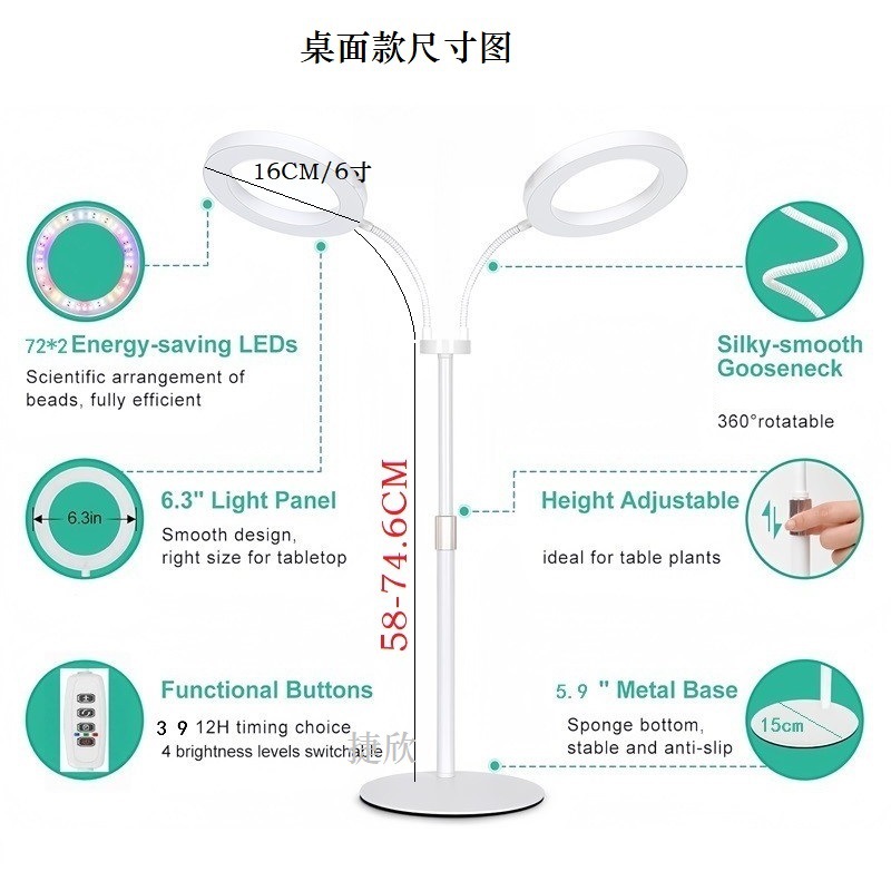 开关10级亮度设置(10%-100%),循环定时设置(3/9/12小时)