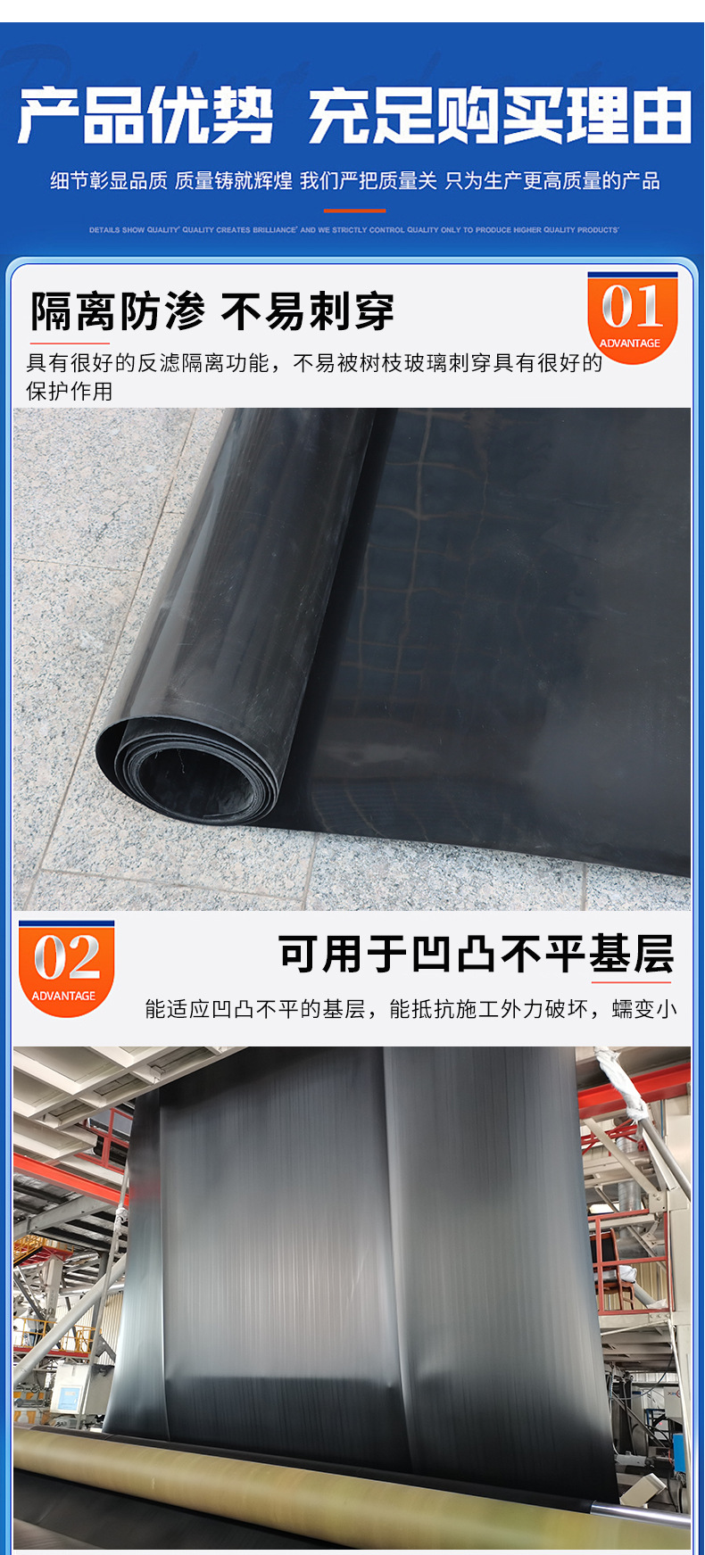 Совершенно новый материал, геомембрана с защитой от просачивания, резервуар для рыбного пруда, водонепроницаемая пленка, туннель метро, инженерная полиэтиленовая геомембрана