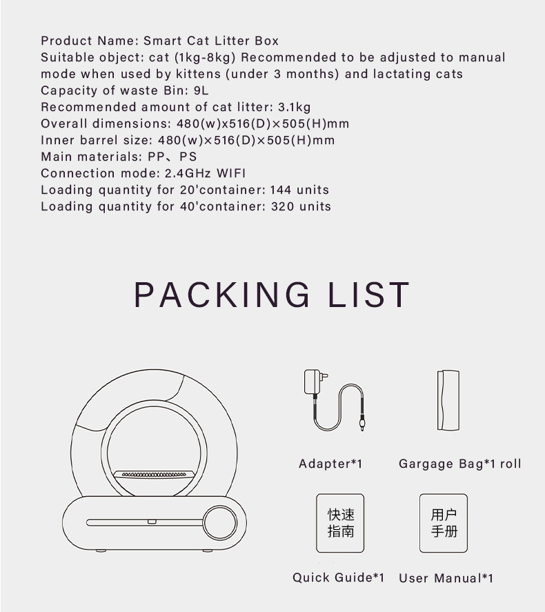 Полностью автоматический кошачий песчаный горшок 65 литров большой емкости легко чистить Автоматическая индукция Tuya APP трансграничная горячая распродажа