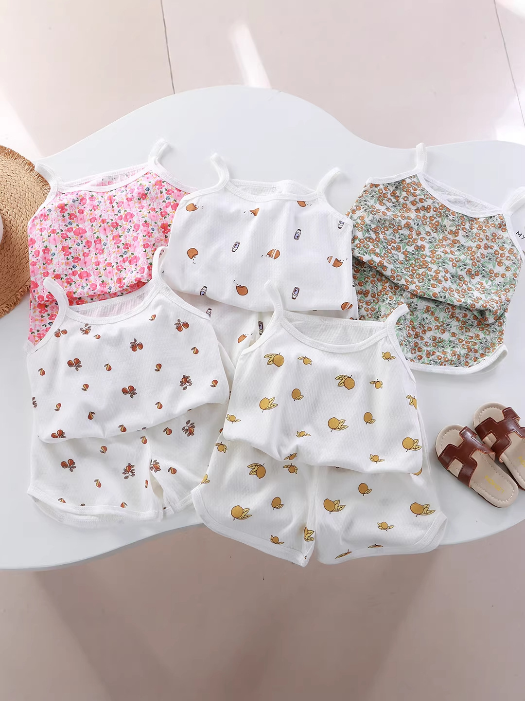 Детский жилет класса a хлопок девочка подтяжка детка летняя одежда жилет шорты для девочек дома две части