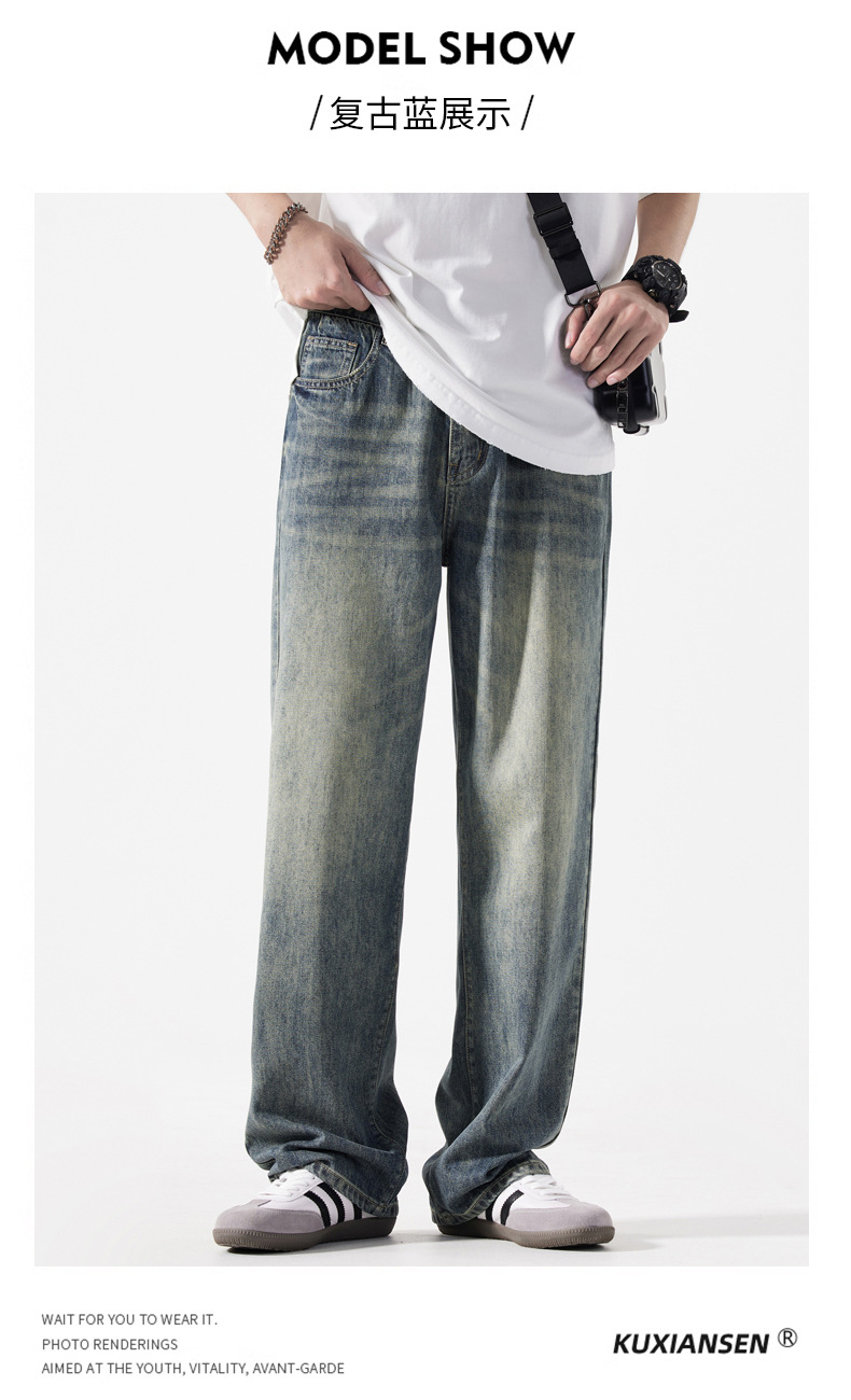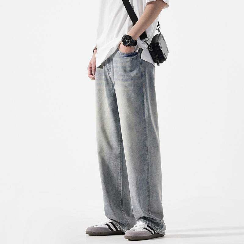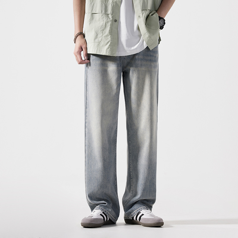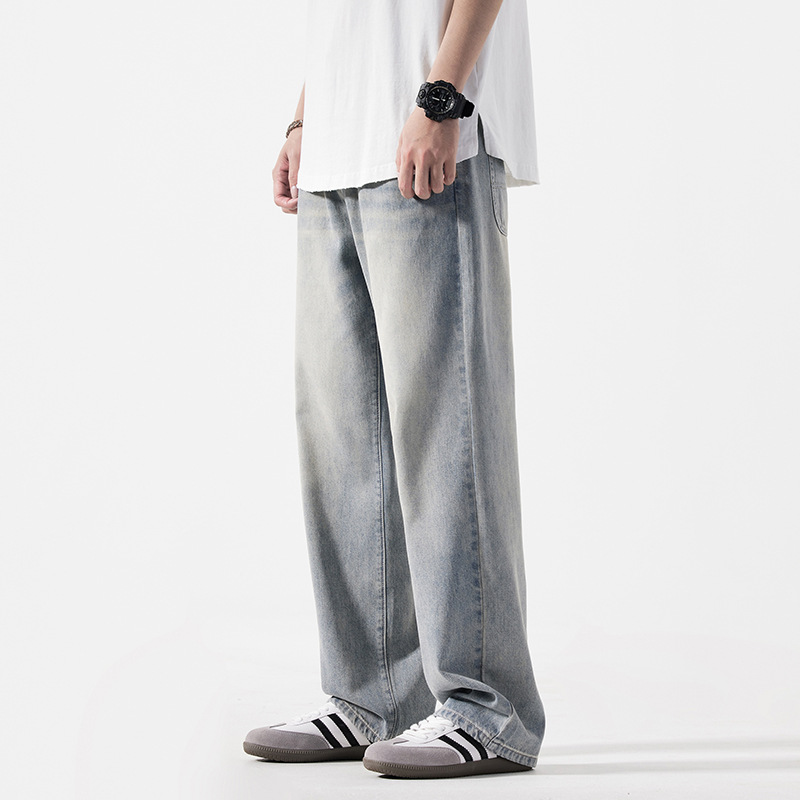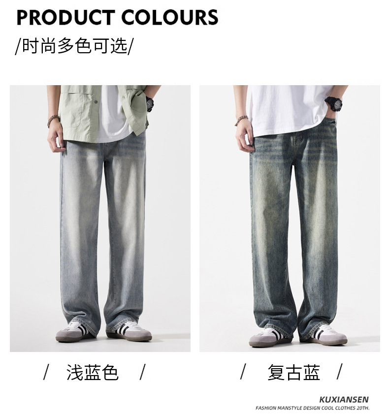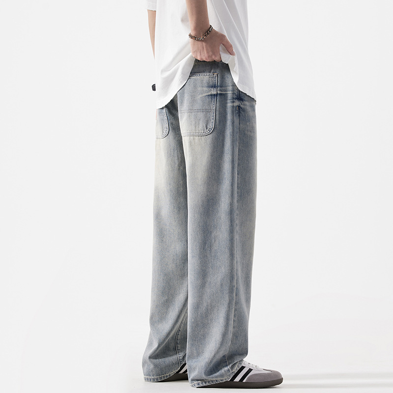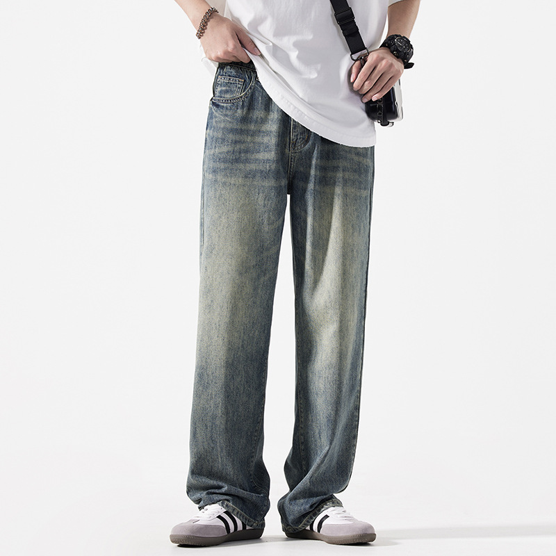 Мужская одежда большого размера летом новый ретро стиль широкие джинсы мужские свободные плюс большие размер вертикальные тонкие прямые брюки