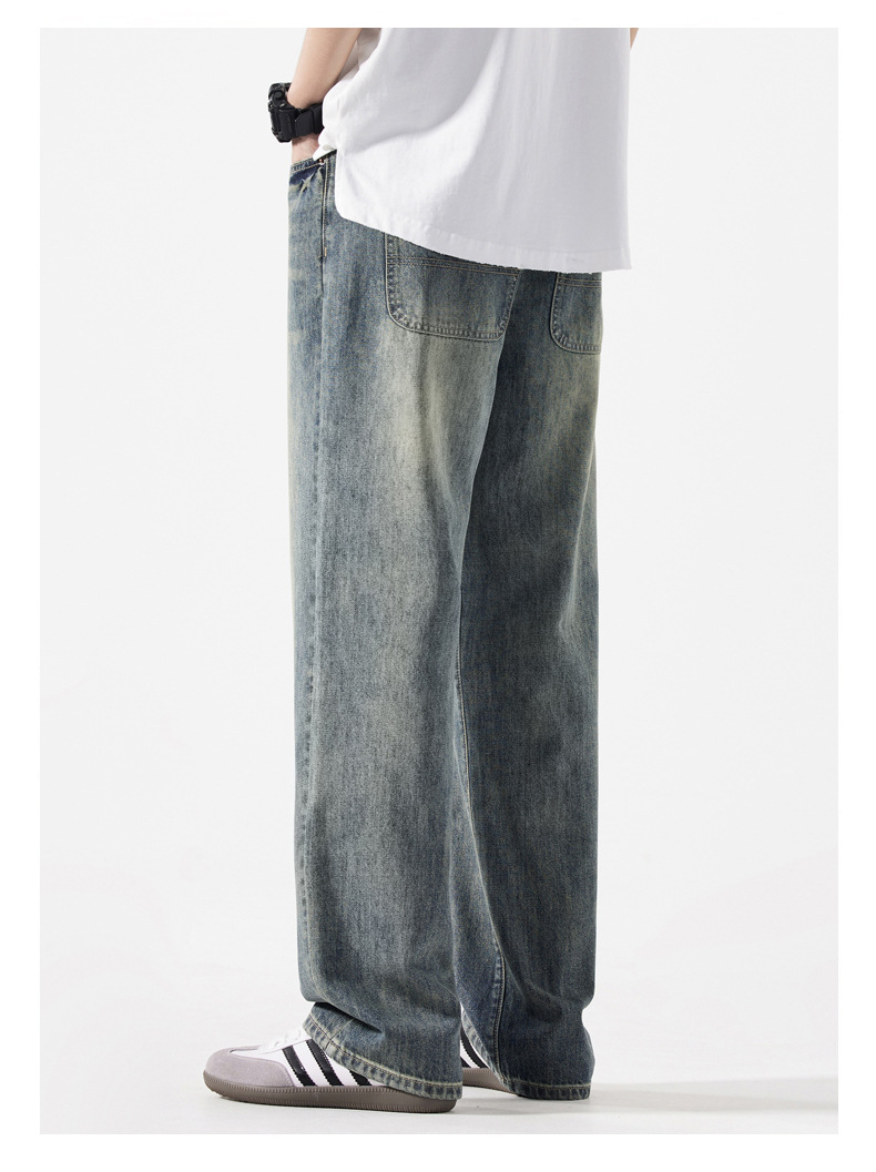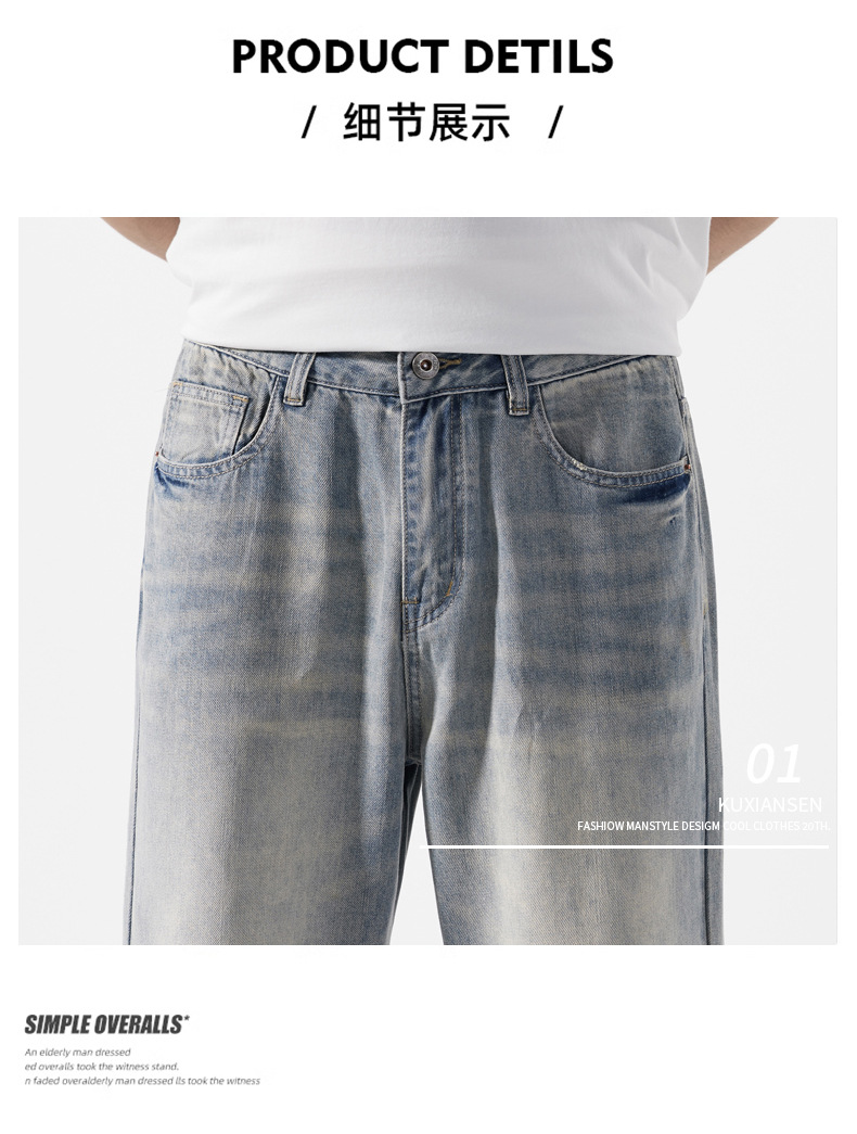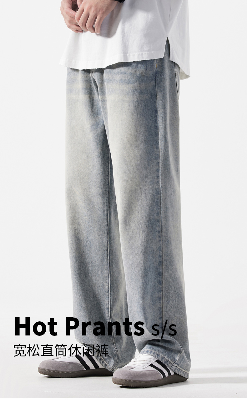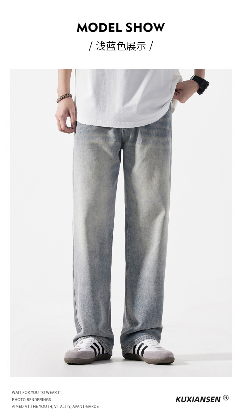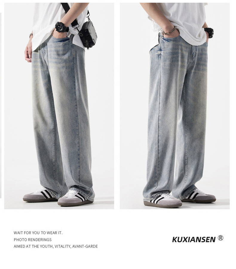 Мужская одежда большого размера летом новый ретро стиль широкие джинсы мужские свободные плюс большие размер вертикальные тонкие прямые брюки