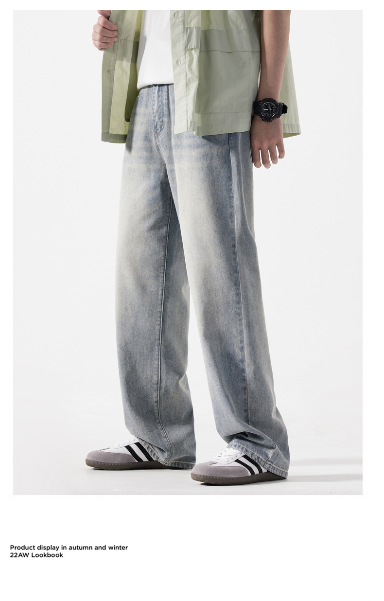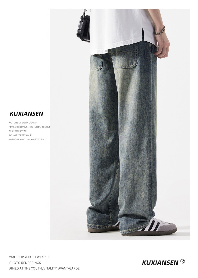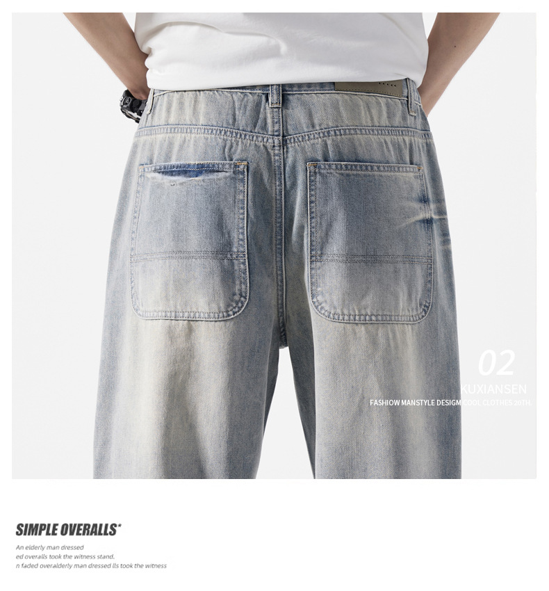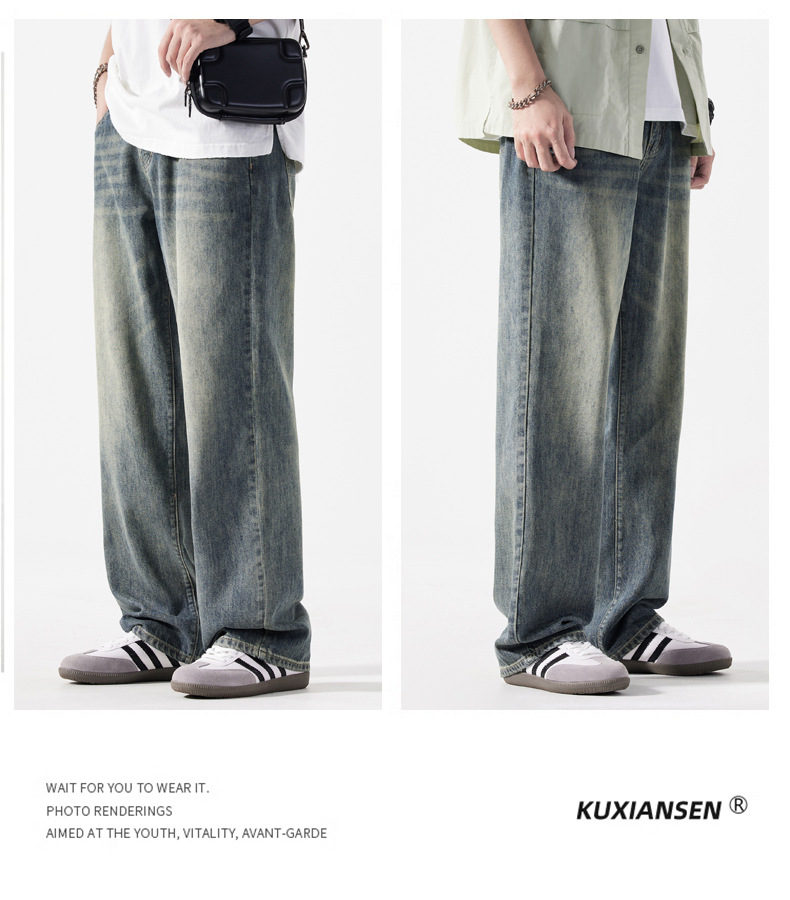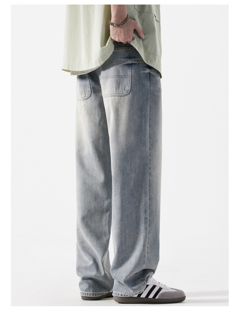Мужская одежда большого размера летом новый ретро стиль широкие джинсы мужские свободные плюс большие размер вертикальные тонкие прямые брюки