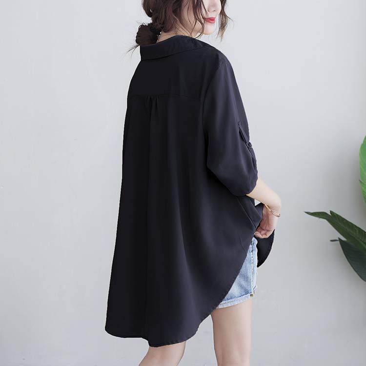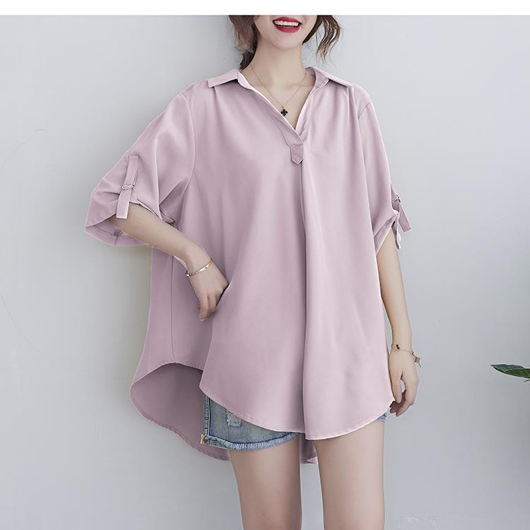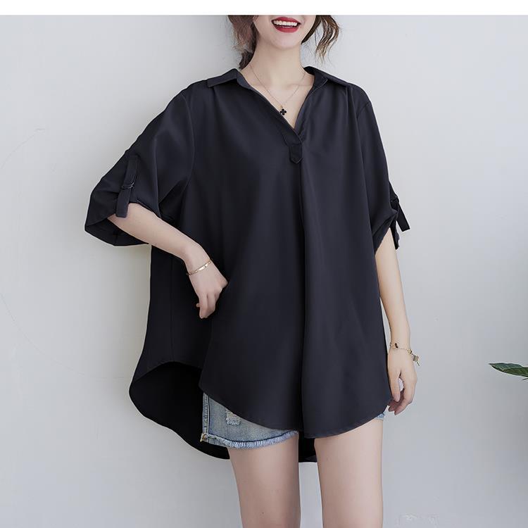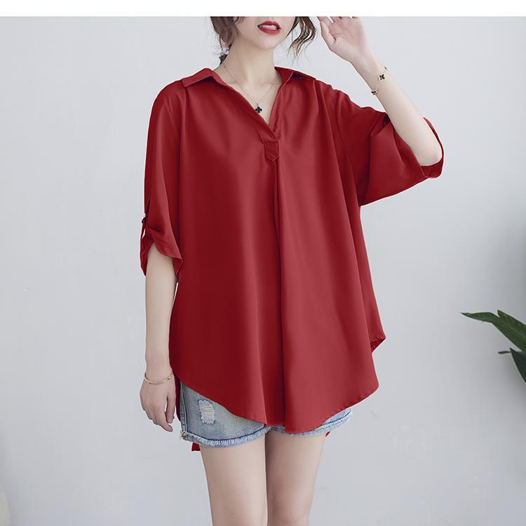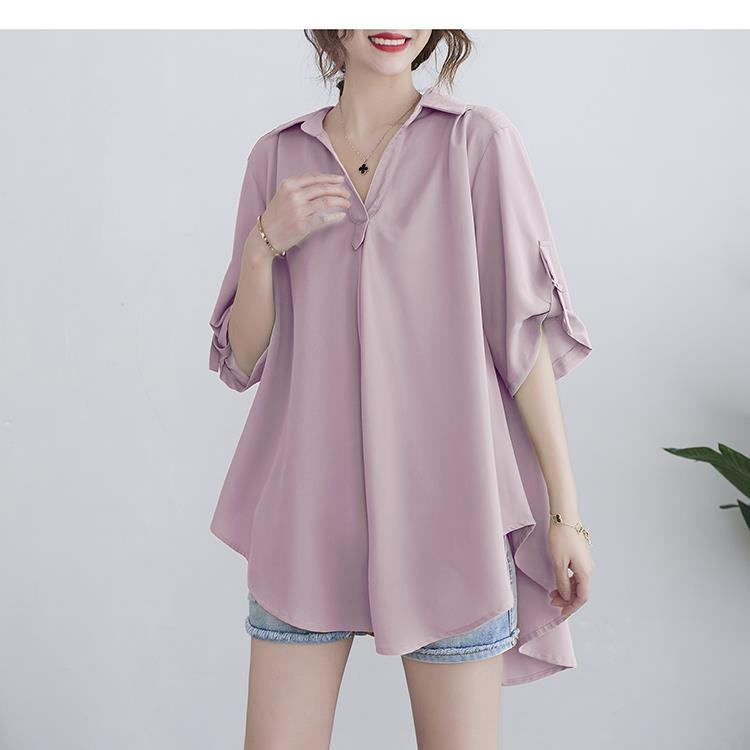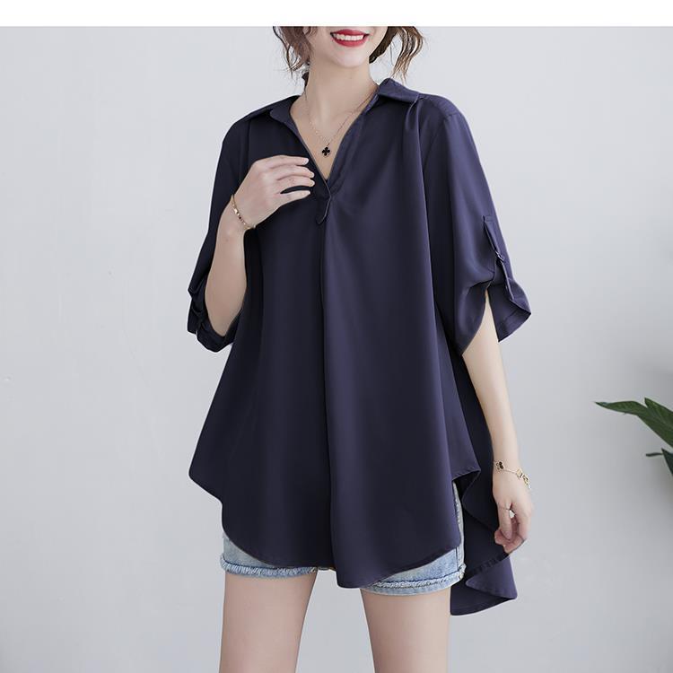 Шифоновая рубашка для женщин, летняя 100kg толстая мм, корейский стиль, большой размер, свободная, закрывающая живот, элегантная рубашка трапециевидной формы с утягивающей талией