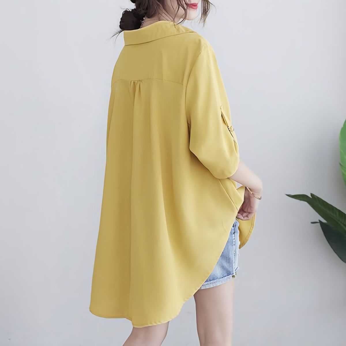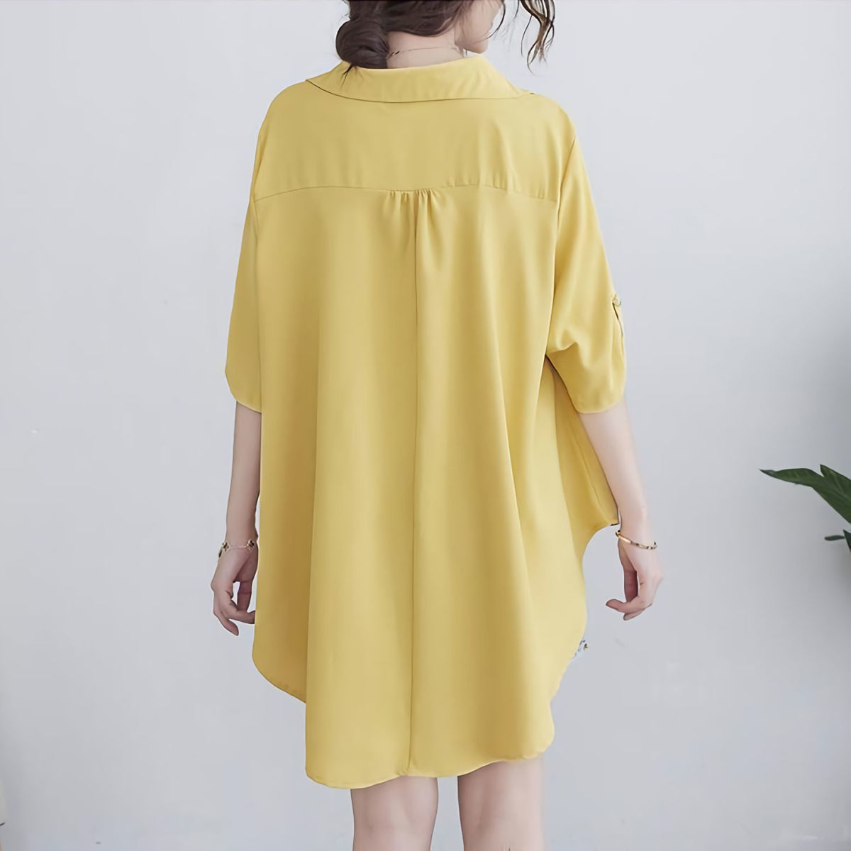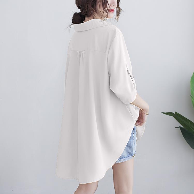 Шифоновая рубашка для женщин, летняя 100kg толстая мм, корейский стиль, большой размер, свободная, закрывающая живот, элегантная рубашка трапециевидной формы с утягивающей талией