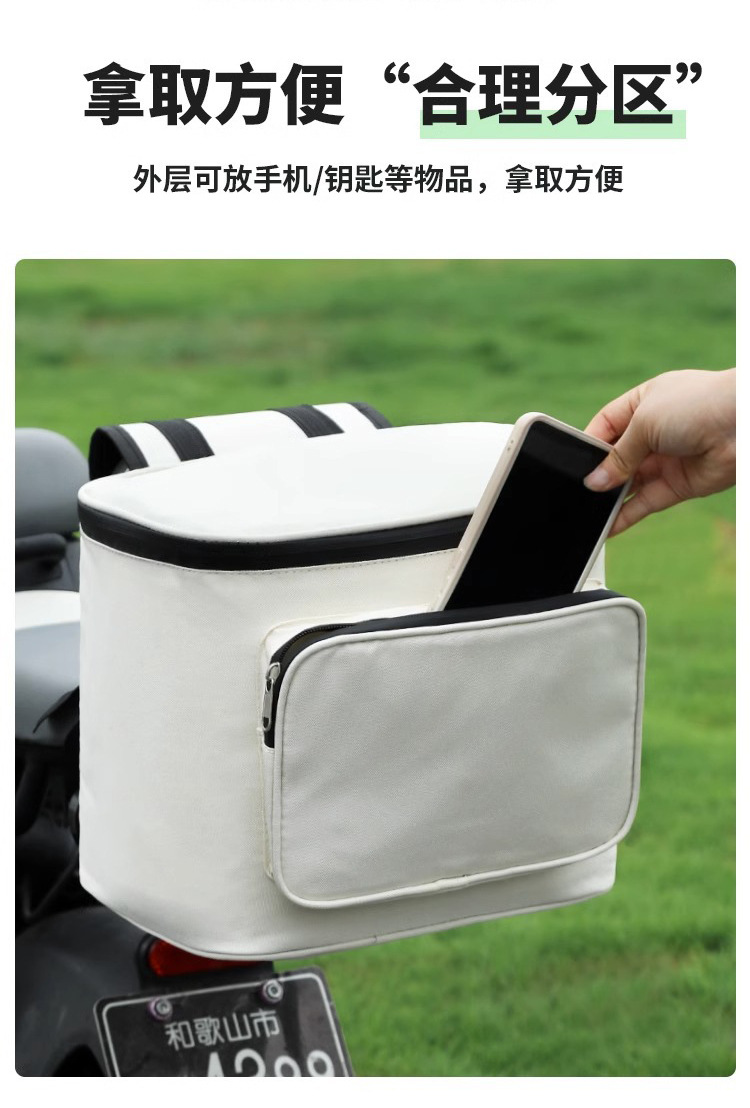 Задняя задняя подвесная сумка [черный]; Задняя задняя подвесная сумка [белый]; [Передняя сумка для автомобильного шалфона] Черный мобильный телефон с сенсорным экраном; [Передний багажник] черный