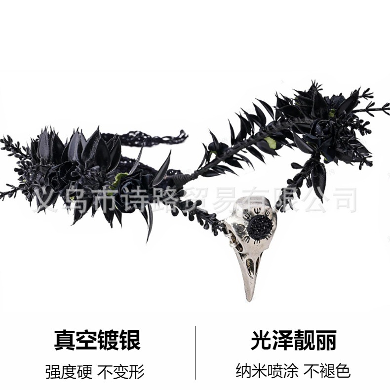 【品名】:骷髅头森系花皇冠头带万圣节哥特头饰复古精灵服装配饰眉心坠花环