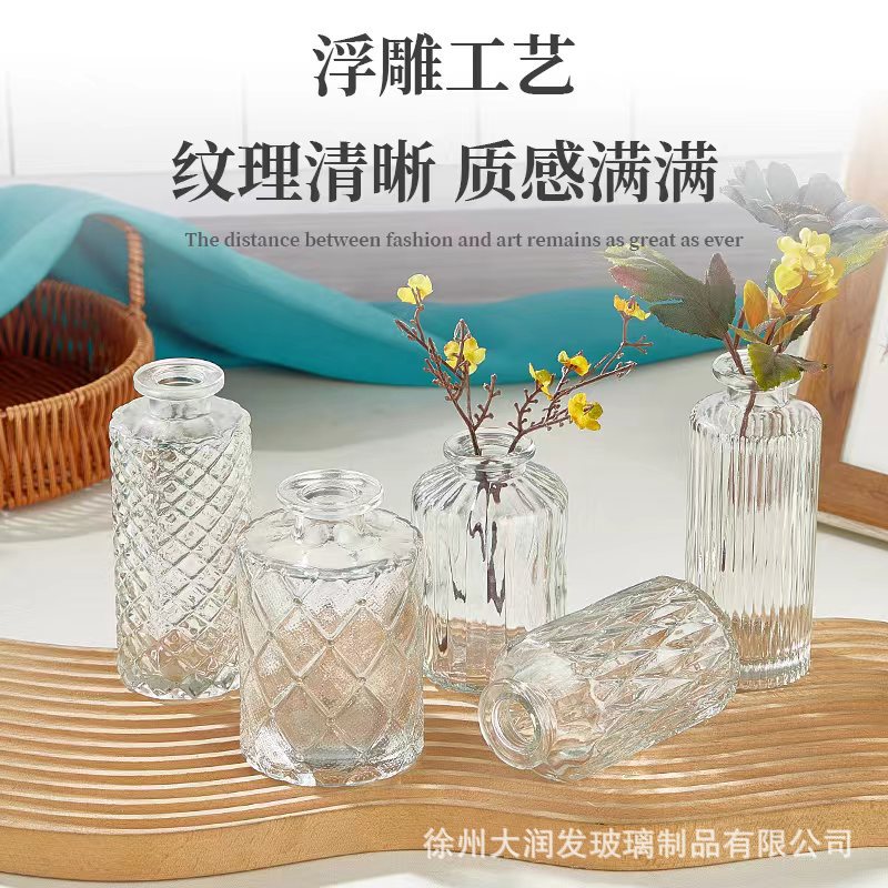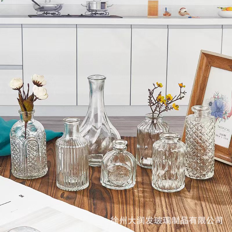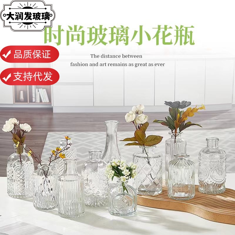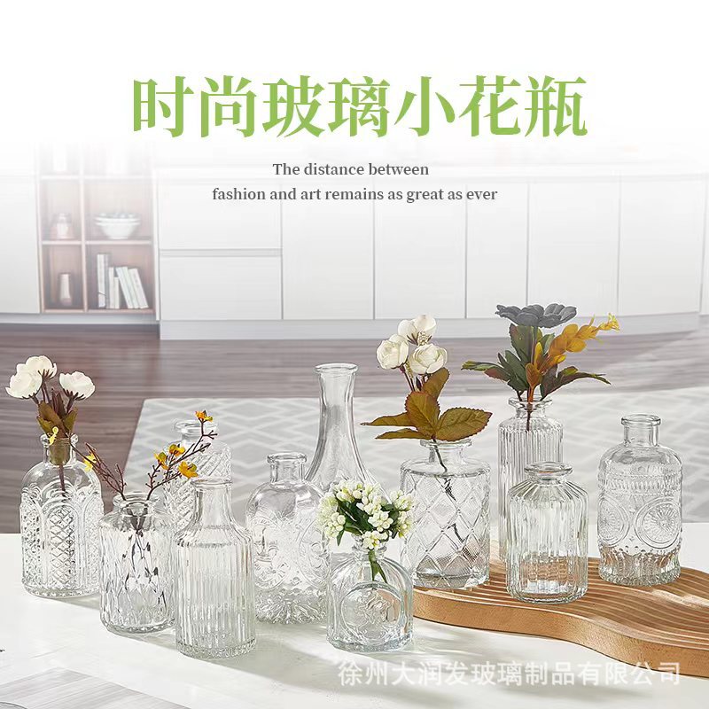 Ретро легкая роскошная тиснение прозрачная французская мини-стеклянная ваза для гостиной ins ветер домашние украшения маленькая ваза