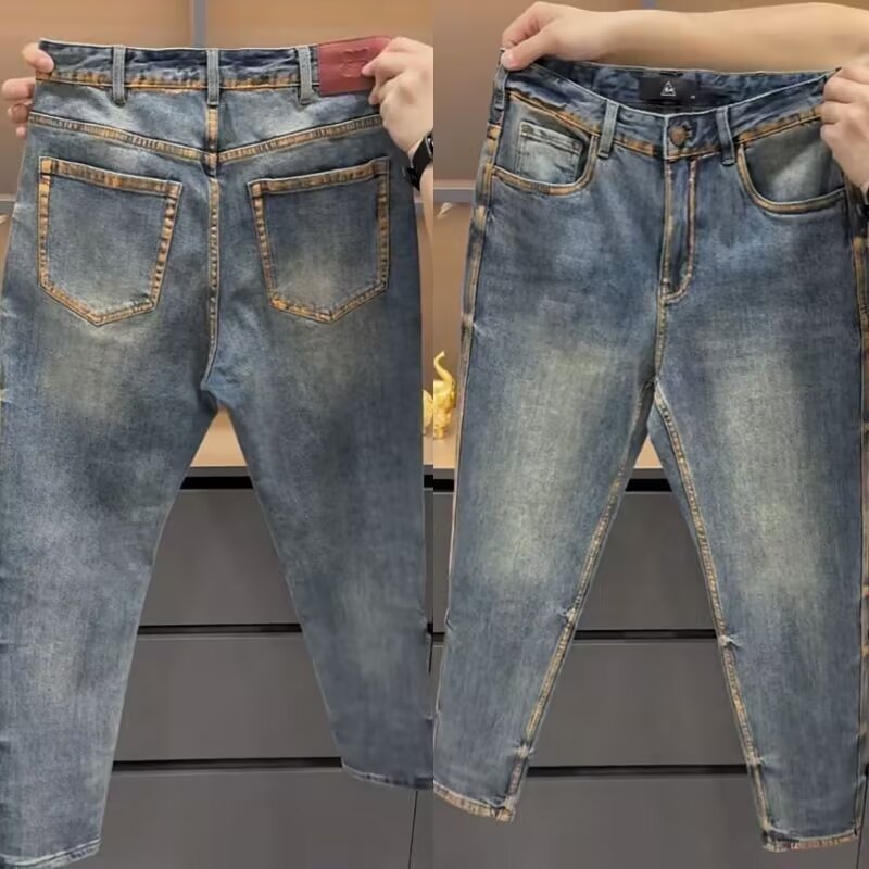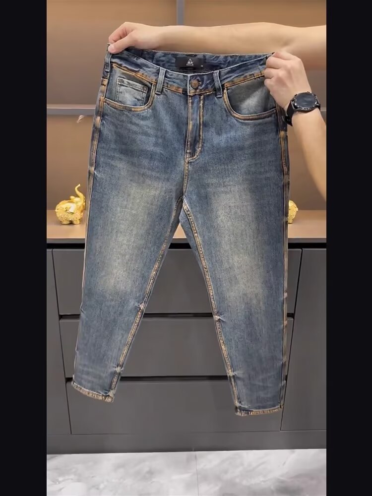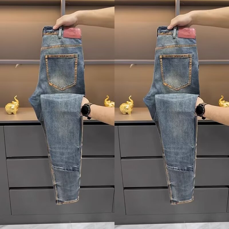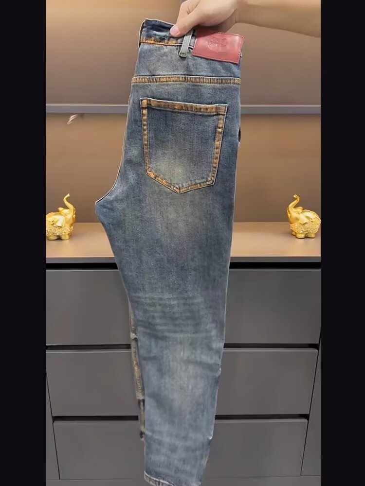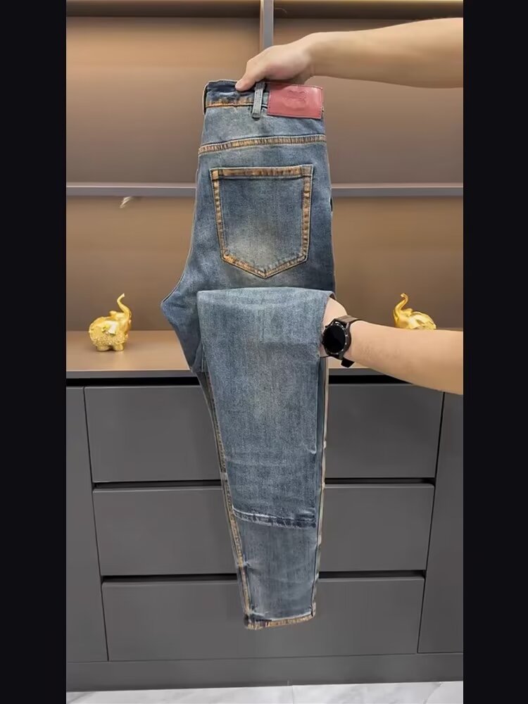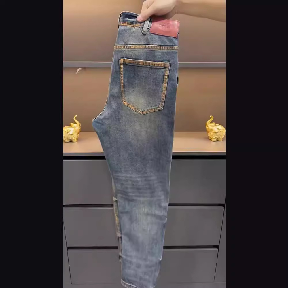 Европейские легкие роскошные ретро повседневные джинсовые брюки мужские 2024 весна и лето